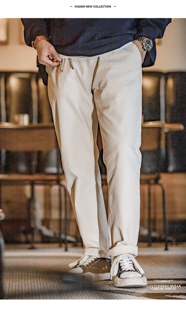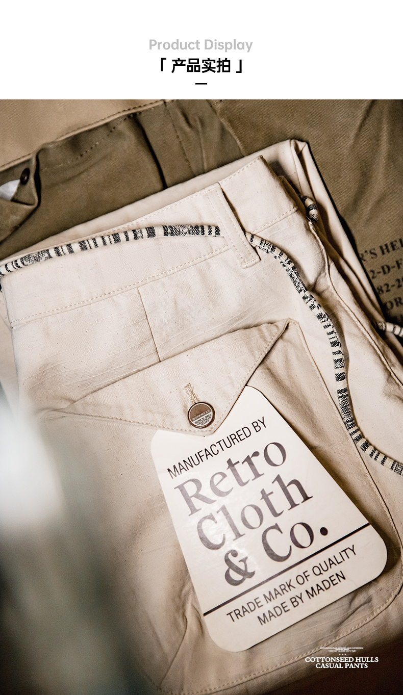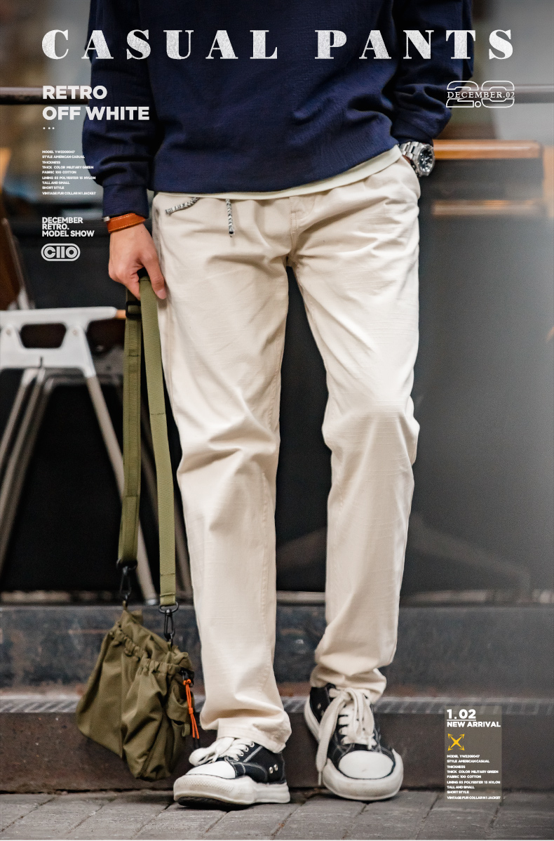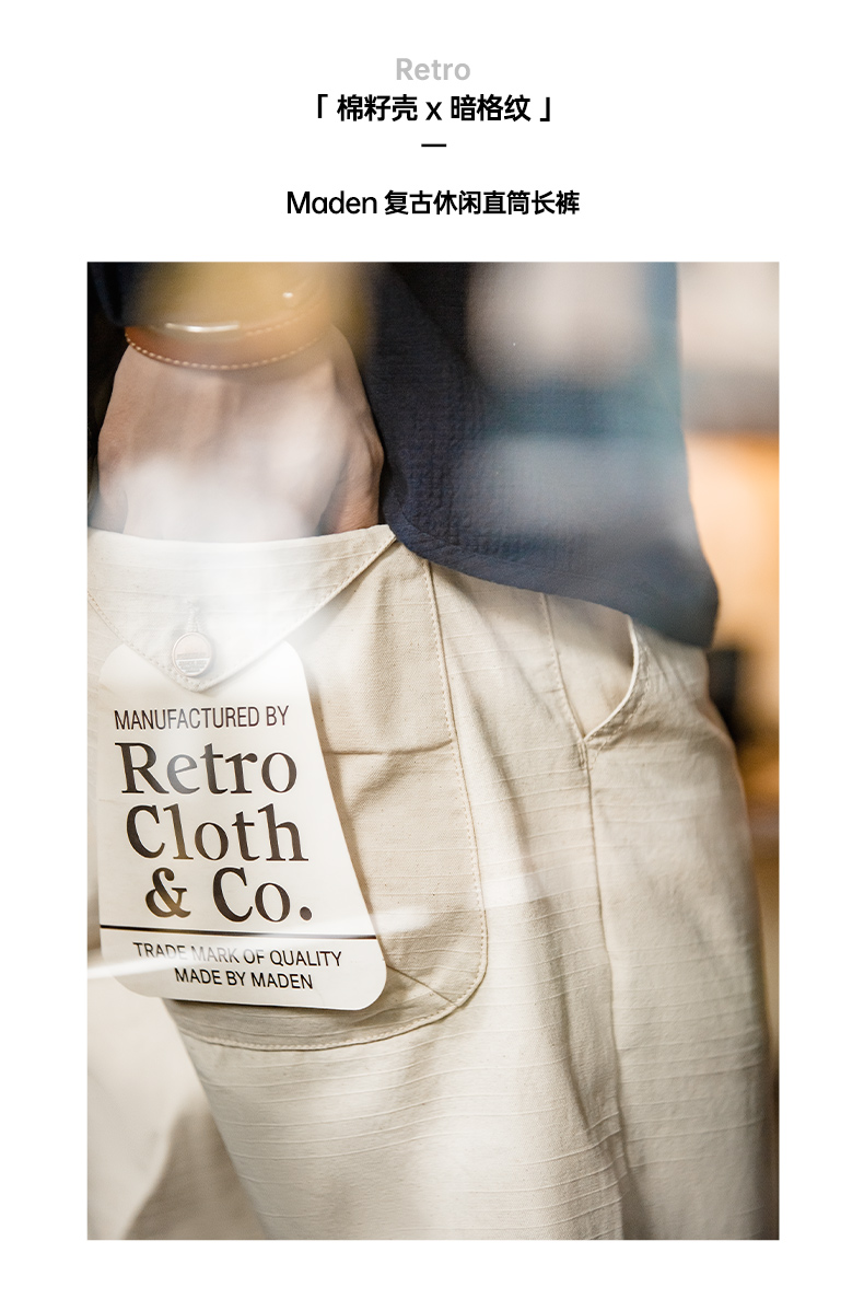 工装优选 美式复古棉籽壳暗格纹休闲裤宽松直筒米色百搭长裤子男秋