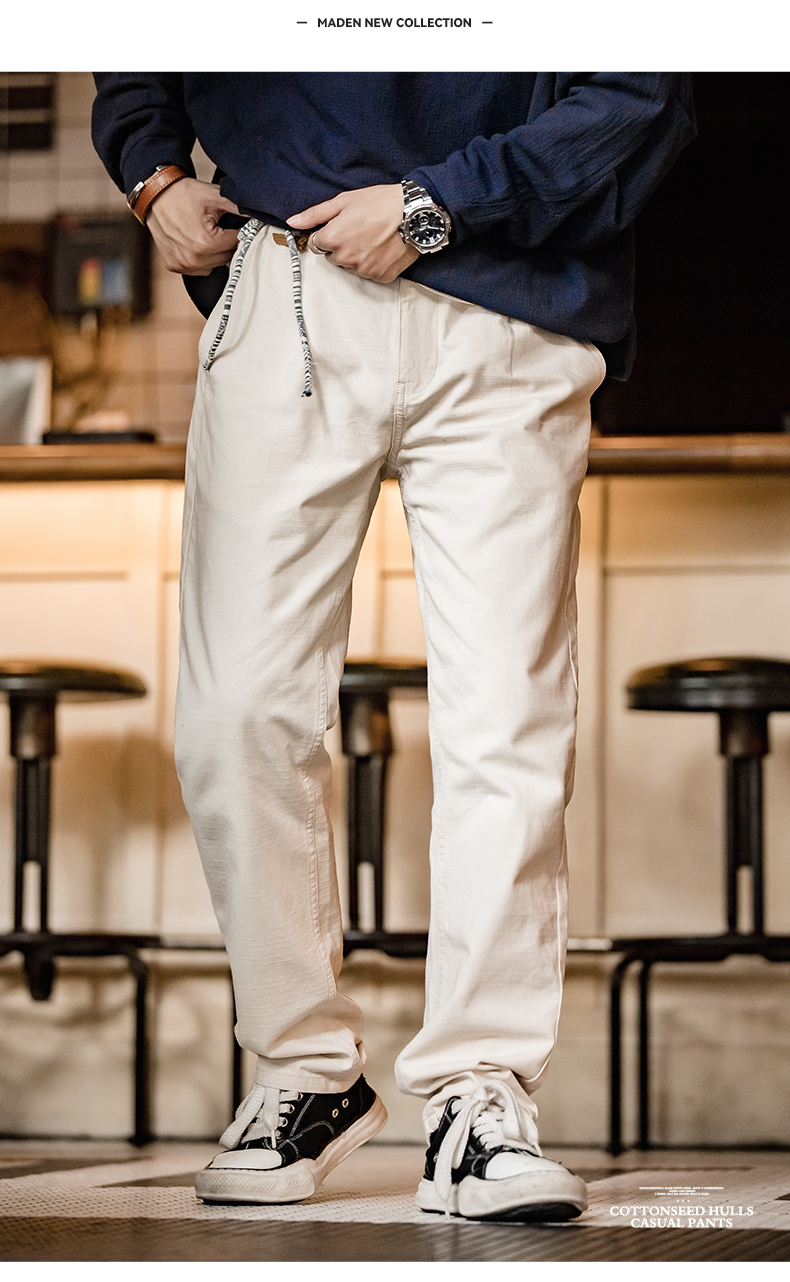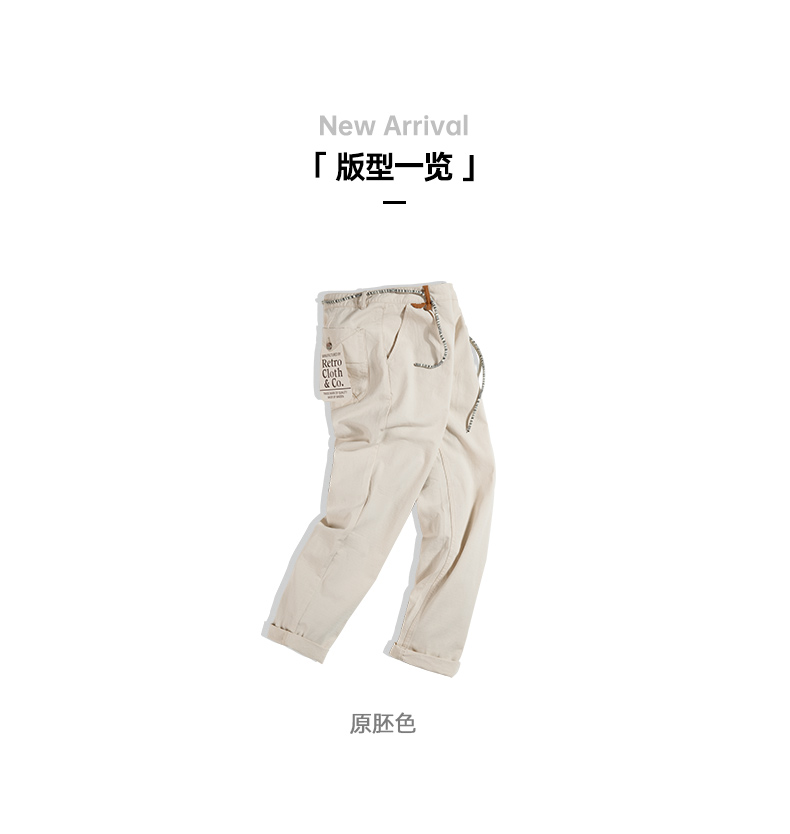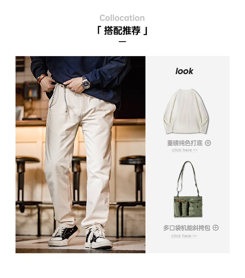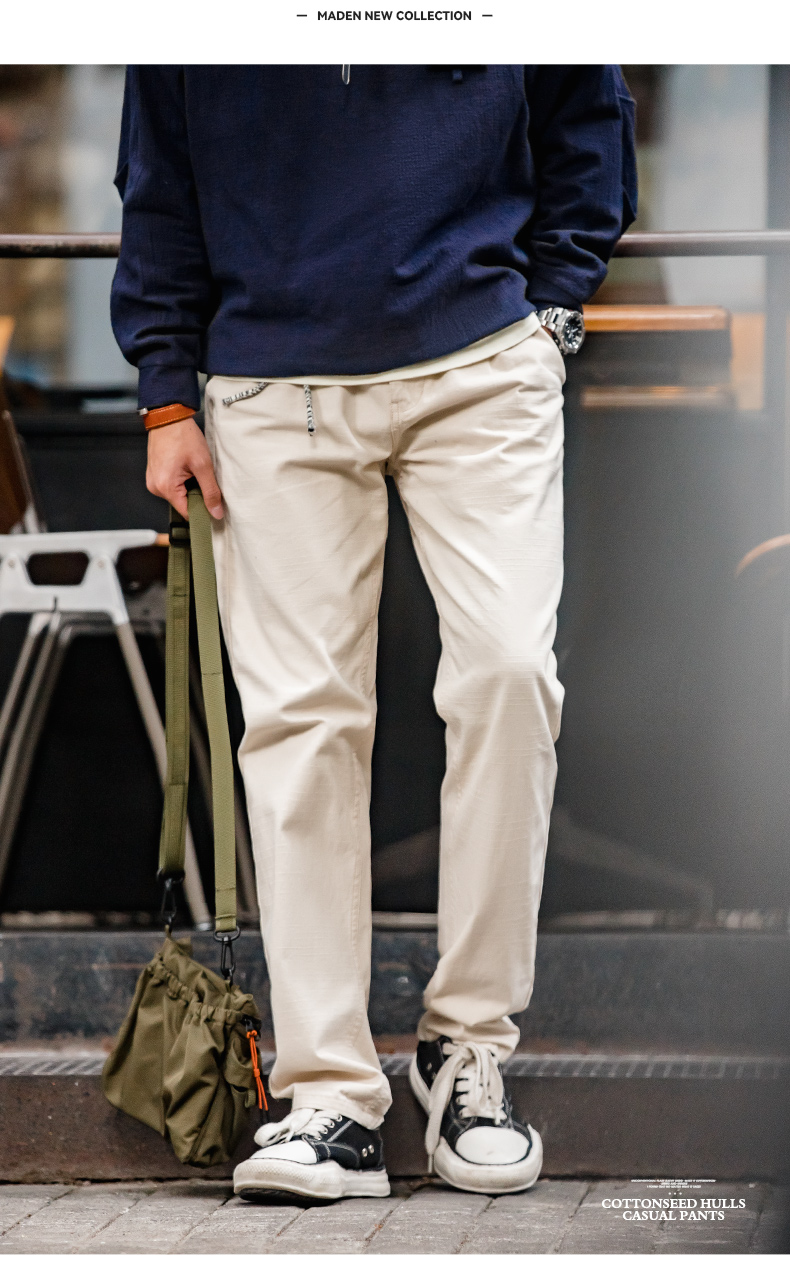工装优选 美式复古棉籽壳暗格纹休闲裤宽松直筒米色百搭长裤子男秋