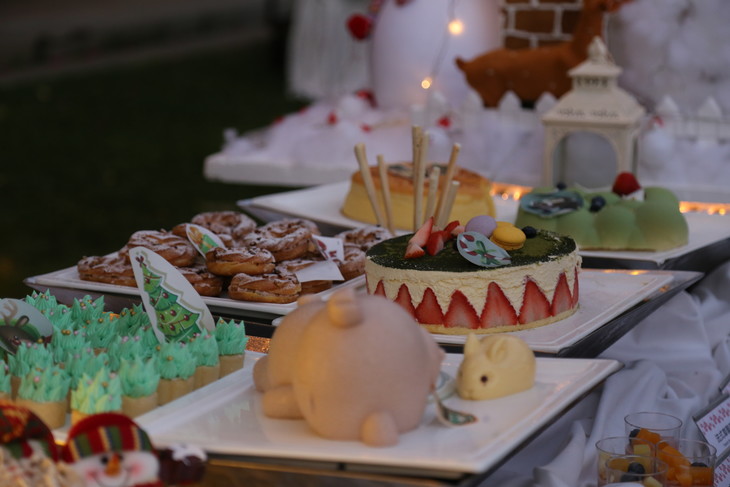 巧克力慕斯、树莓蛋糕、泡芙、树根蛋糕、草莓塔、抹茶蛋糕、圣诞苹果慕斯、圣诞老人蛋糕、圣诞帽树莓慕斯、树莓慕斯、歌剧蛋糕、巧克力房子蛋糕、树根蛋糕、圣诞面包篮、糖果、圣诞饼干