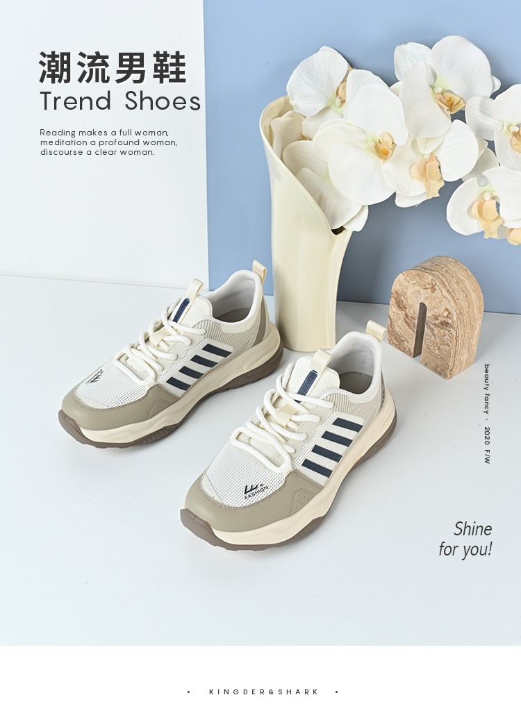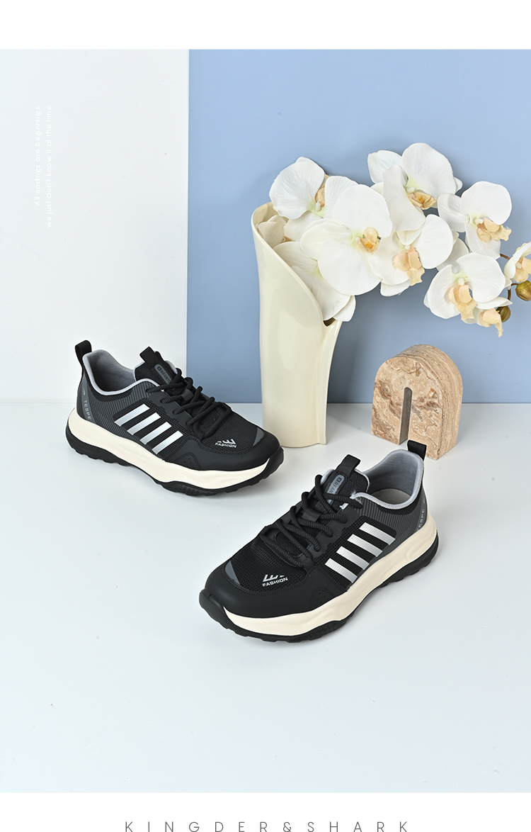 经典鲨2024年时尚拼色韩版平底男士平底休闲跑步鞋KW10-D26061