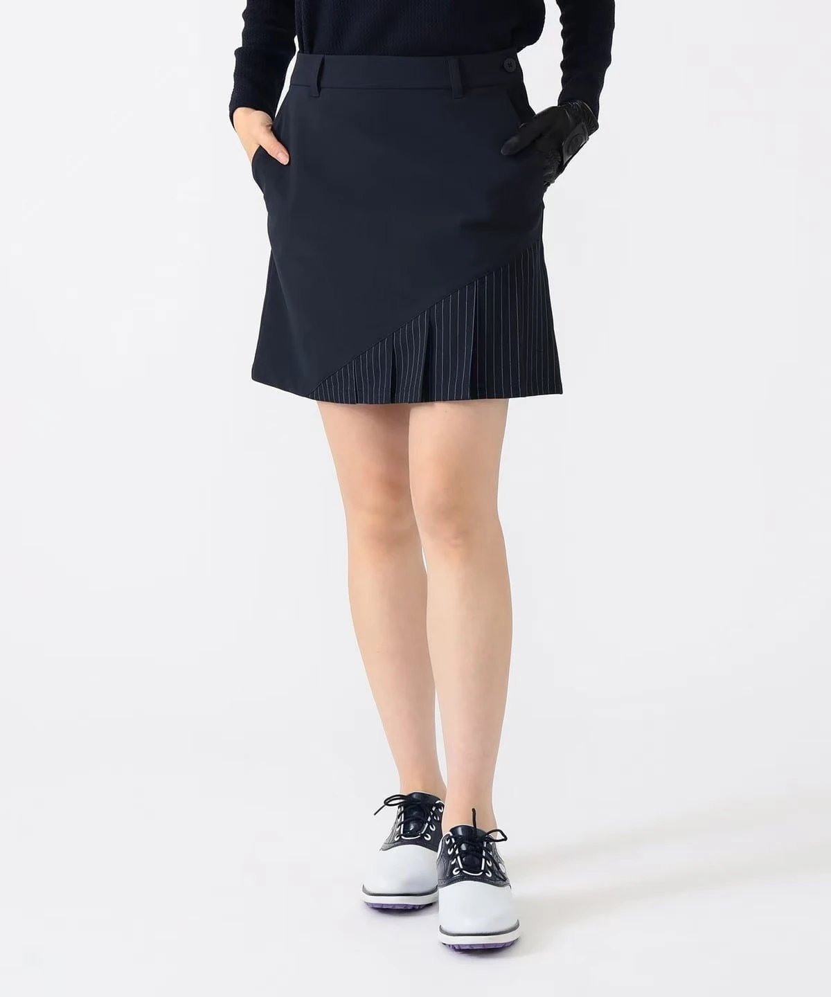 外单保真,部分三标不齐(领标,洗标,绣标,吊牌),介意者慎拍! 使用清爽且有质感的布料制成的褶皱裙。其特点是采用了与条纹图案不同材质的设计。前部条纹图案的褶皱切换为特征,成为协调的亮点。由于采用了侧拉链设计,穿脱也十分顺畅。恰到好处的长度感让腿部线条显得更加美丽。使用可伸缩的面料,可灵活应对高尔夫挥杆等活动动作。采用聚酯纤维和聚氨酯混纺面料。优越的弹性带来的舒适感也是其魅力所在。 S:腰围69cm/臀围90cm/裙长43.5cm M:腰围70cm/臀围91.5m/裙长44cm L:腰围73cm/臀围93cm/裙长45.5cm (Tip:尺寸均为手工测量如有1-3cm误差属正常情况)
