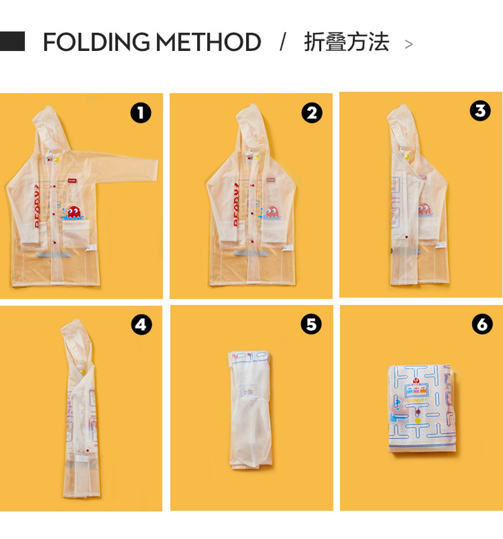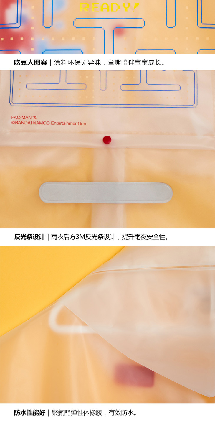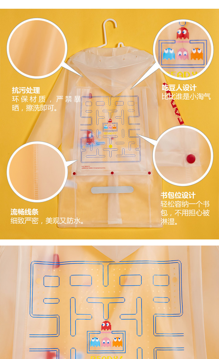 Joycorn吃豆人儿童雨衣雨披学生男女童3-9岁透明、透气、防水、带书包位|猫大