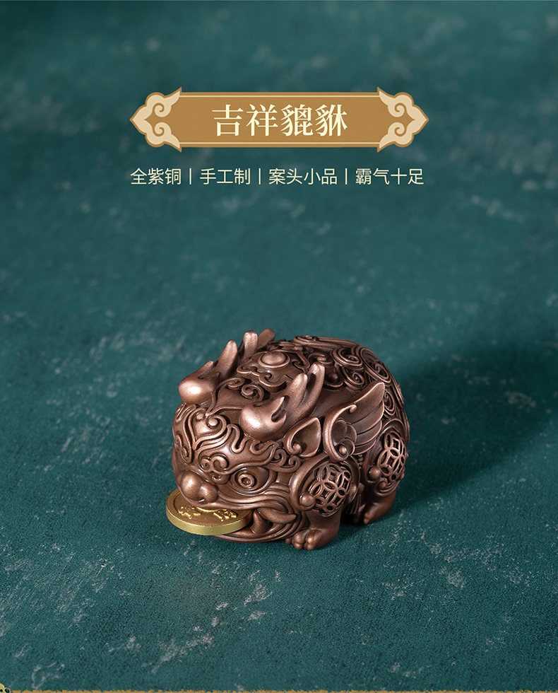 铜师傅《吉祥貔貅》玄关桌面紫铜貔貅摆件 家居装饰工艺品