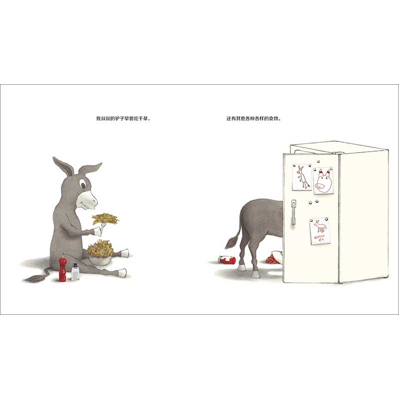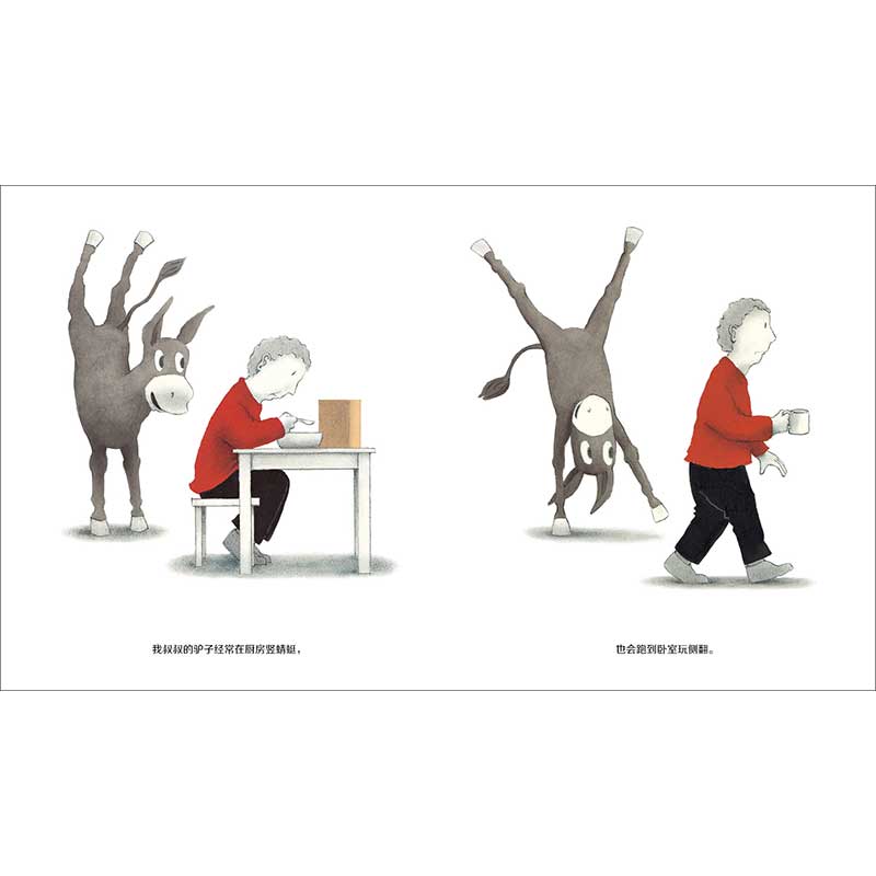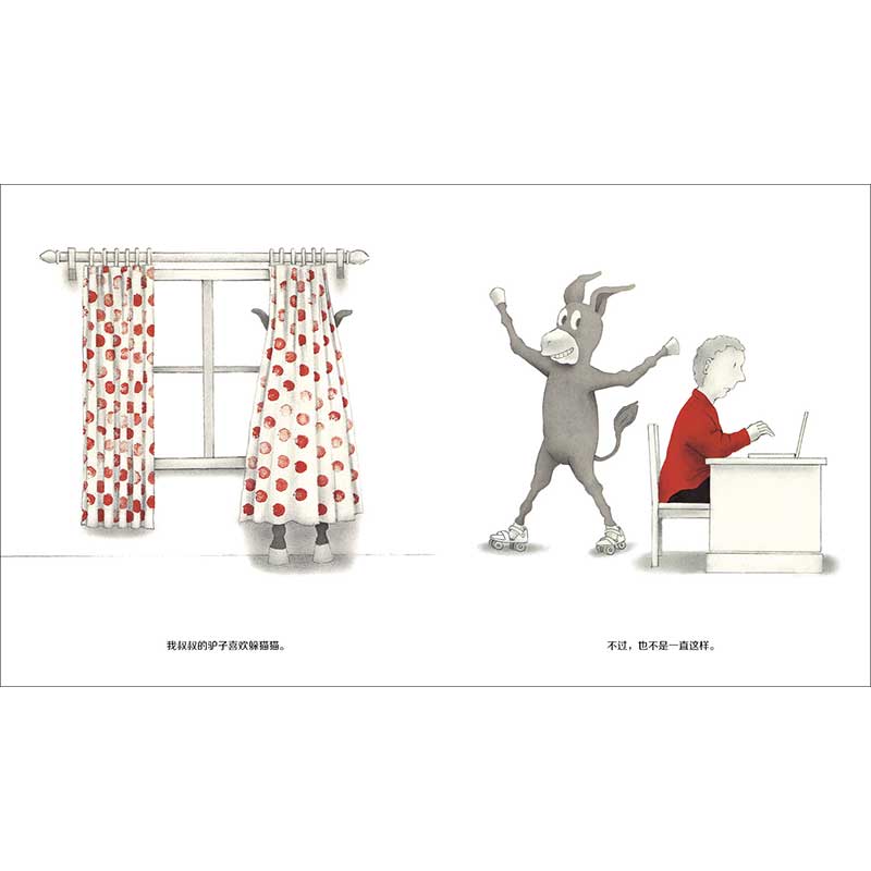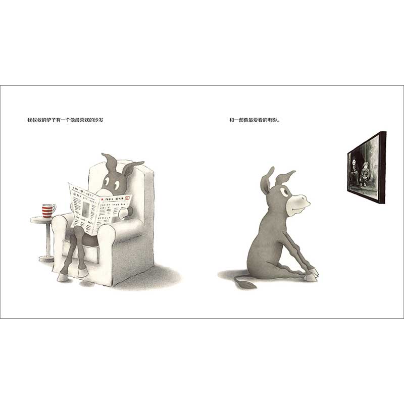 我叔叔家有一头驴子,他喜欢竖蜻蜓、躲猫猫,把屋里搞得一团糟;他还喜欢看卓别林的电影,听萨蒂的钢琴曲,还有吃花——吃的是凡·高的向日葵。他真是太酷了!我也想要这样的驴子!可我不确定我叔叔知不知道这一点,他甚至都不知道自己有一头驴子吧。