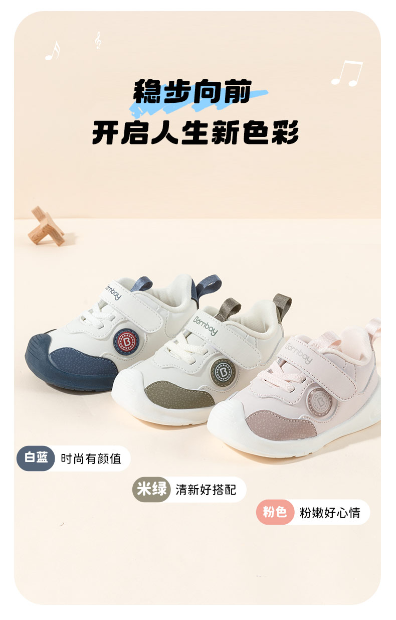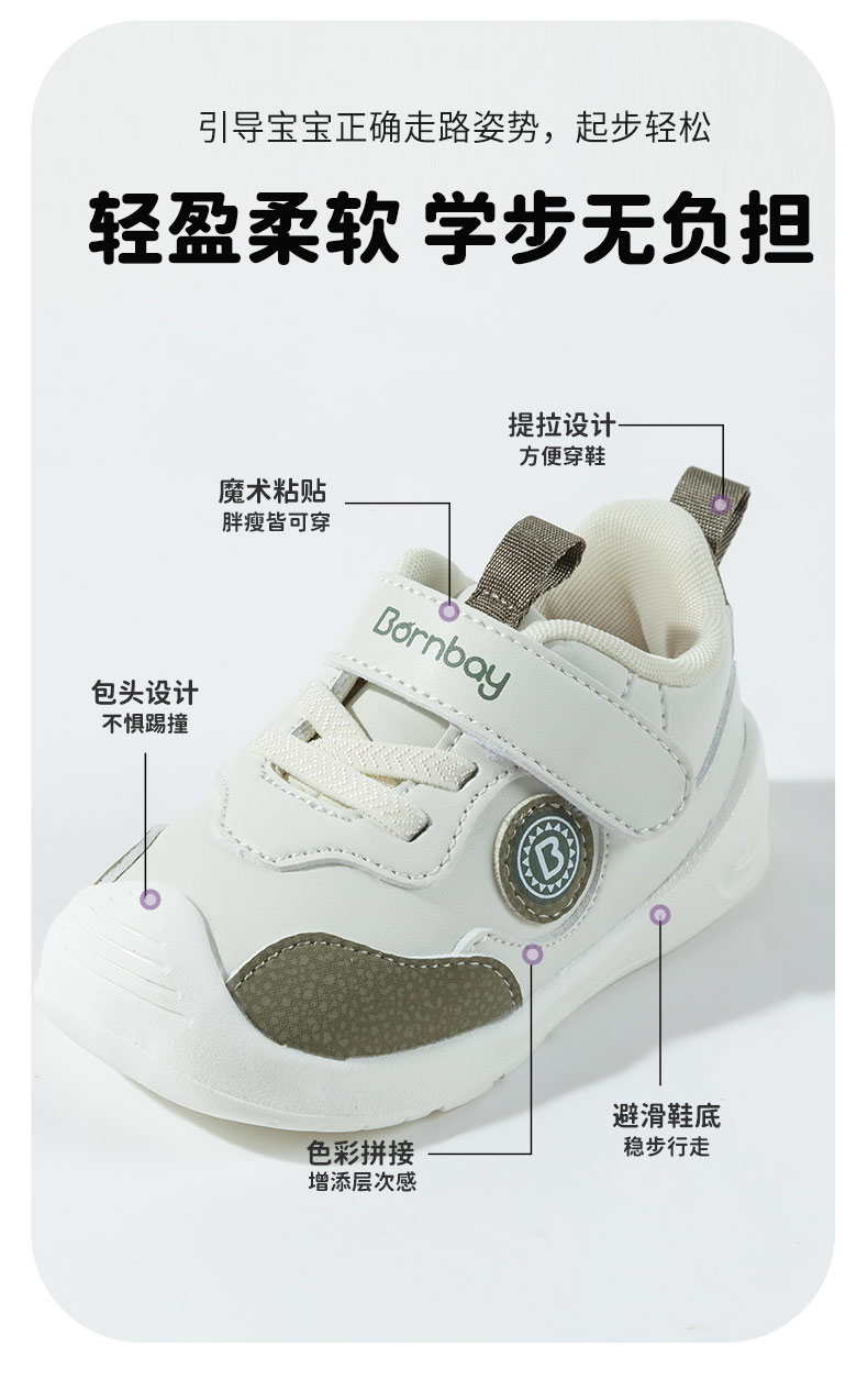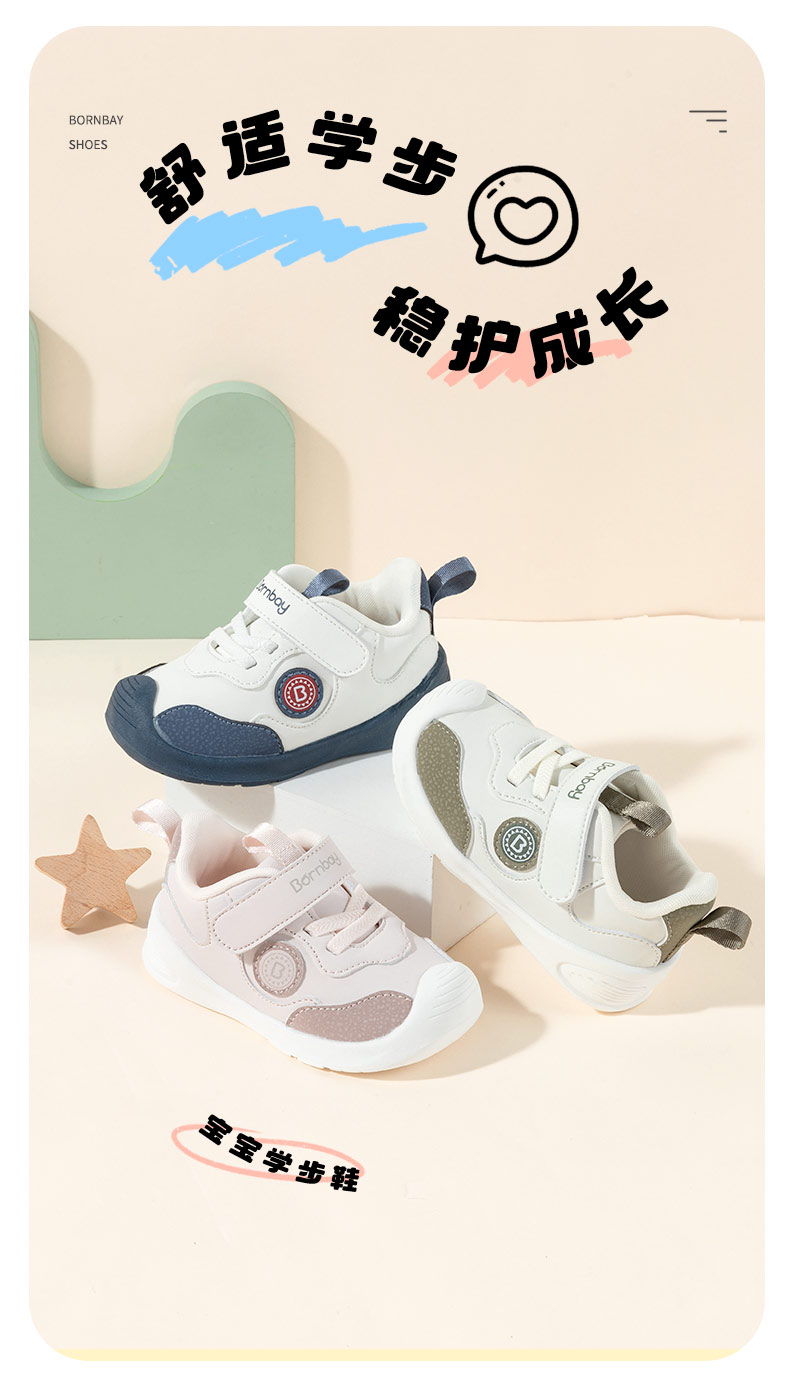 贝贝怡经典简约秋季新款男女宝宝学步鞋儿童包头防撞百搭童鞋 ZB3DX021
