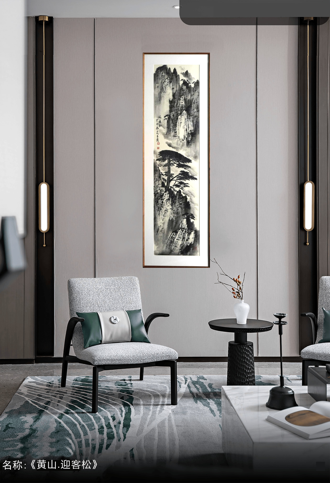 【名家手绘真迹】 中美协吴再发《黄山.迎客松》水墨国画 已装裱!仅一幅!送檀香实木框(包顺丰)