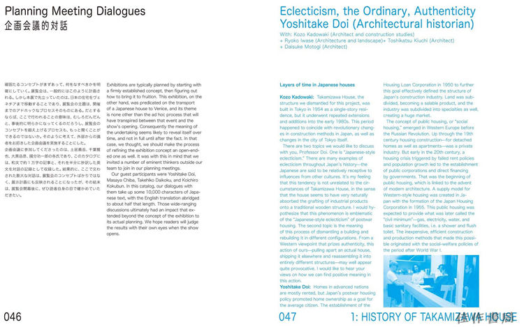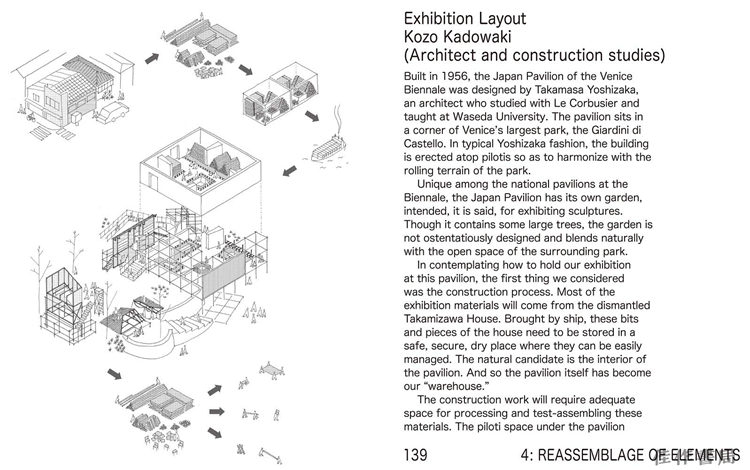 A wooden Japanese house slated for demolition will instead be moved to Venice for exhibition. Yet the house put on display will not appear in its original form. Dismantled for shipping, it will be reassembled on-site in new configurations created by architects and artisans from Japan, who will add new or local materials and other elements in the process. In other words, the exhibition of the house will be a fantastical installation that combines old and new in a composite of creative efforts by multiple designers and craftsmen. This book, edited by architect Kozo Kadowaki, explores the project in detail.