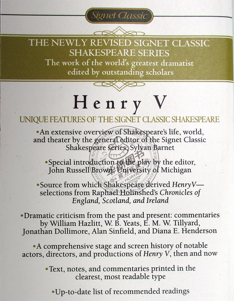 本书为Signet Classics推出的英文原版修订版,对莎士比亚生平作了介绍,同时提供序言、评论、注释等。内容完整无删减,书本小巧便携,适合英语学习者及对经典英国文学作品、莎士比亚系列作品感兴趣的读者。