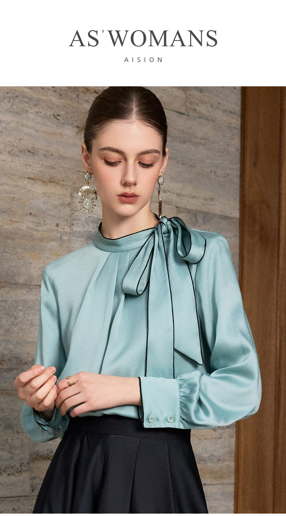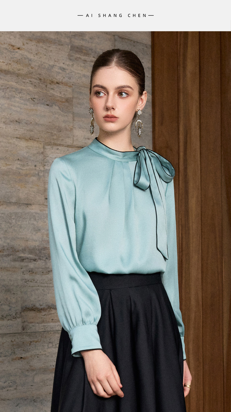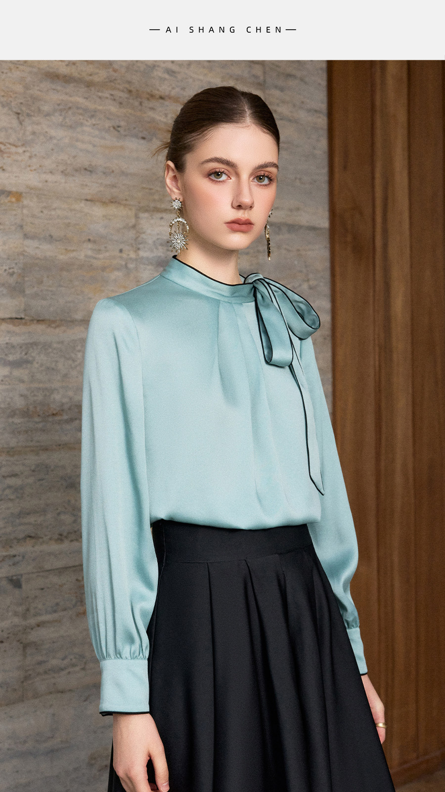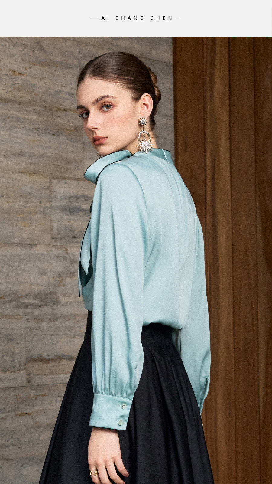 艾尚臣法式蝴蝶结飘带领长袖衬衫女轻熟优雅风高级感上衣