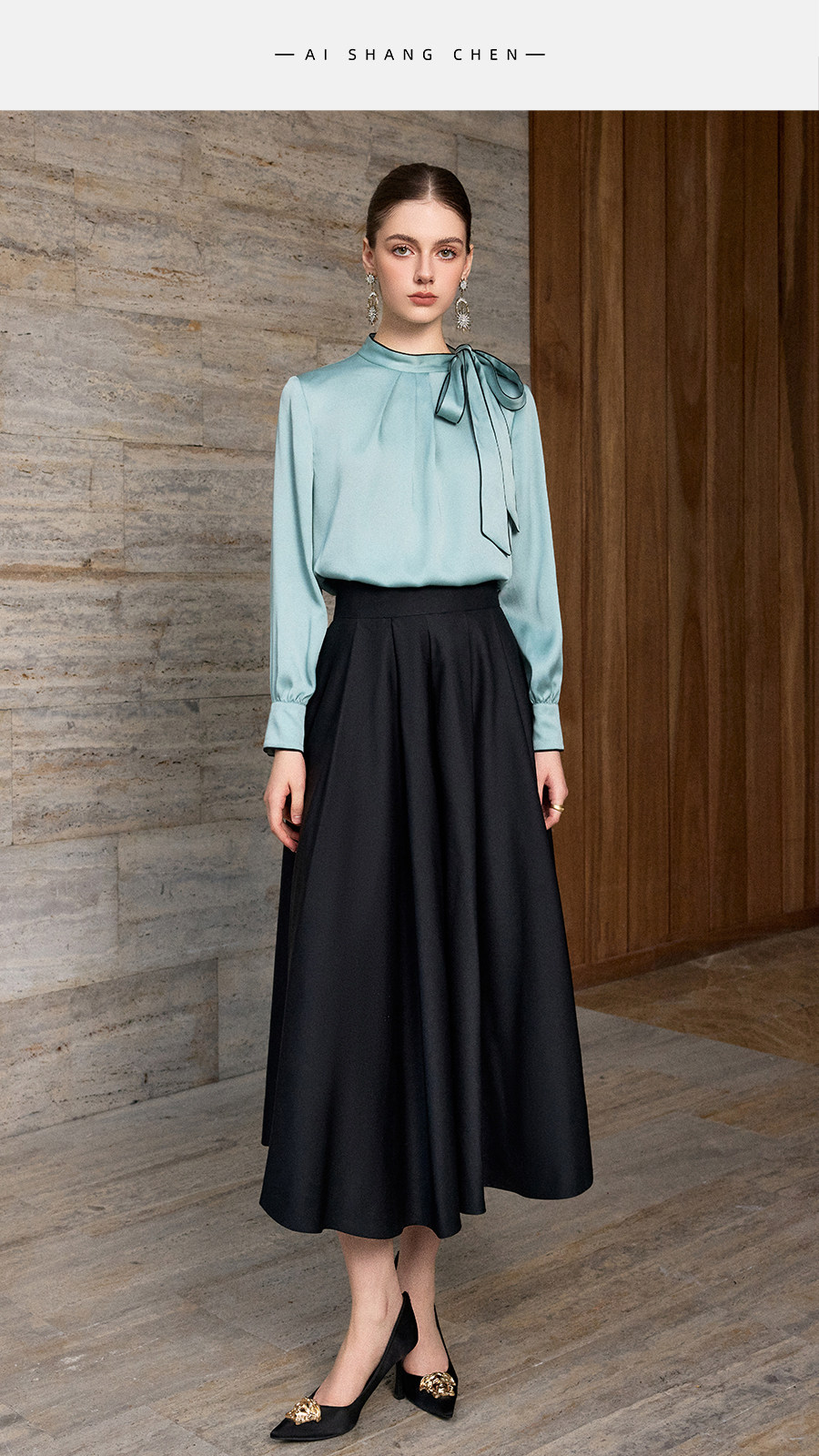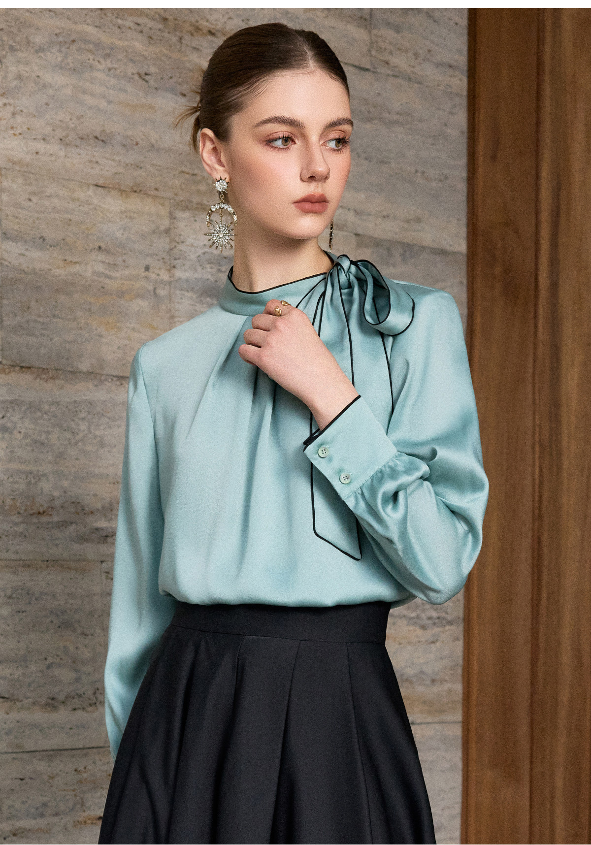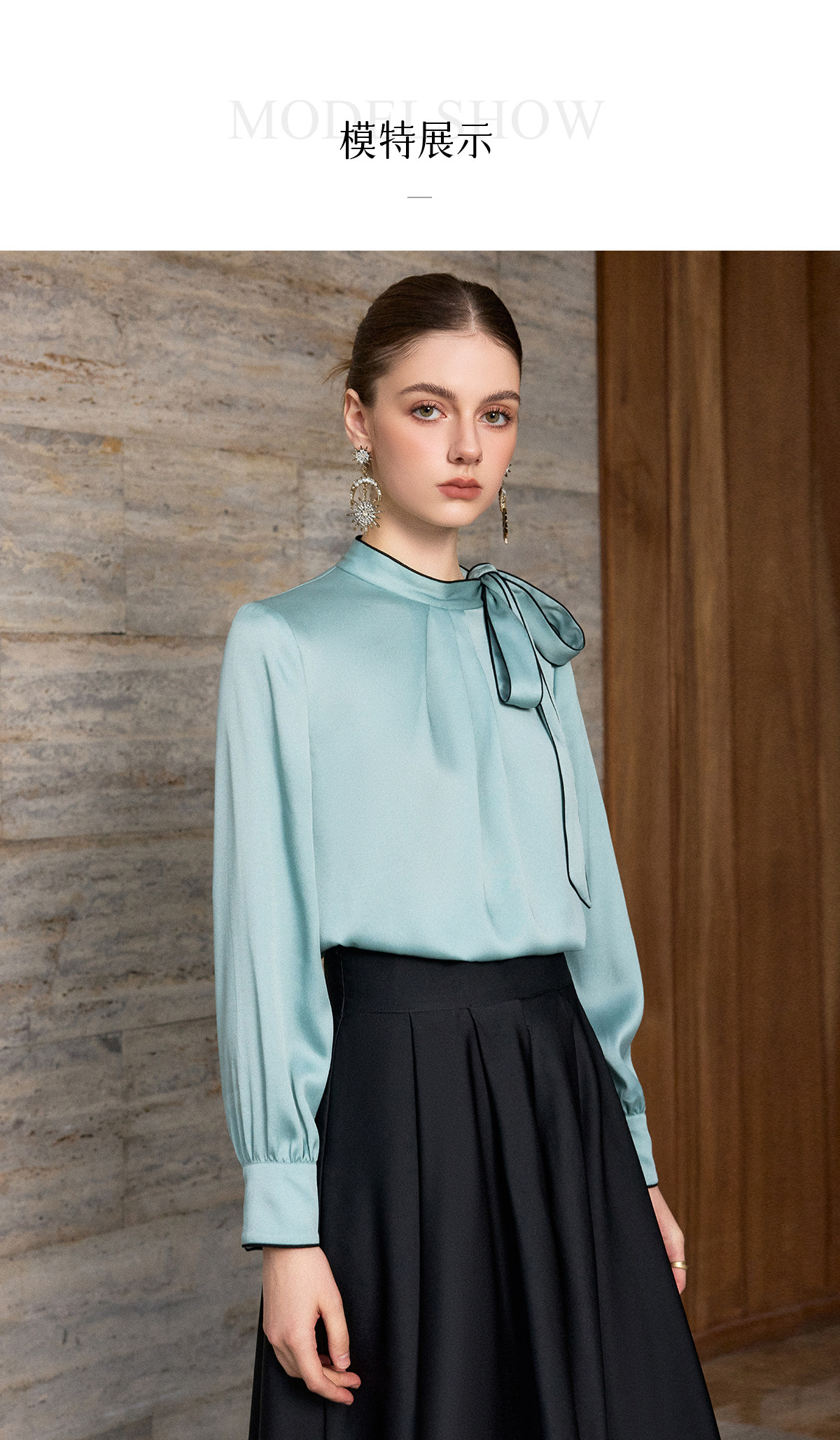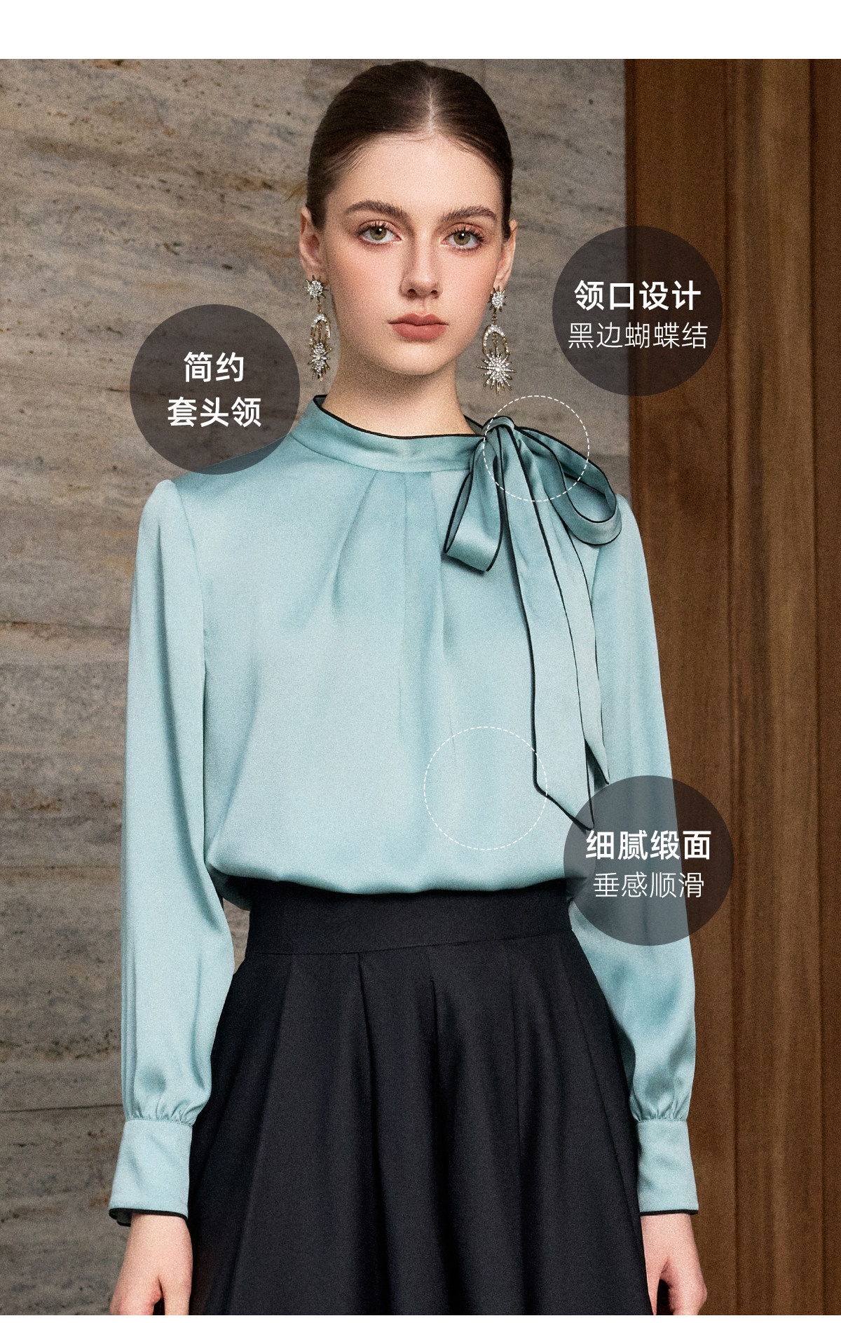 艾尚臣法式蝴蝶结飘带领长袖衬衫女轻熟优雅风高级感上衣