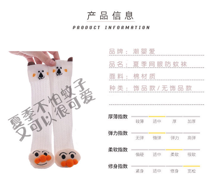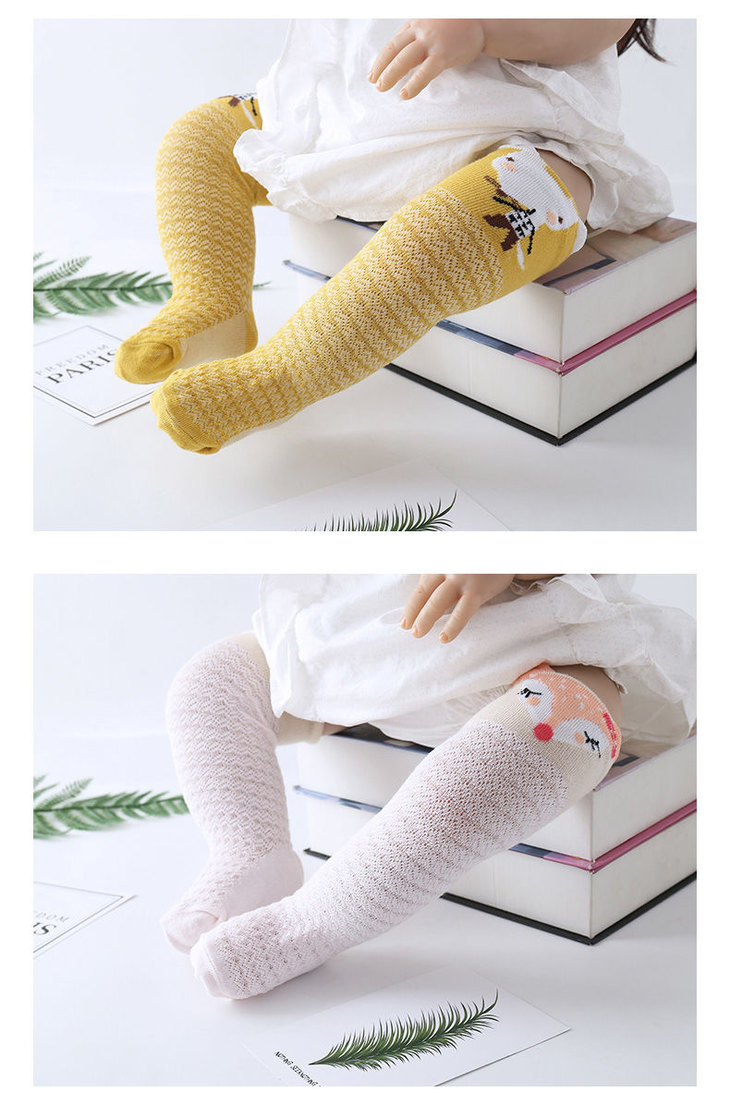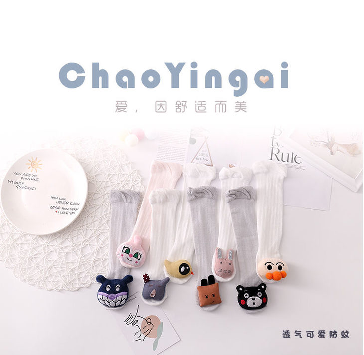 卡通婴儿袜防蚊过膝长高筒袜 | 透气新生儿童宝宝长袜
