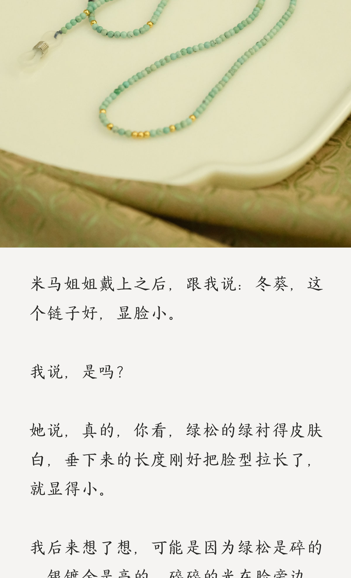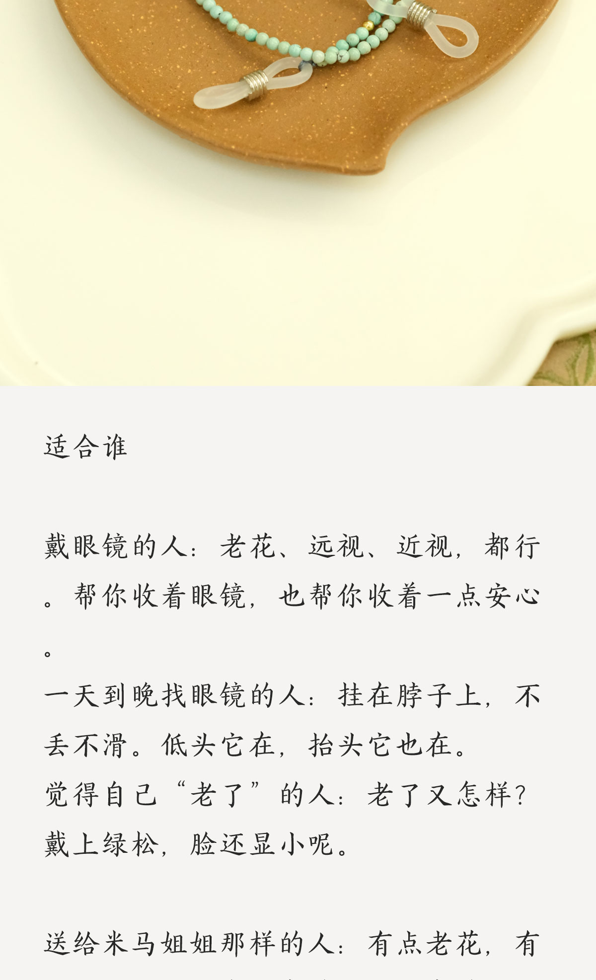 米马饰物 天然无优化绿松眼镜链 手工编织 给老花远视的米马姐姐 也给你