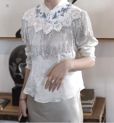 盛唐牡丹| 手工三蓝打籽盘银绣云肩
