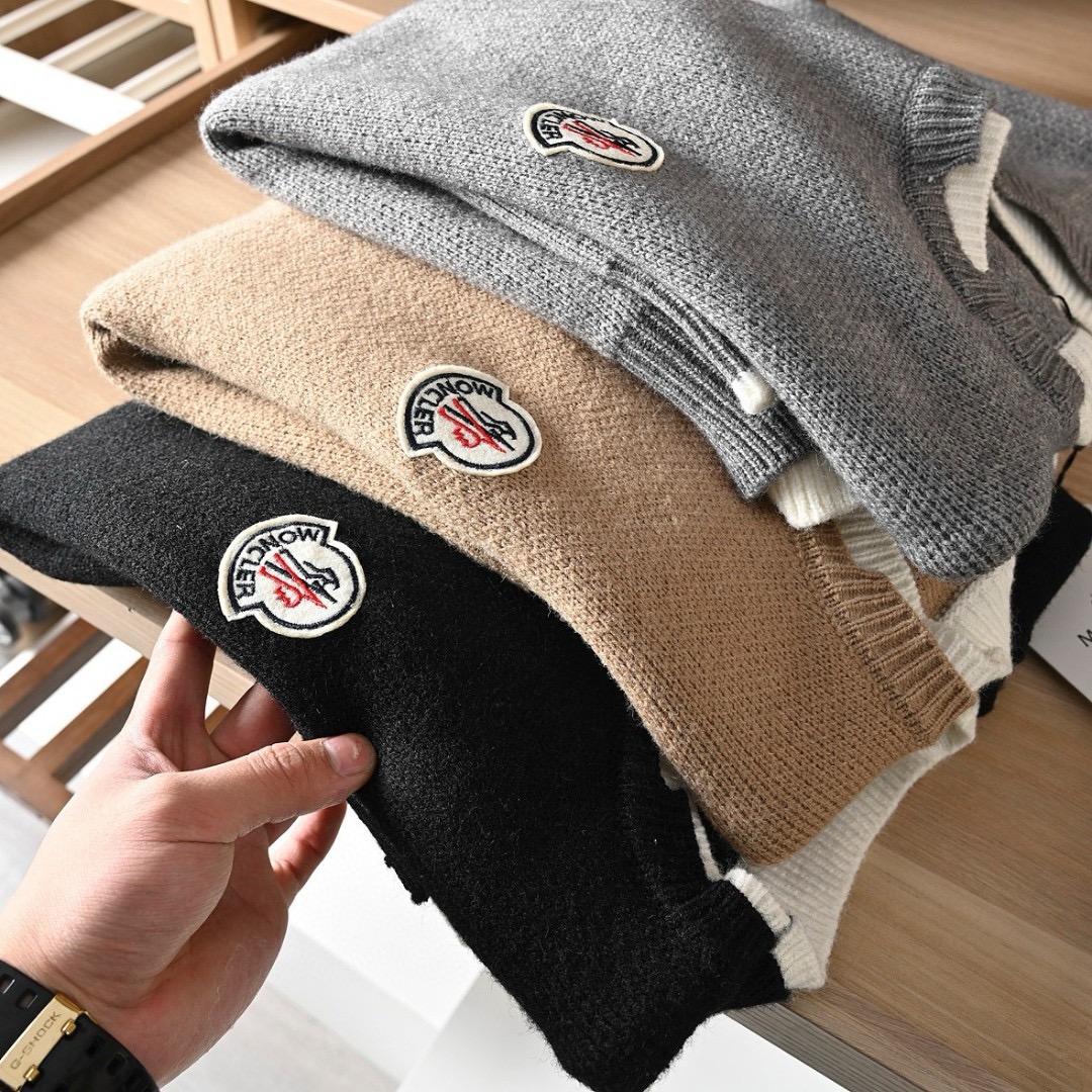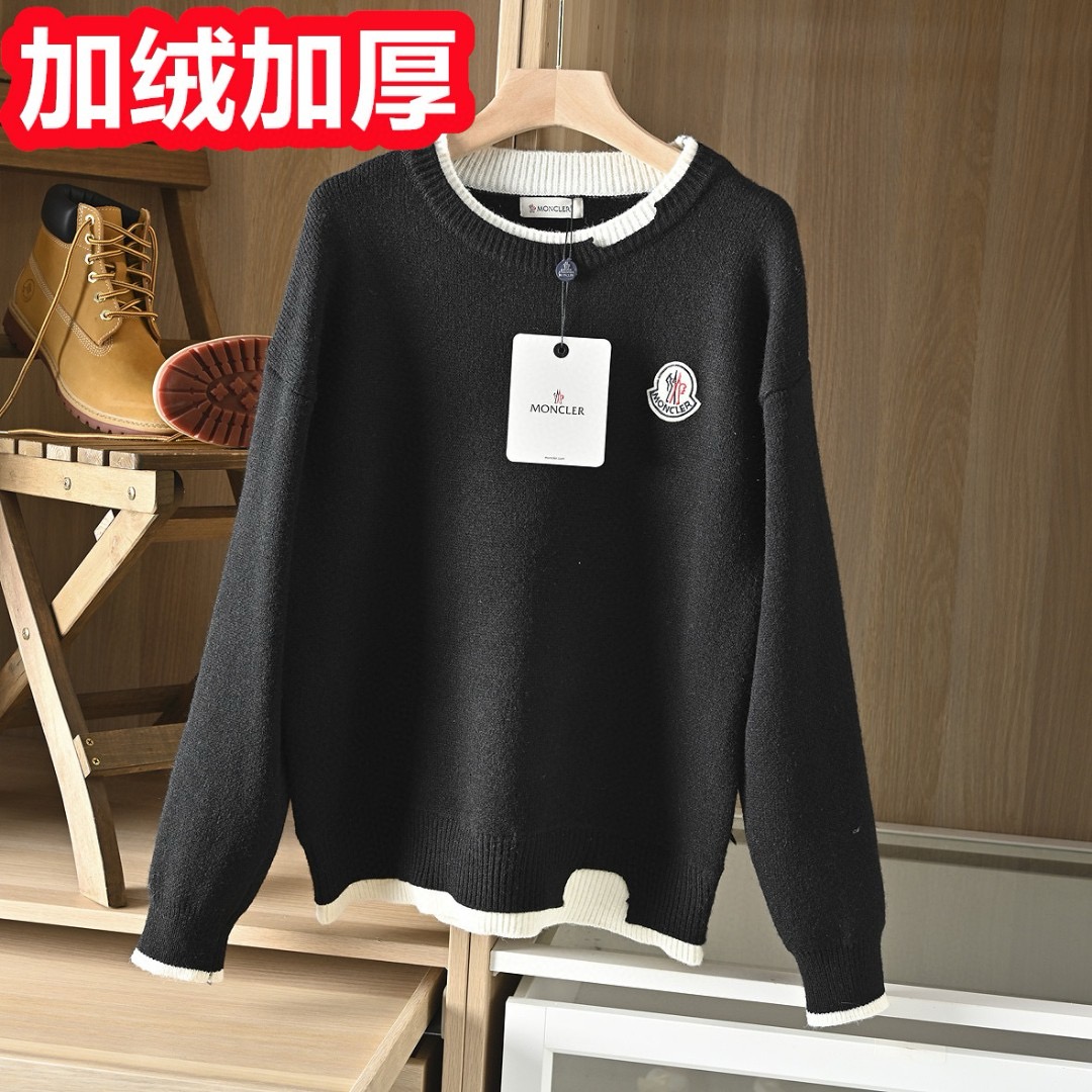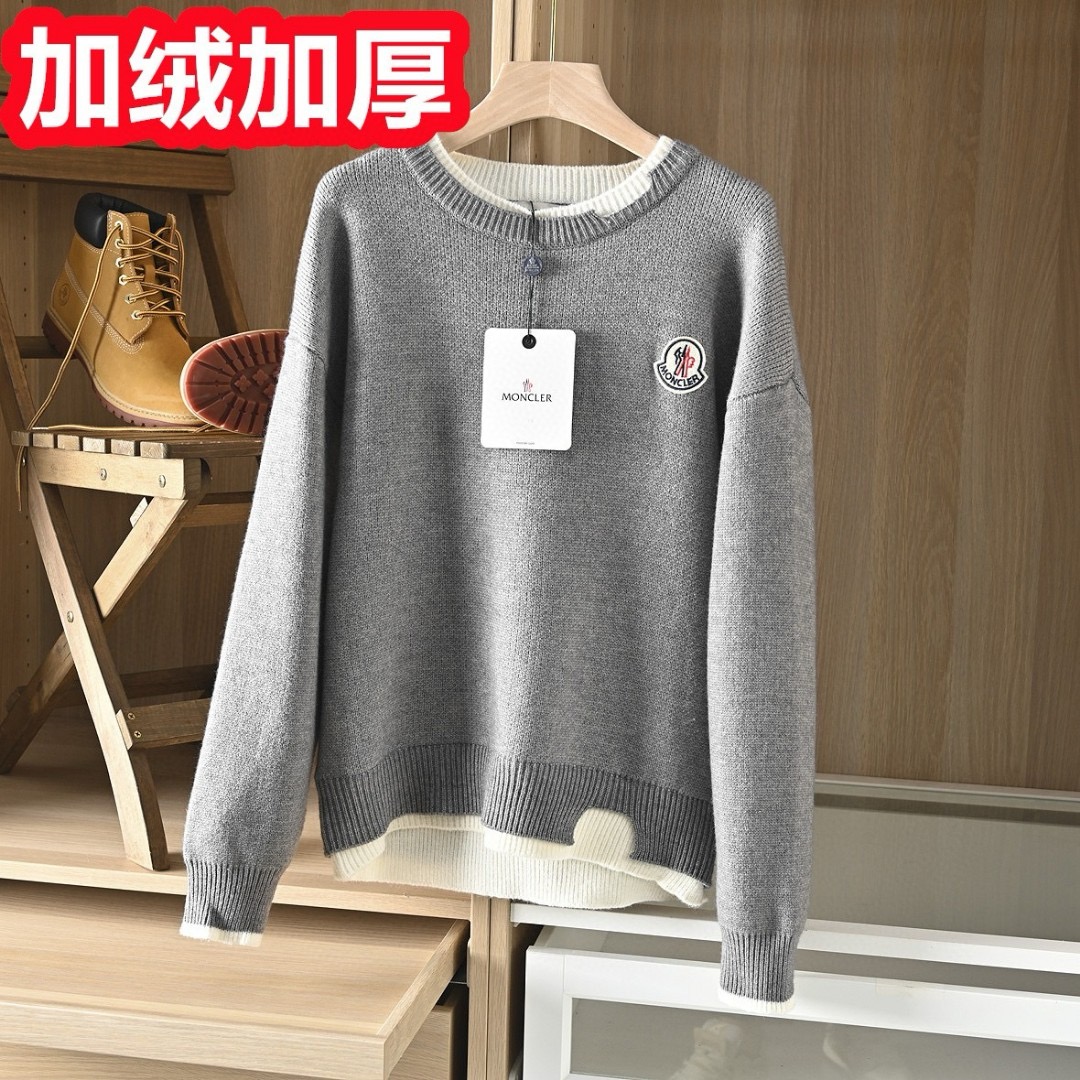 MONCLER 蒙口2026冬季男士底抓绒加厚假两件纯色绵羊绒圆领加厚落肩袖套头毛衣