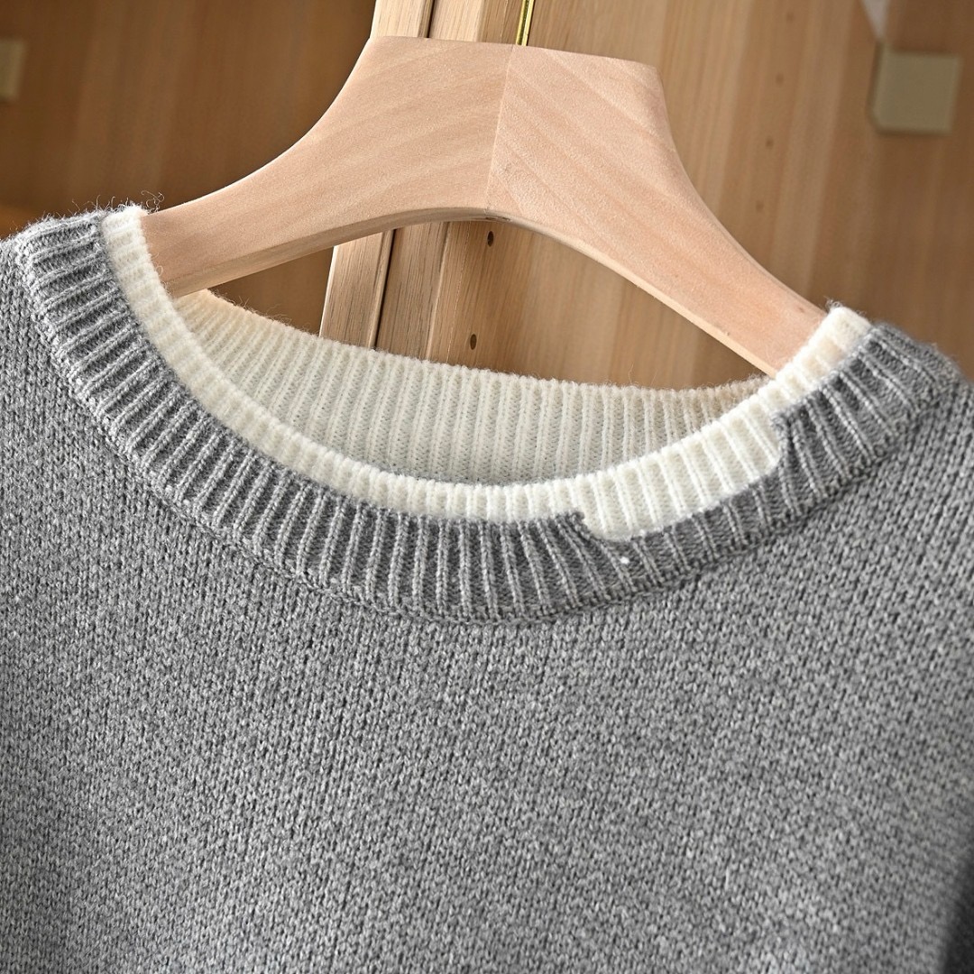 亦不失时髦气息不规则圆领毛衫搭配毛呢子,