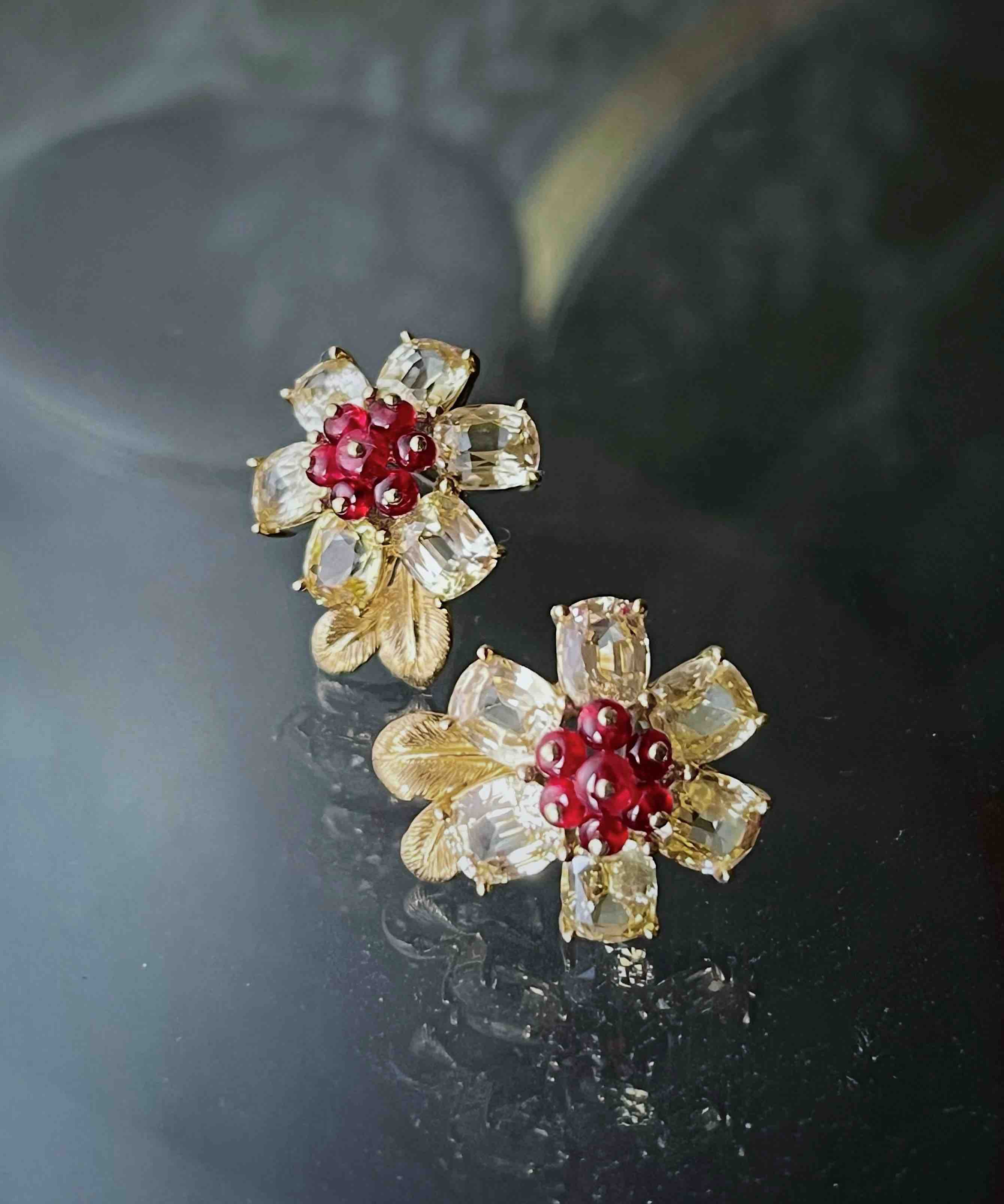 BY EVITA系列 花语 18K镶天然尖晶石和黄色蓝宝石 耳钉