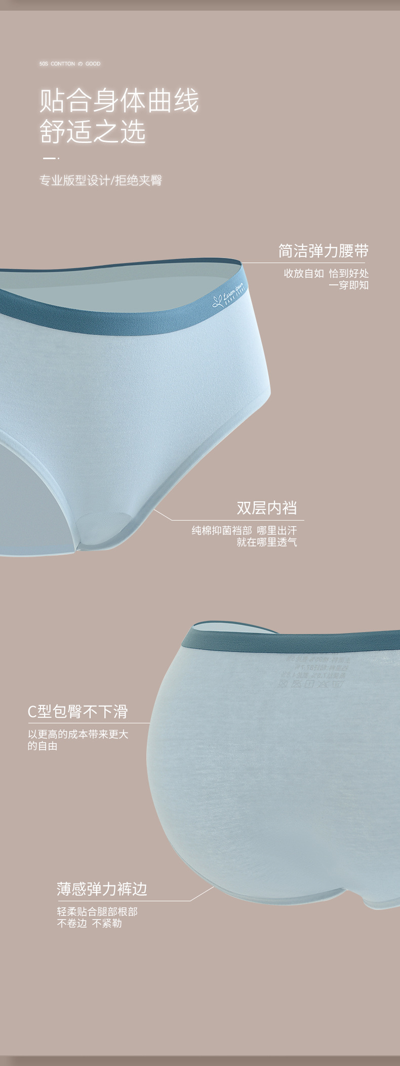 冰丝无痕女士内裤 裆部抗菌女士内裤
