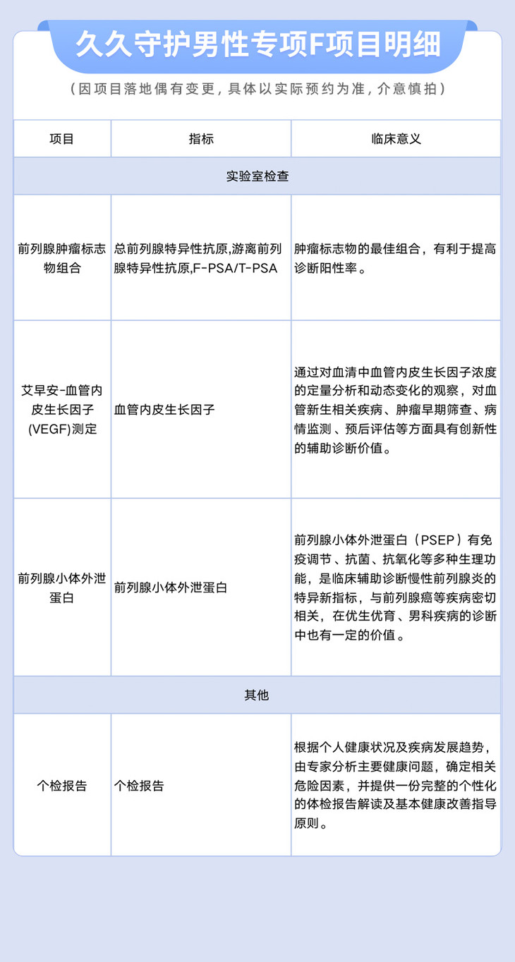 【含前列腺小体外泄蛋白+肿瘤标志物组合+VEGF】爱康 久久守护男性专项F