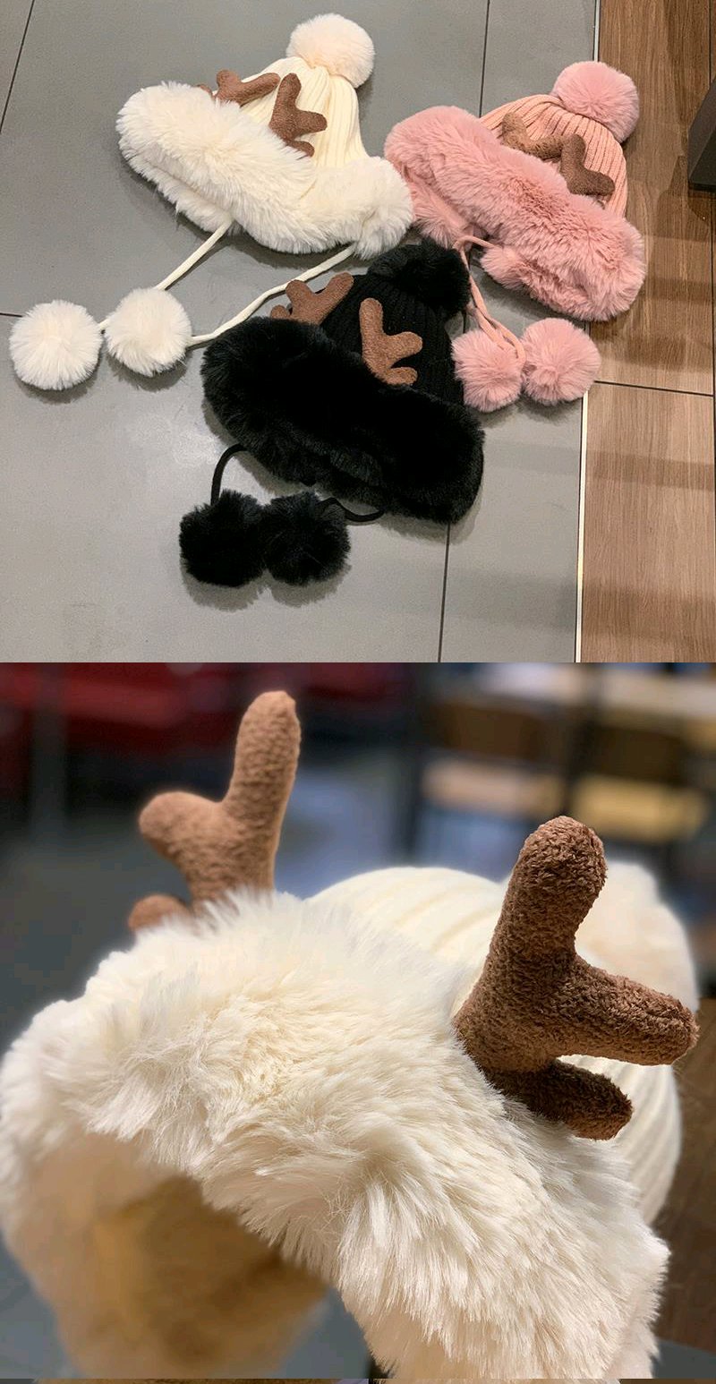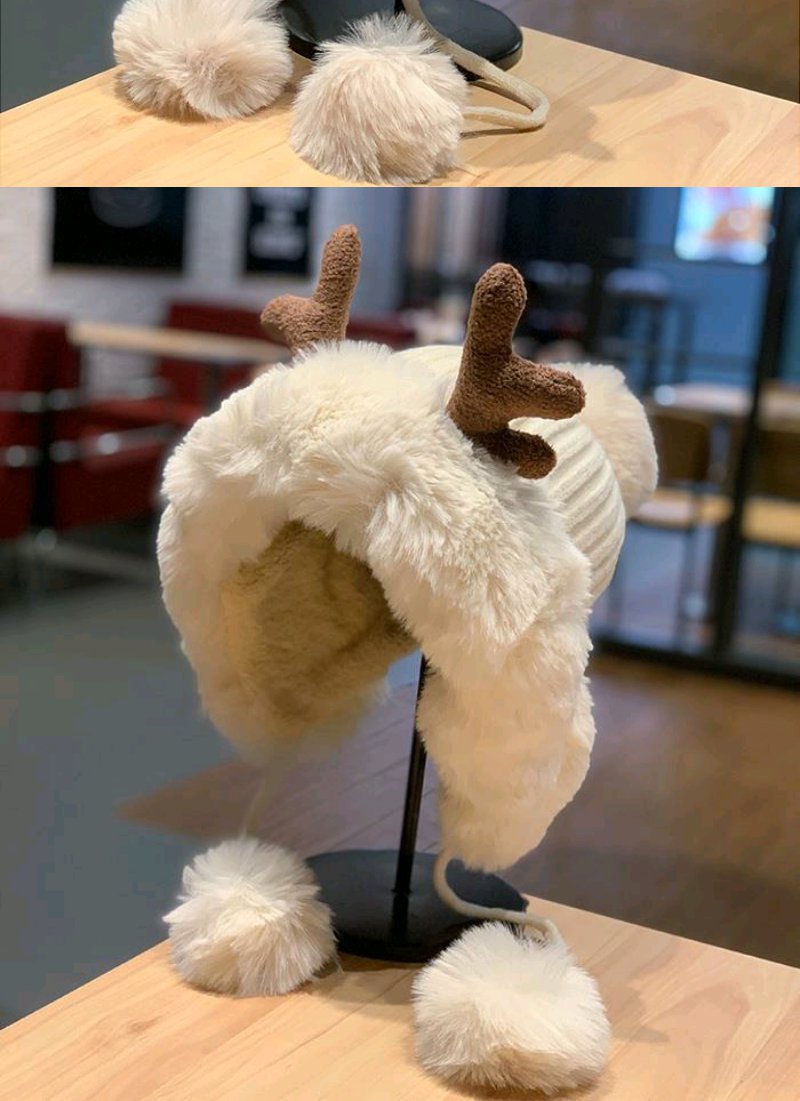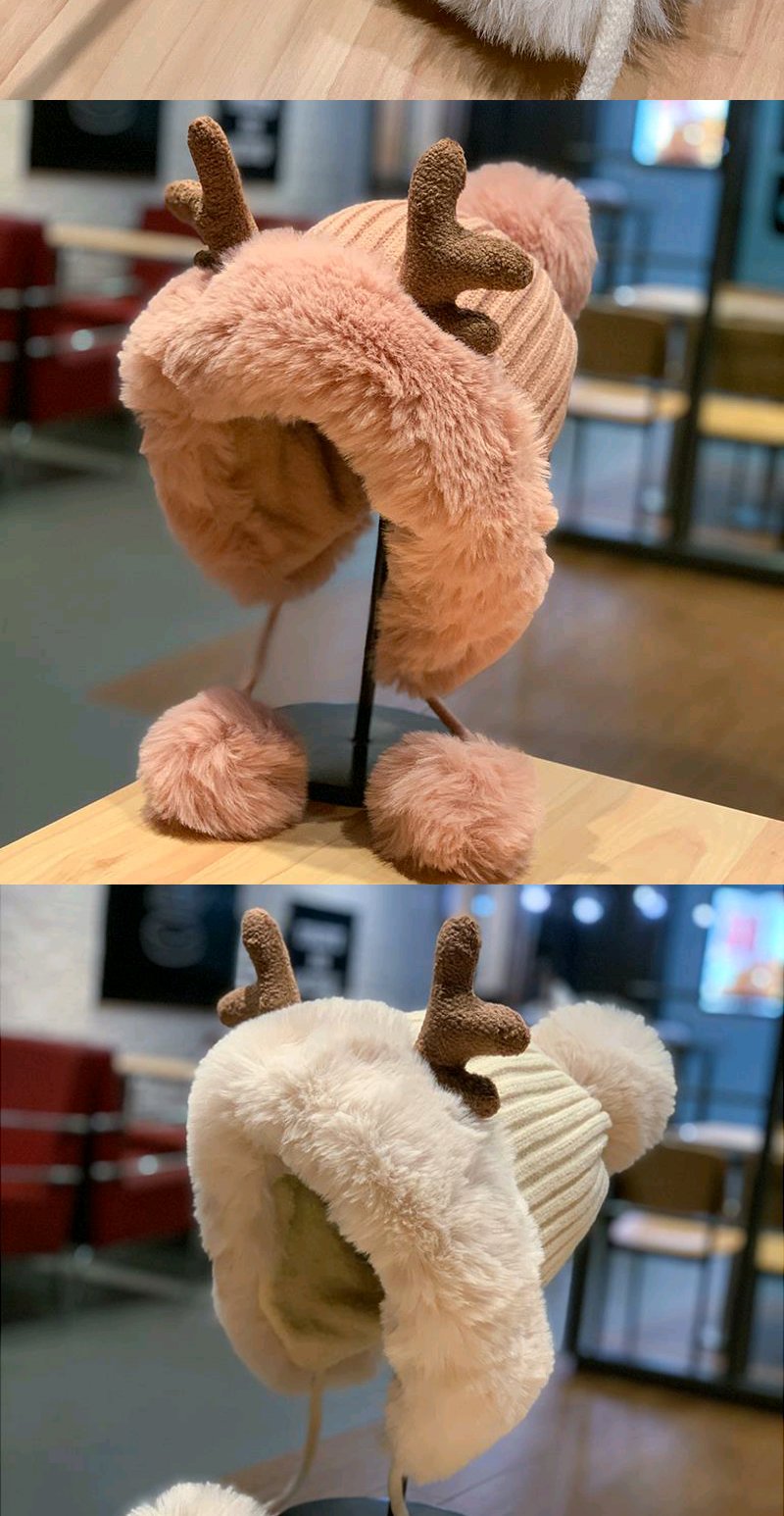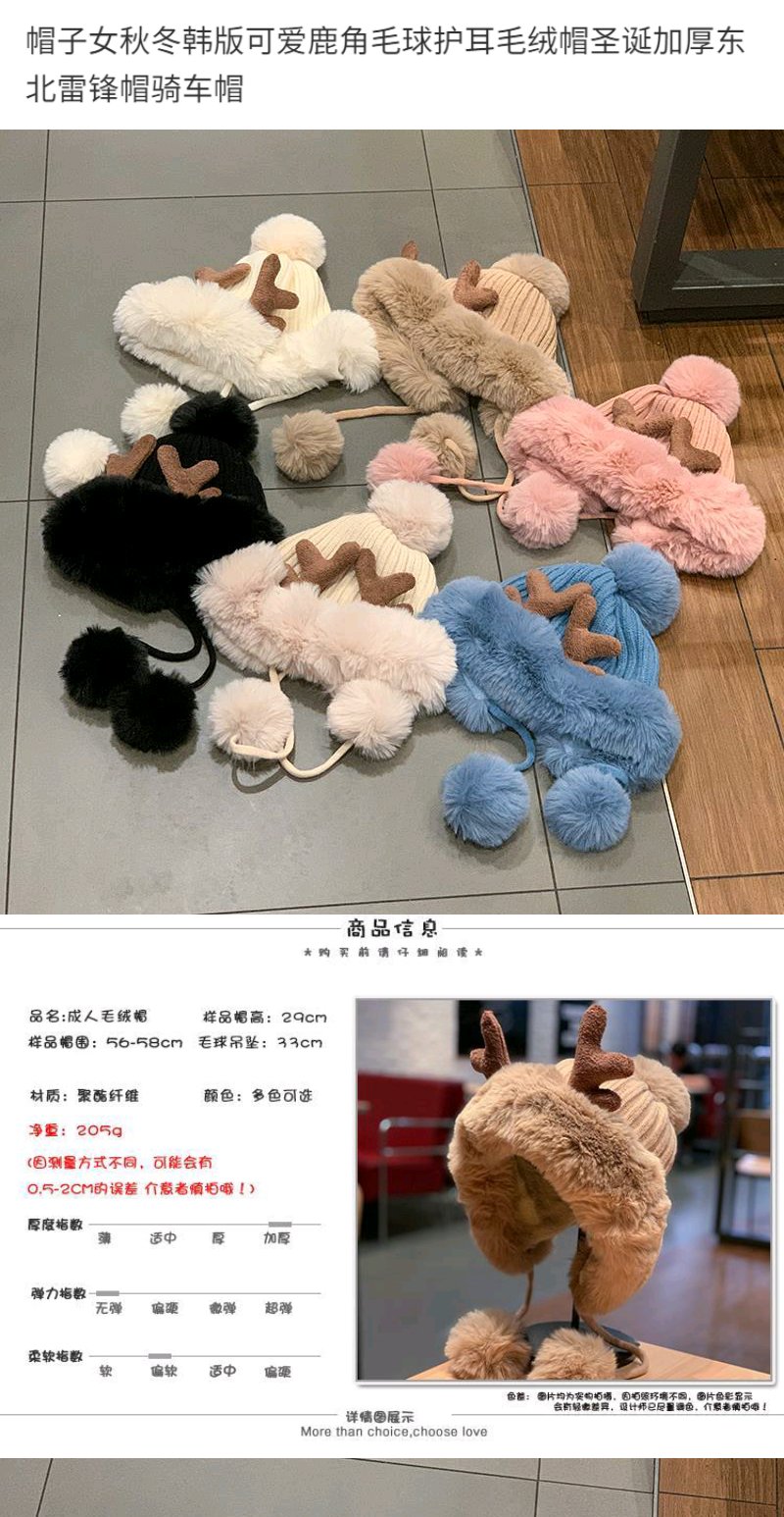帽子女秋冬韩版可爱鹿角毛球护耳毛绒帽圣诞加厚东北雷锋帽骑车帽