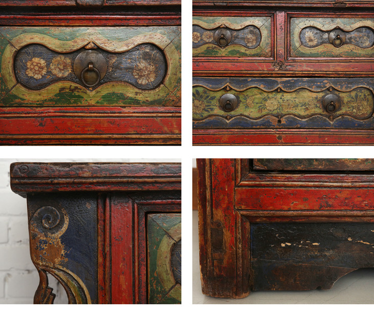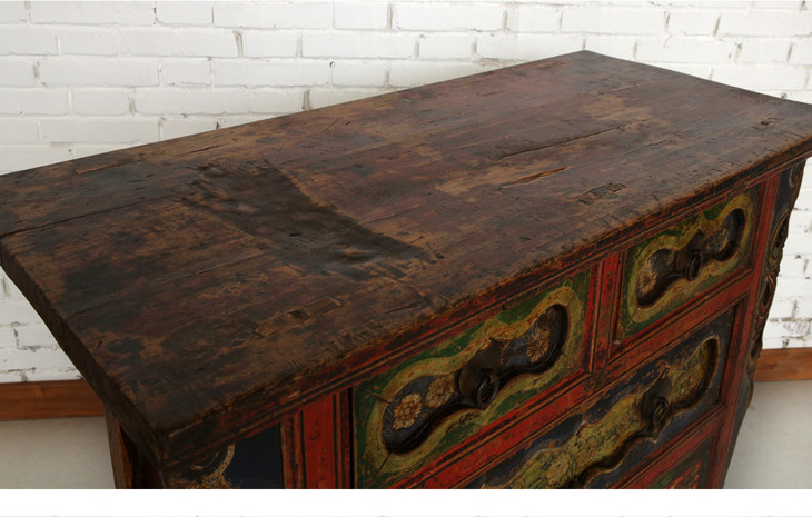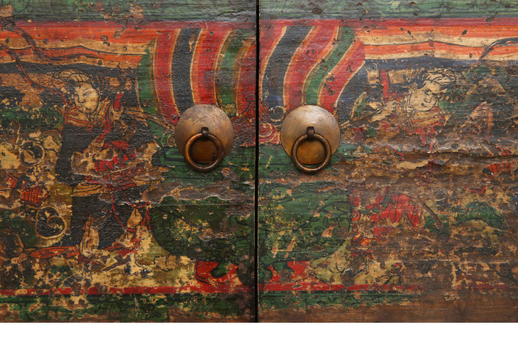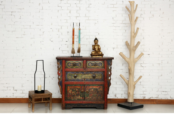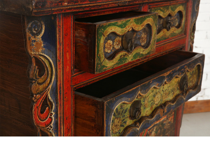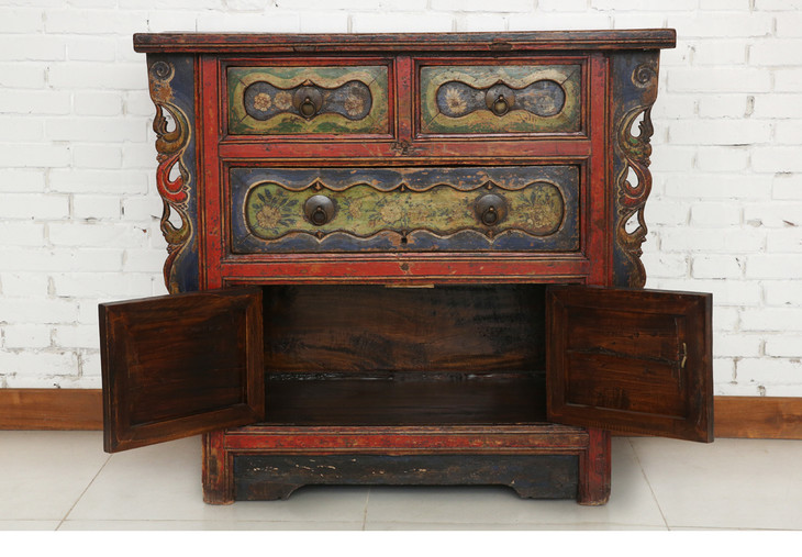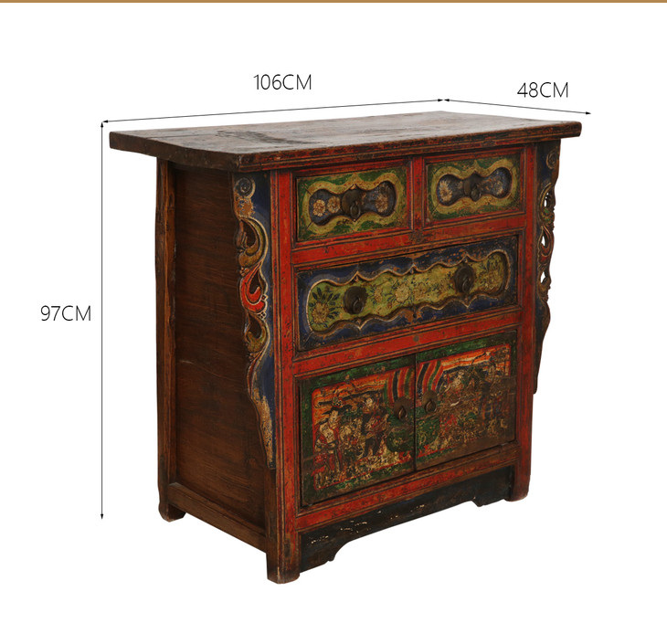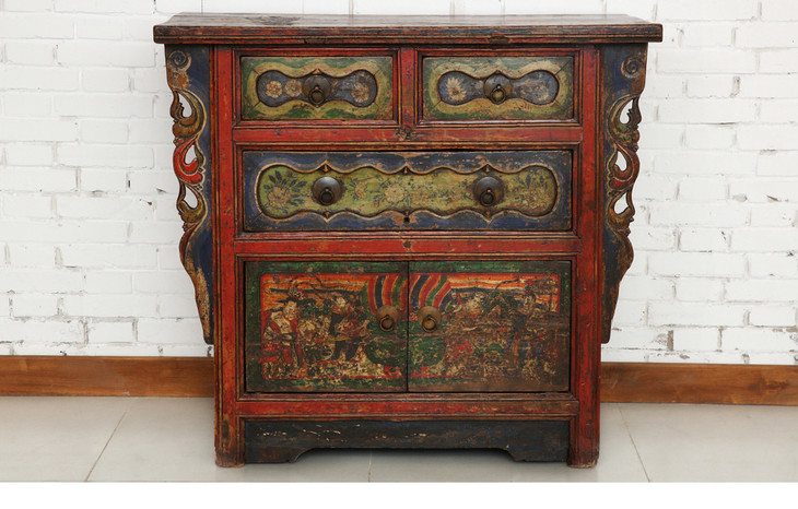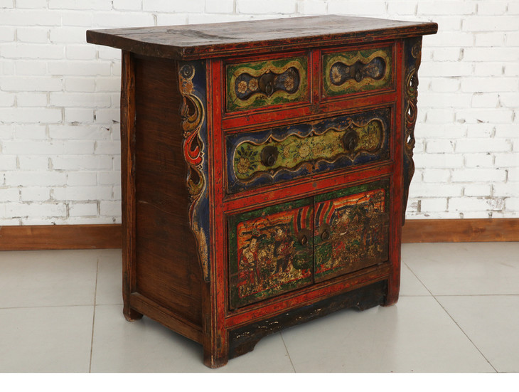 清晚期杨木古董家具三屉二门画柜五彩柜玄关柜Q12030004150 Antique Poplar wood Cabinet