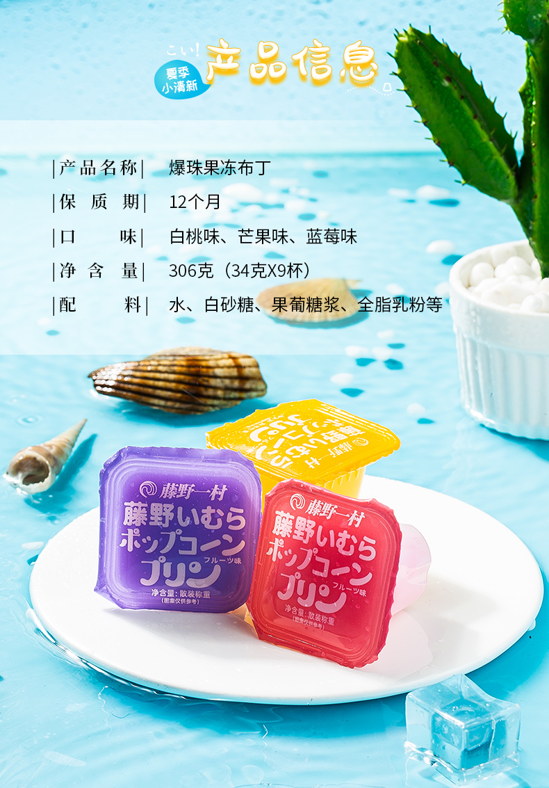 藤野一村爆珠布丁日本风味水果味网红果冻白桃味306g/盒