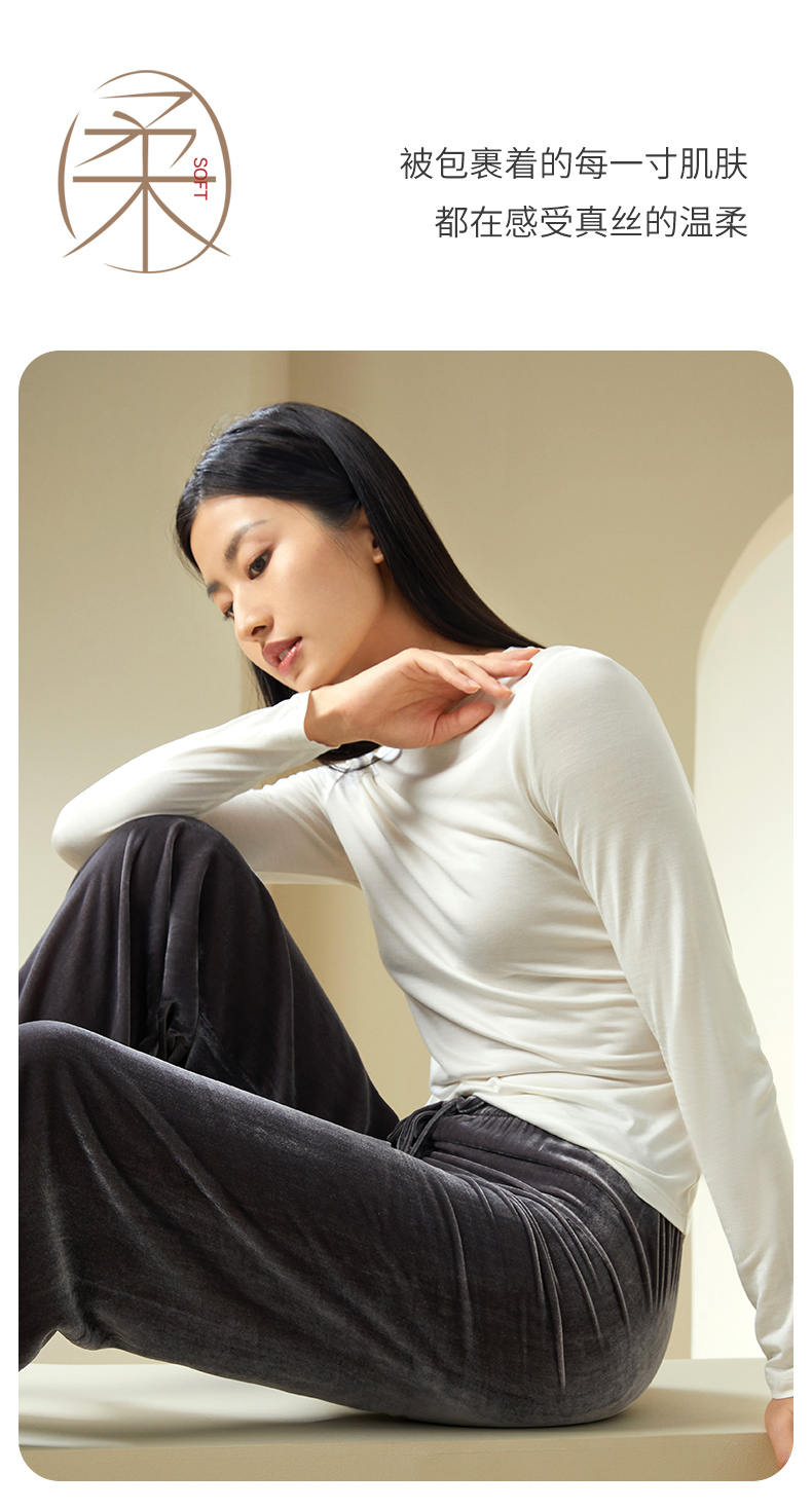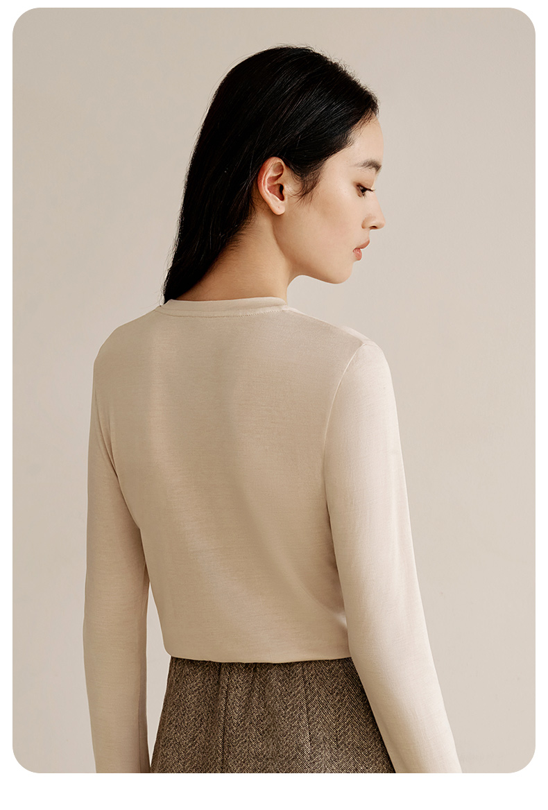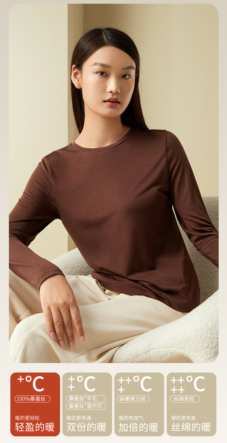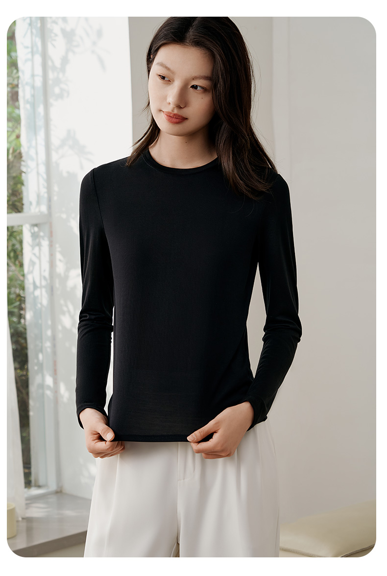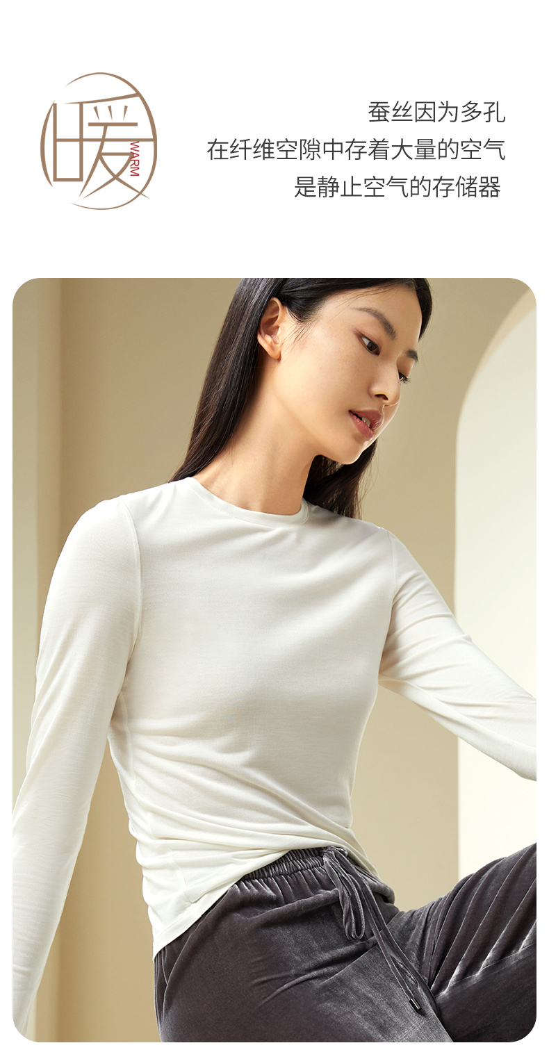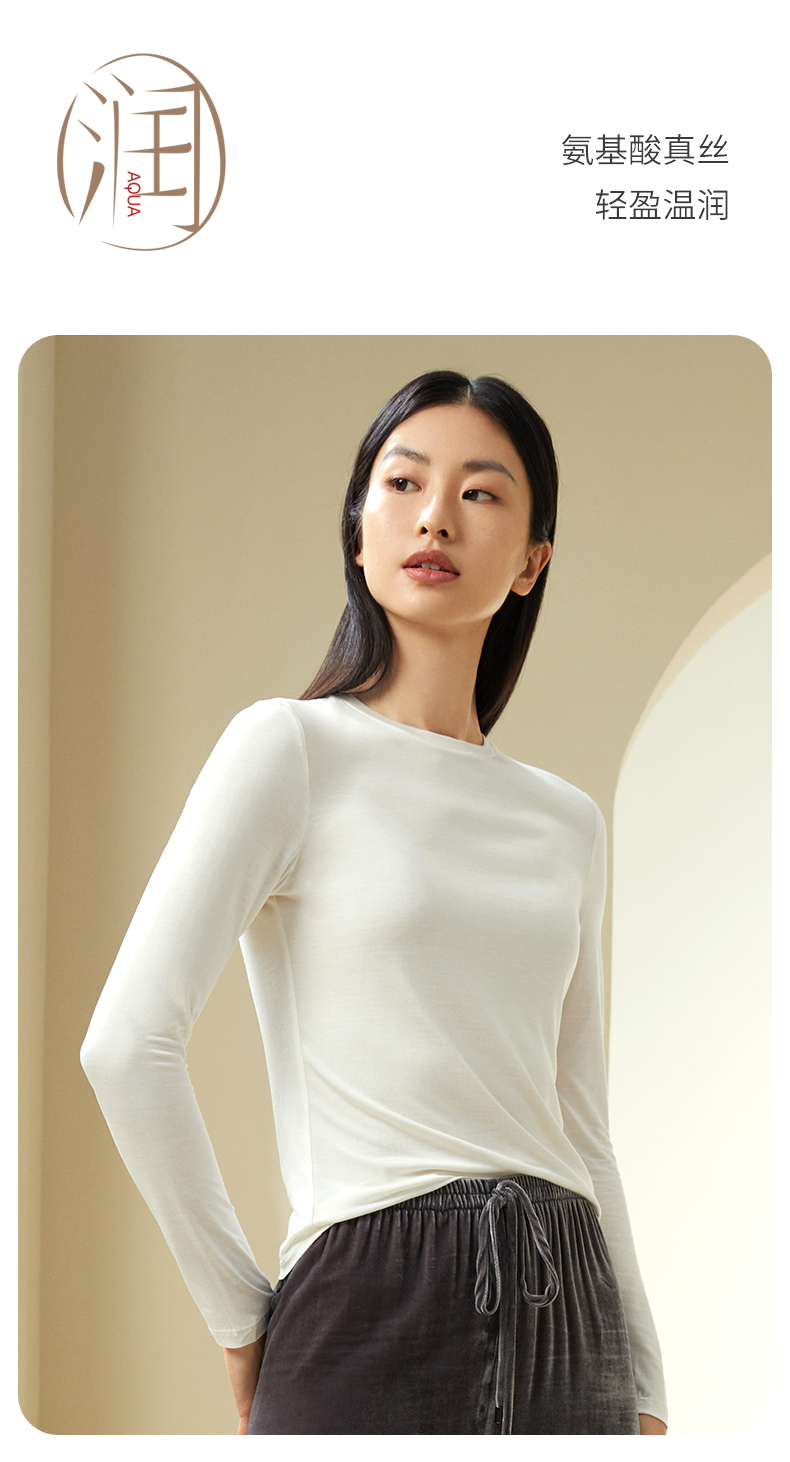 【面膜真丝肌肤衣】金三塔100%桑蚕丝长袖小圆领打底衫简约上衣女 NZFDC720(限价款)
