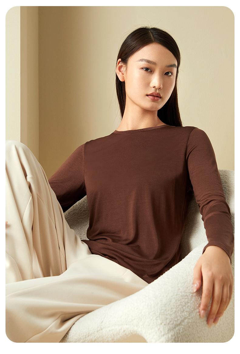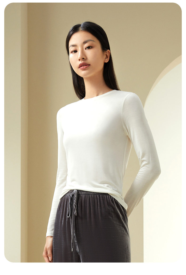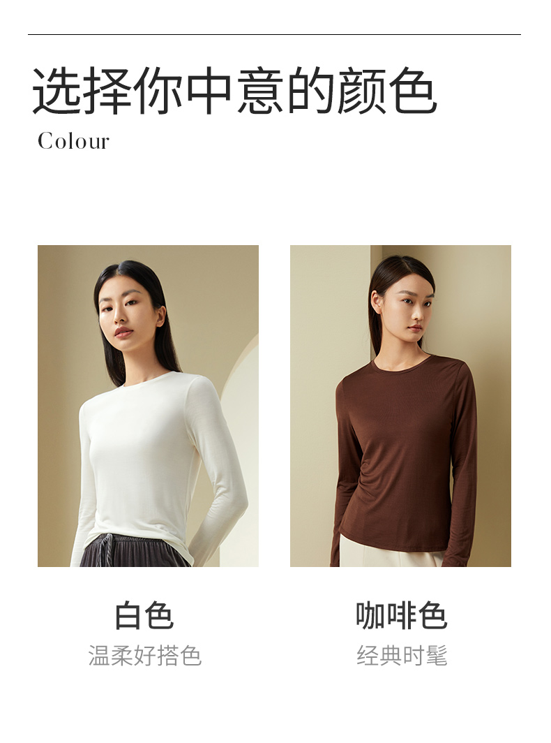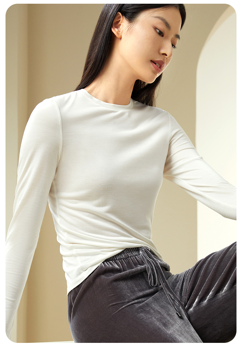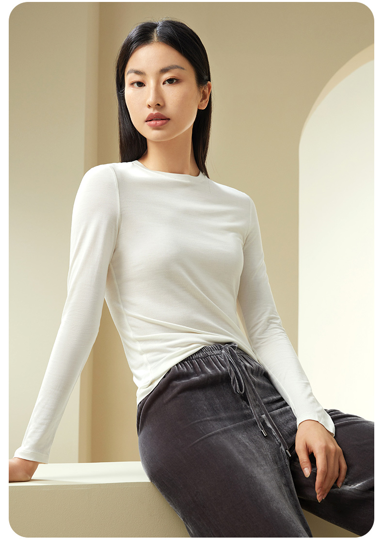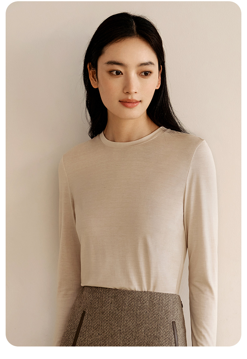 【面膜真丝肌肤衣】金三塔100%桑蚕丝长袖小圆领打底衫简约上衣女 NZFDC720(限价款)