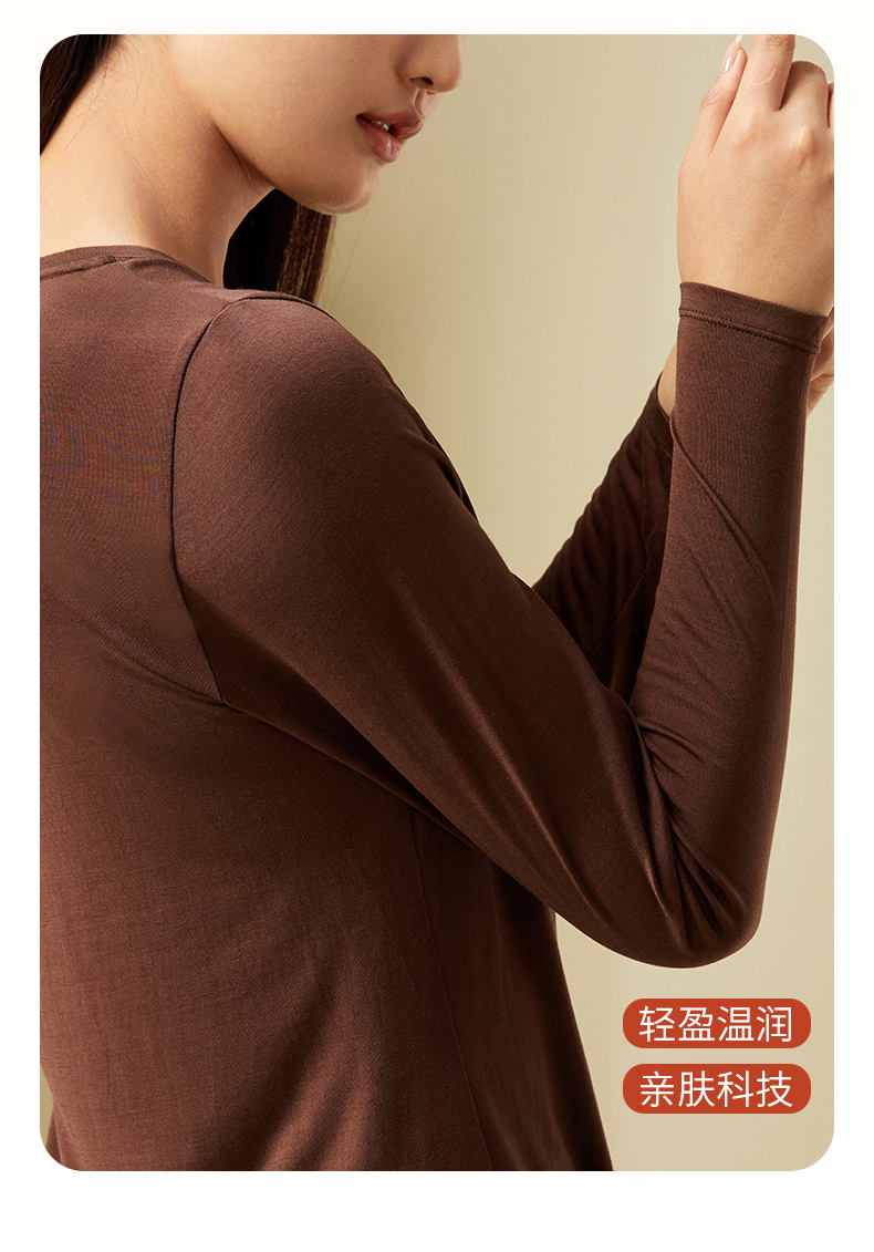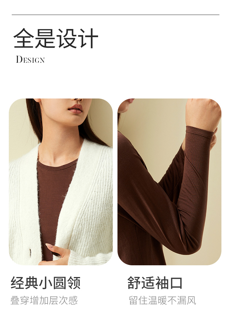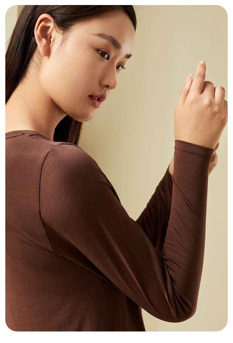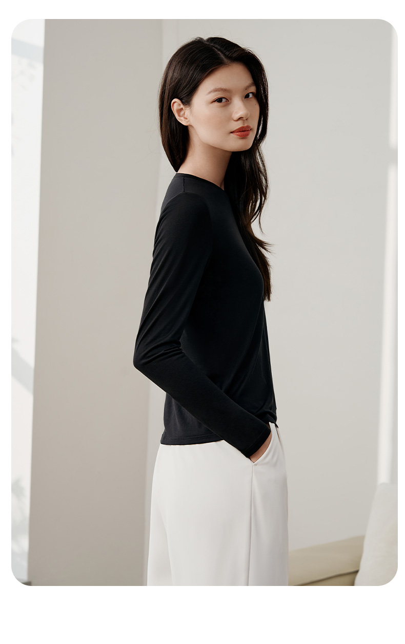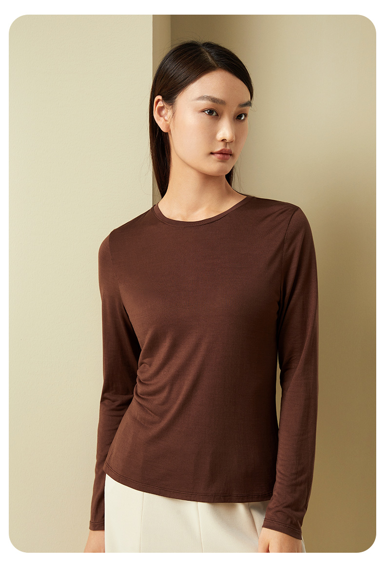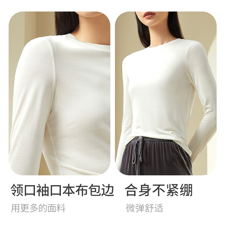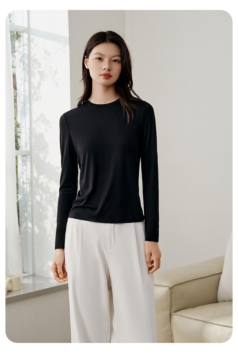 【面膜真丝肌肤衣】金三塔100%桑蚕丝长袖小圆领打底衫简约上衣女 NZFDC720(限价款)