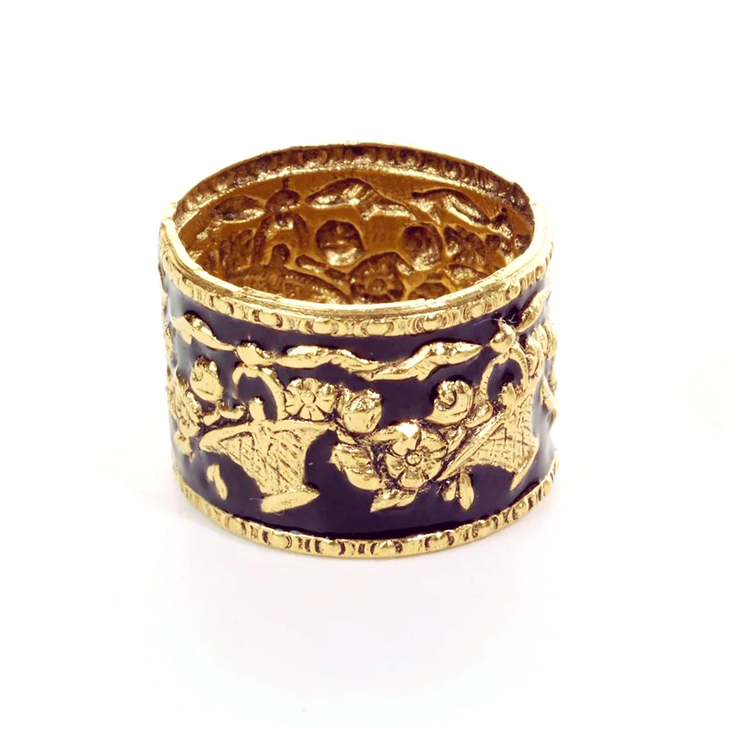 北京仓|Anna Rivka-BAGUE ANGELUS I-复古宫廷风 黑金竹篮 珐琅彩 戒指[法国设计师]