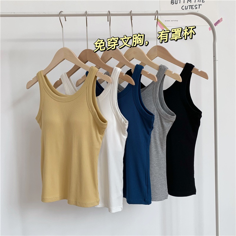 【买1送1】带胸垫螺纹磨毛背心 一体杯内搭打底 可外穿吊带