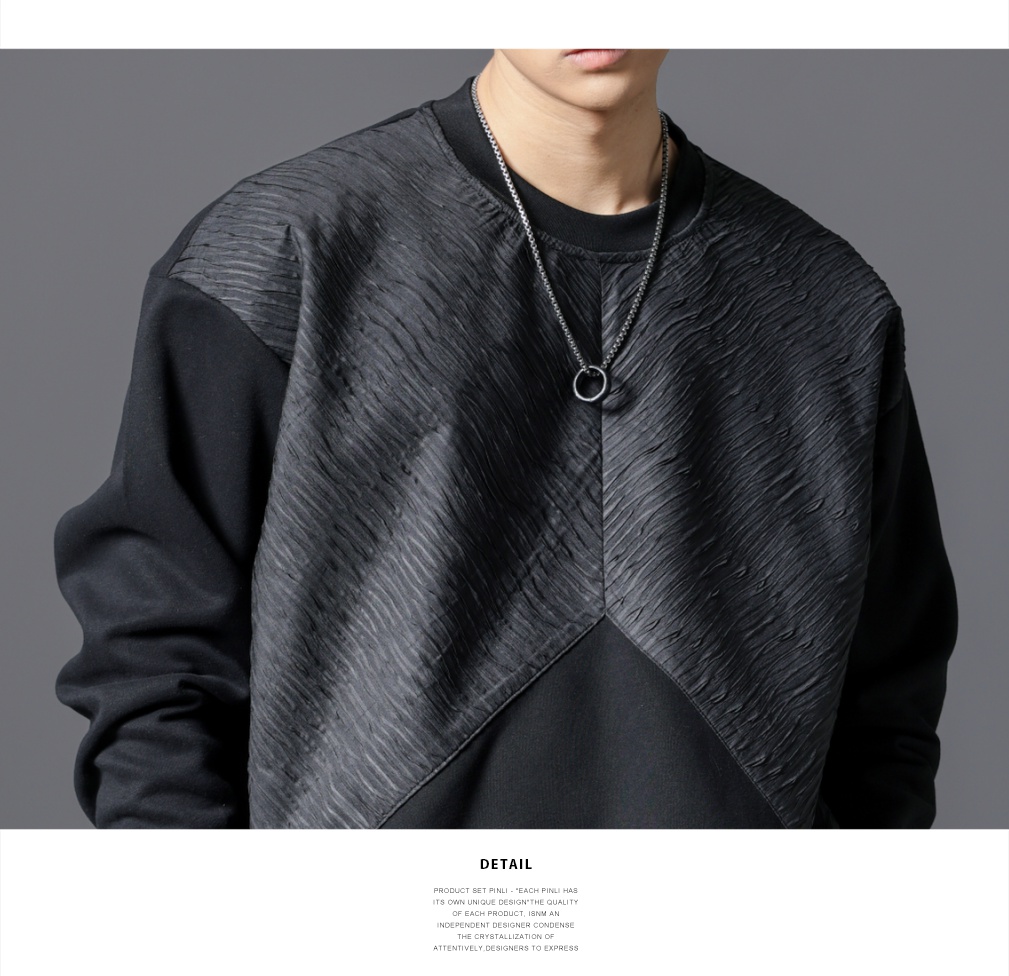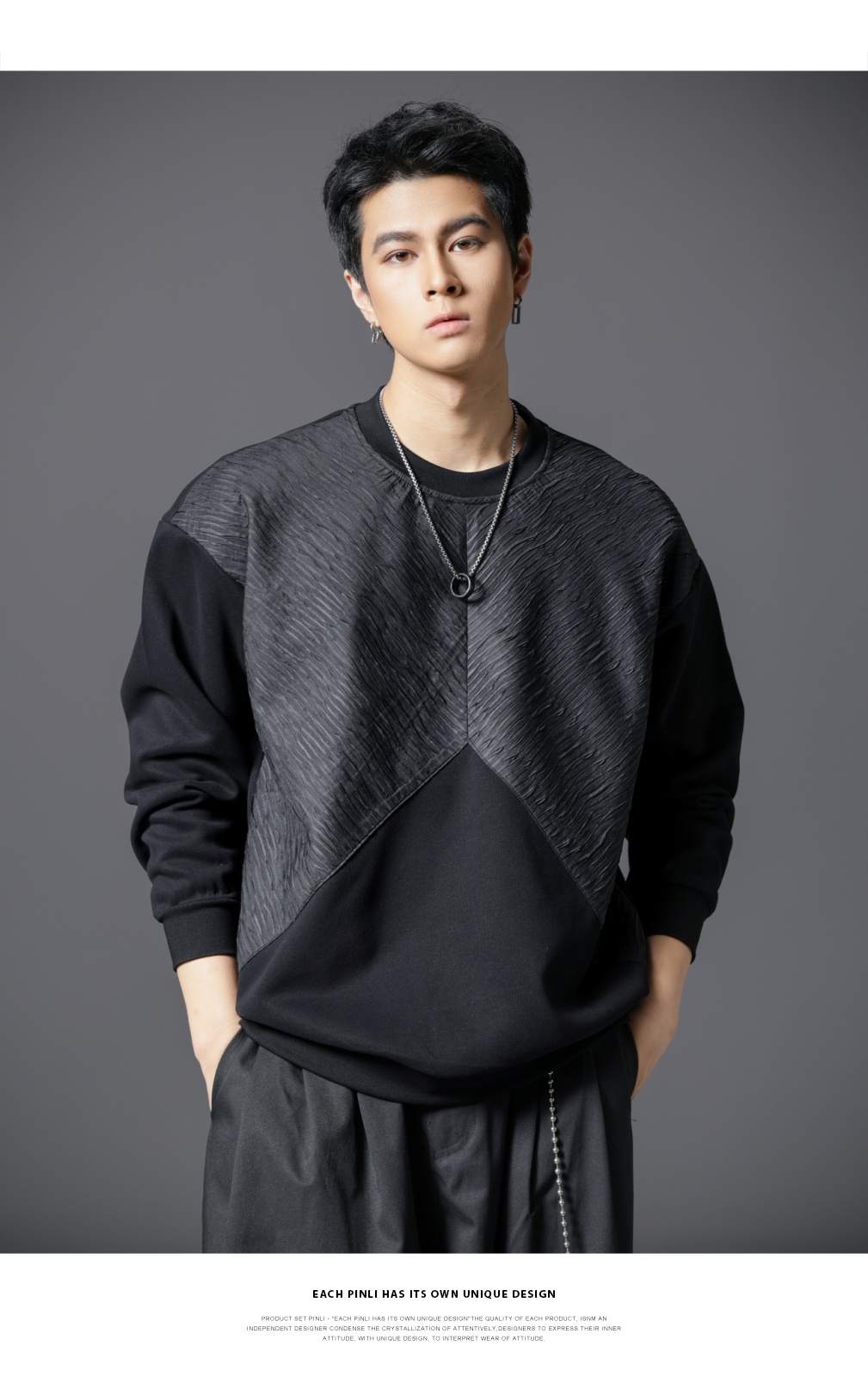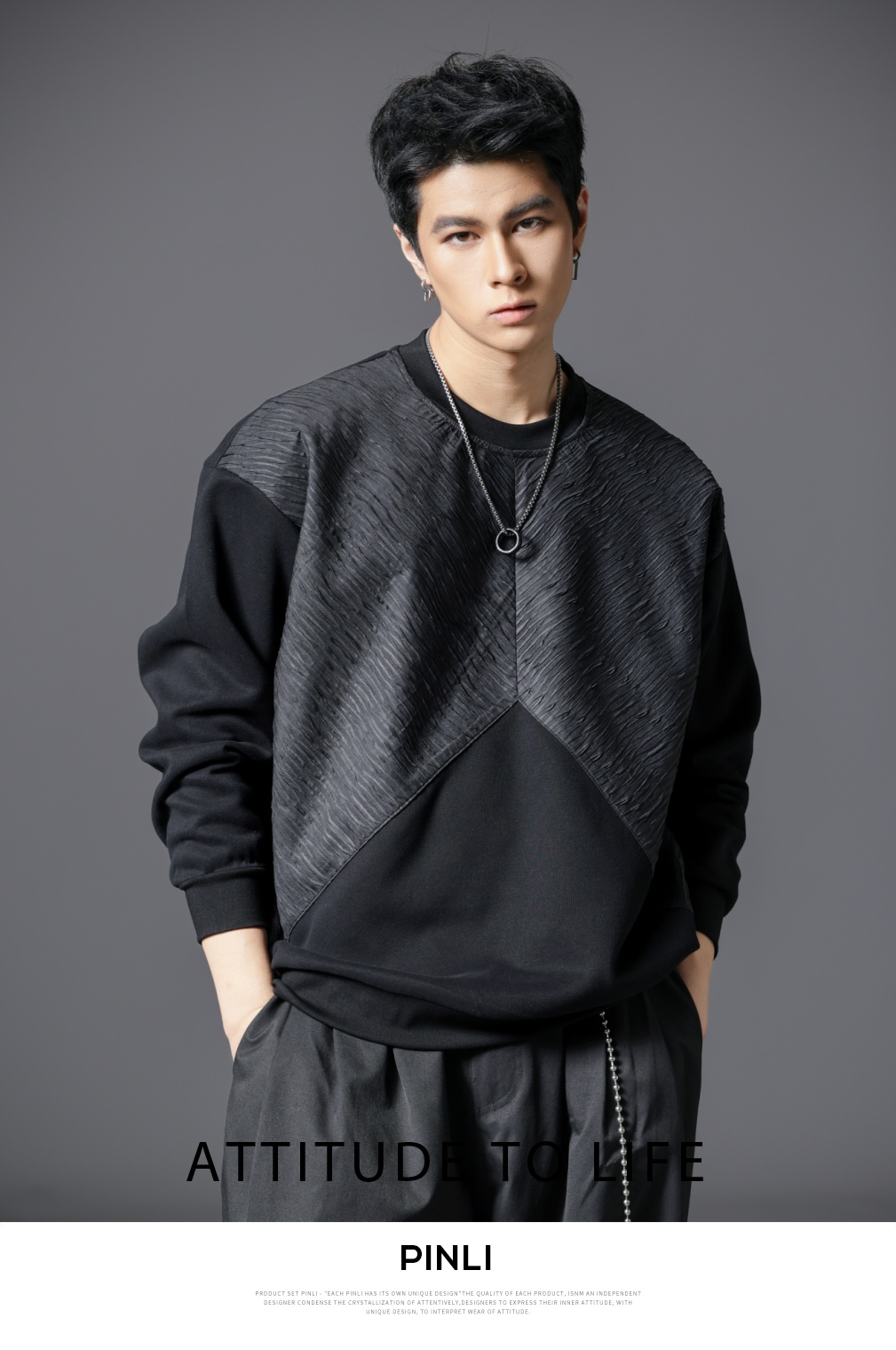 PINLI品立2025秋季新款宽松圆领拼料落肩套头卫衣青年上衣潮牌男B253109101