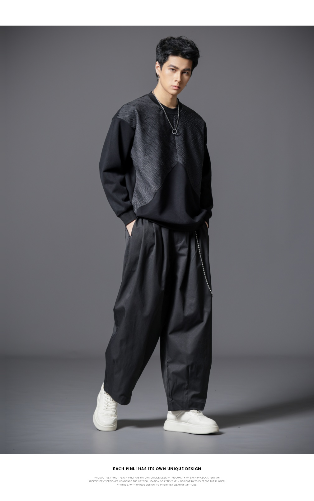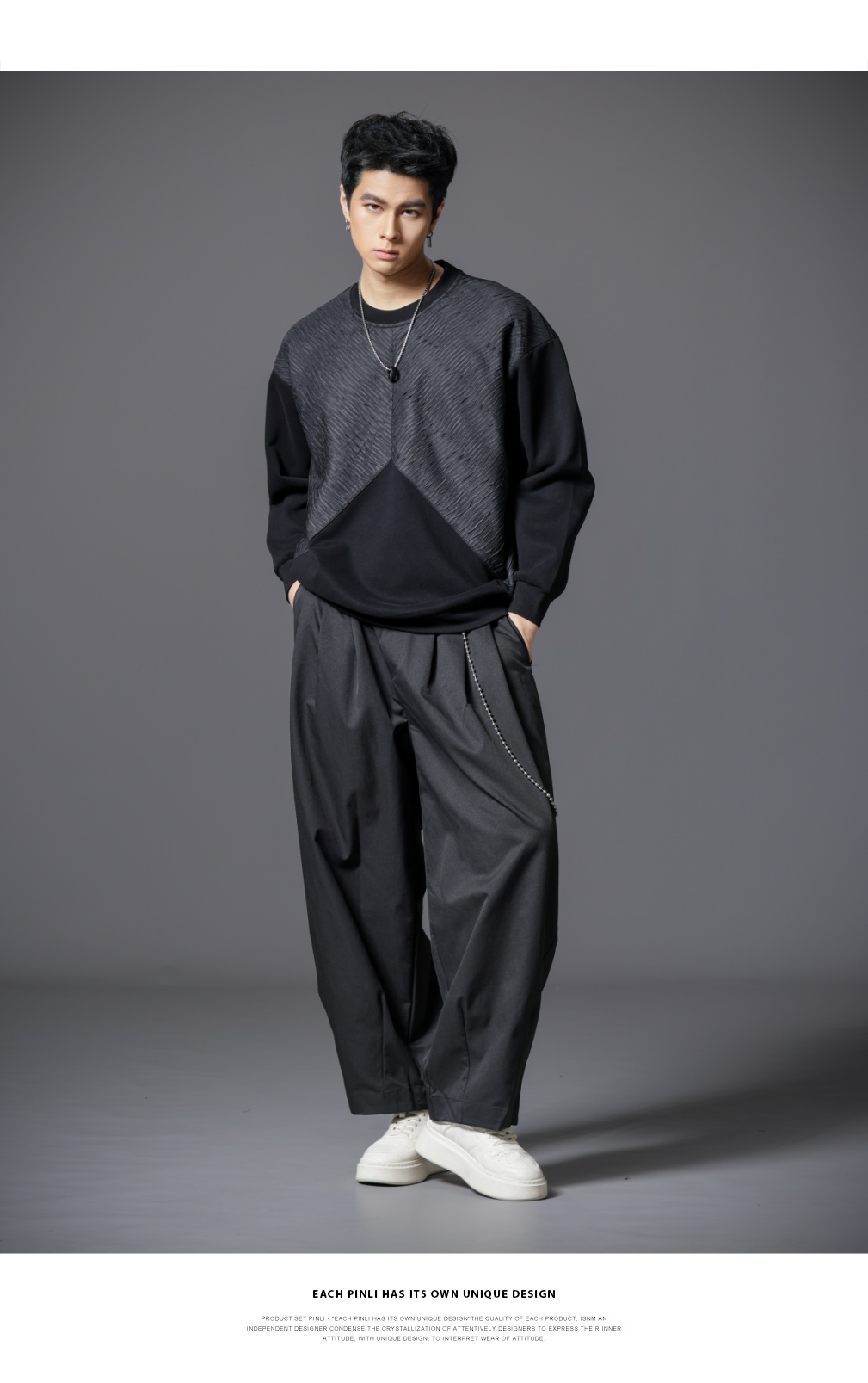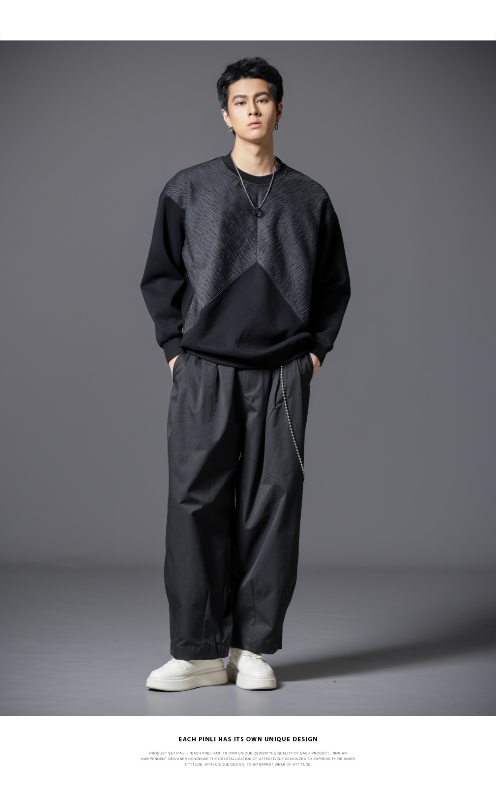 PINLI品立2025秋季新款宽松圆领拼料落肩套头卫衣青年上衣潮牌男B253109101
