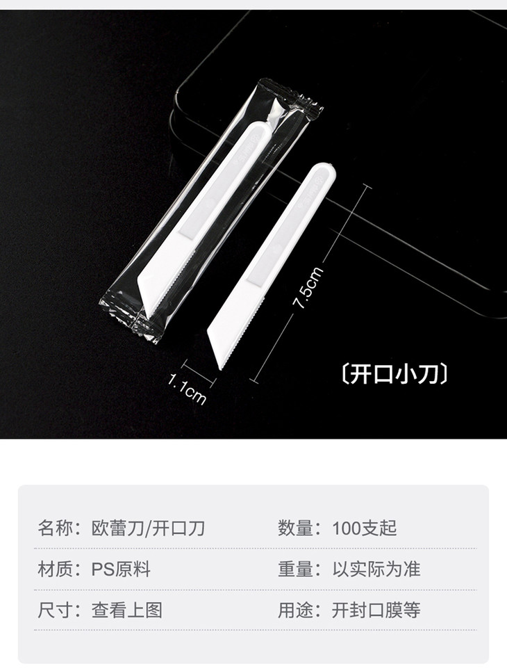 喇叭花一次性欧蕾刀开口小刀奶盖开口器玛琪朵小刀配塑料袋1000个