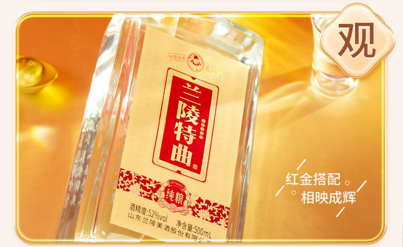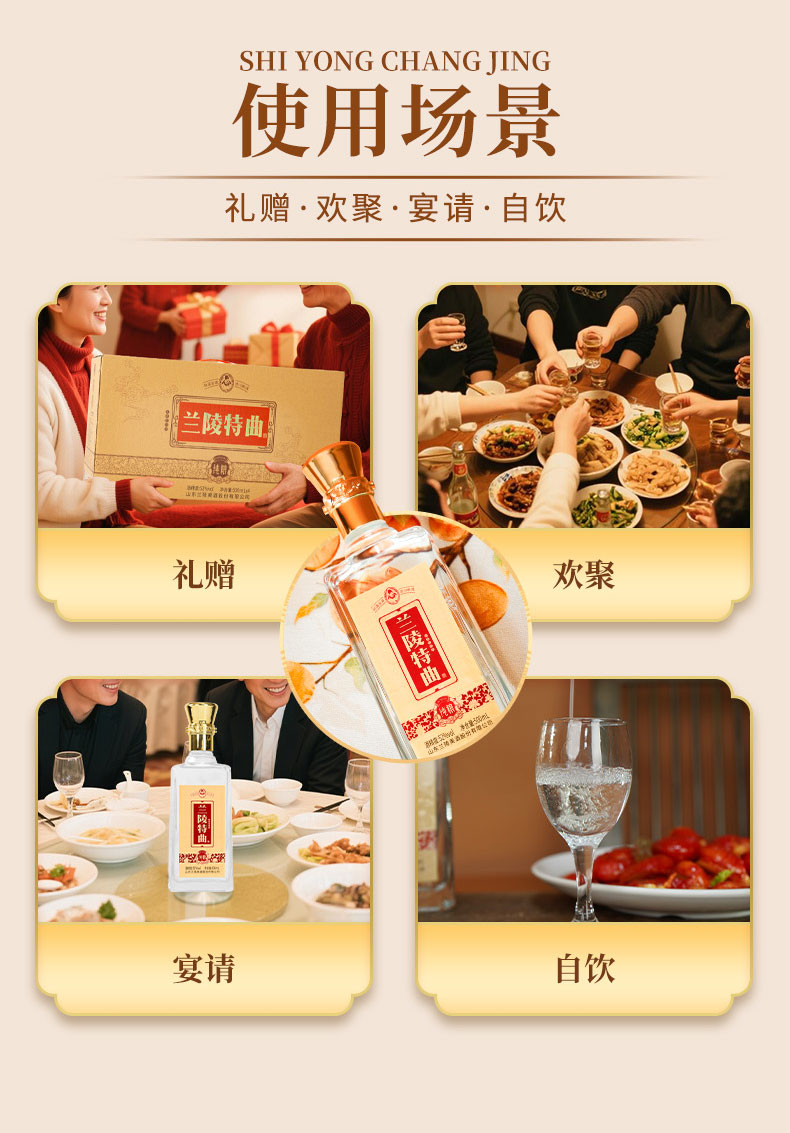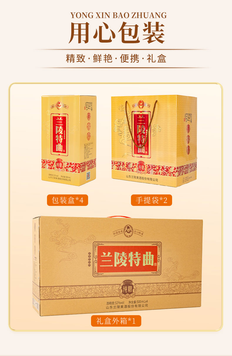 兰陵特曲礼盒 52度浓香型白酒500ml*4瓶整提礼盒装 纯粮酿造【限时送两瓶】