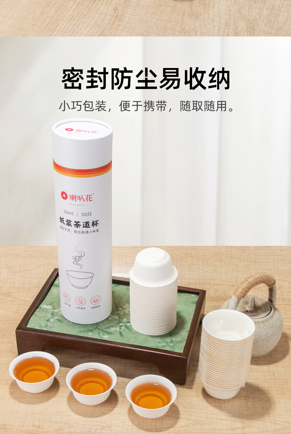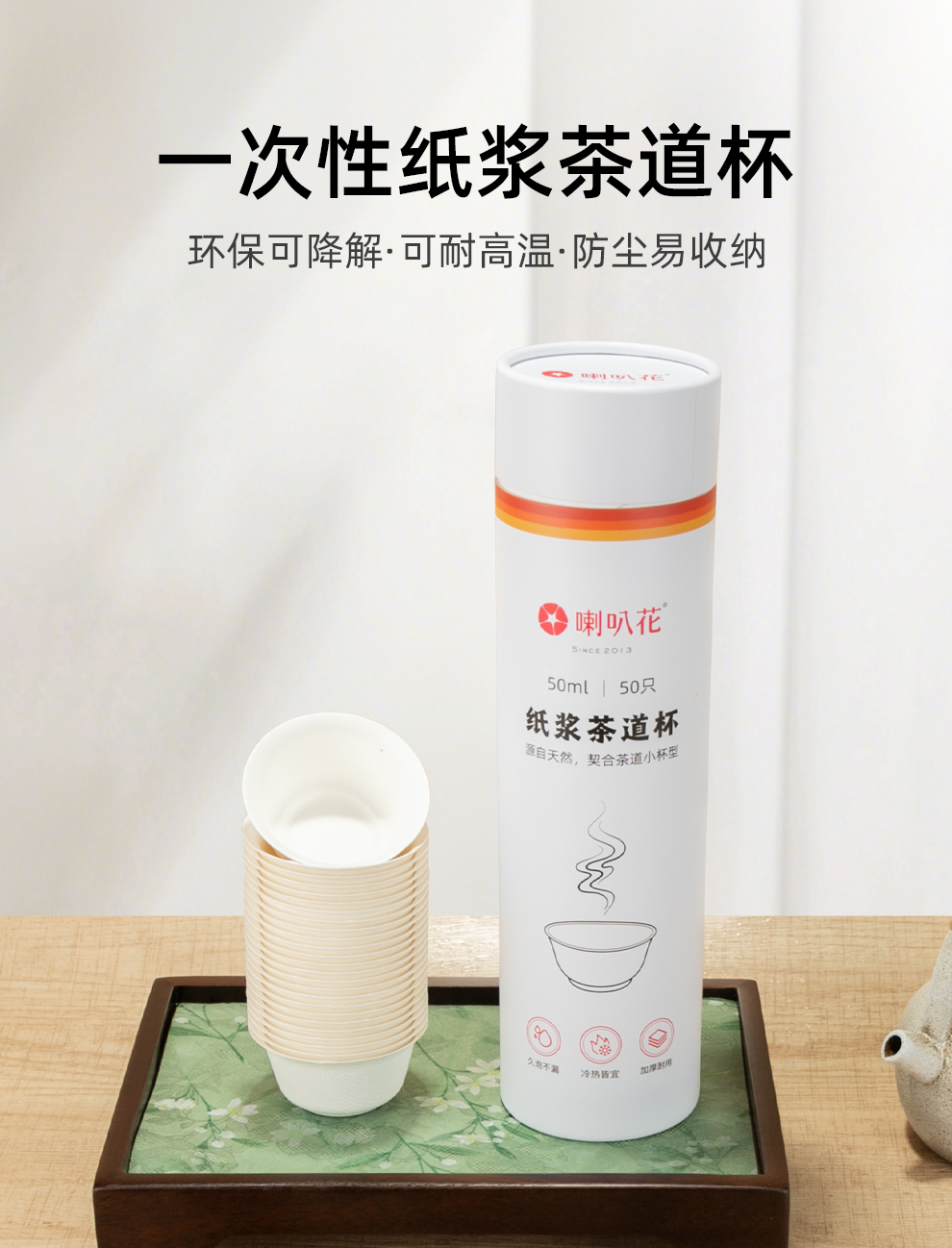 喇叭花50ml一次性茶道杯纸浆功夫茶杯小杯子试吃试喝杯环保可降解