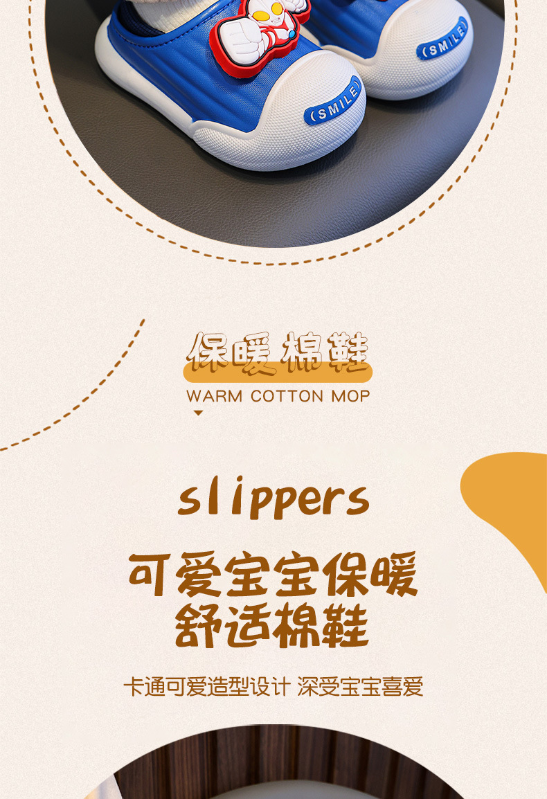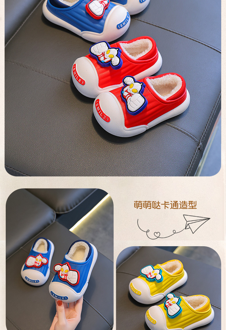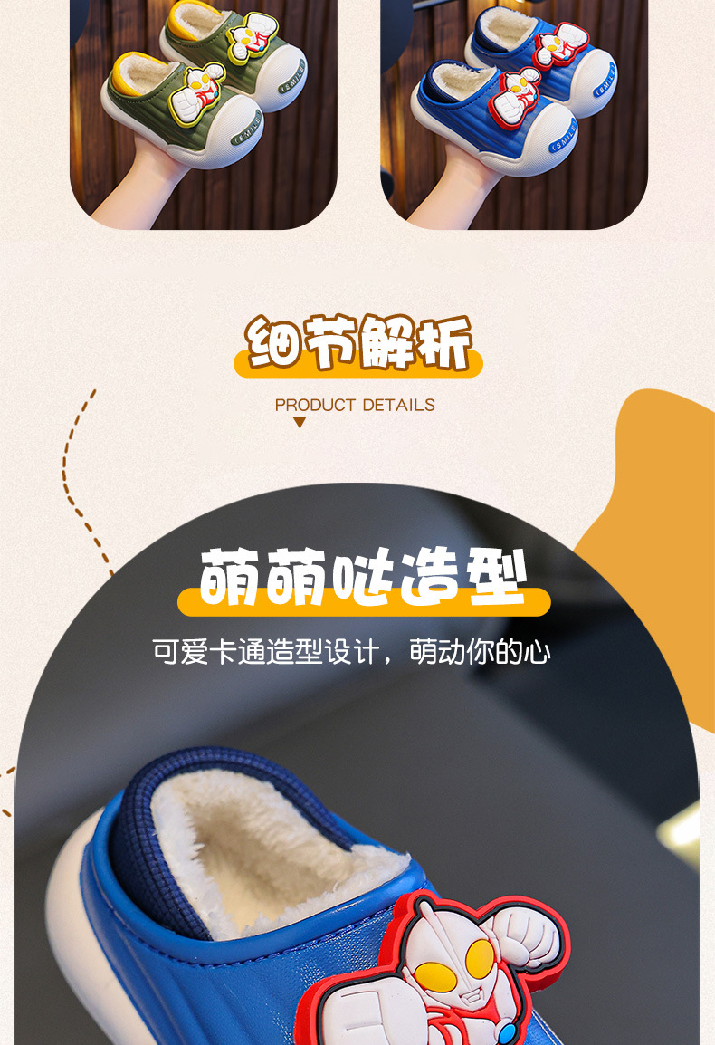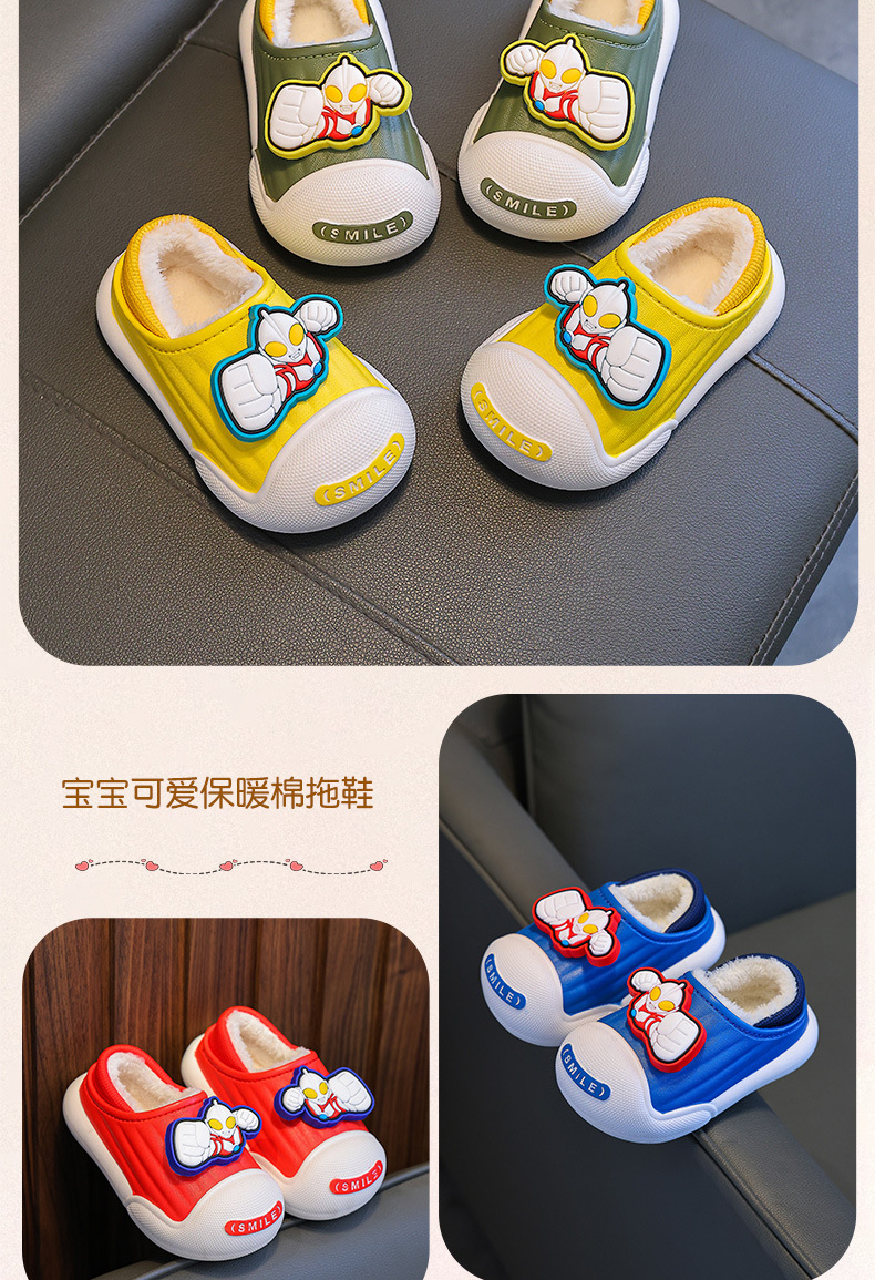 【奥特曼儿童保暖棉拖鞋】秋冬季保暖加绒棉套防水大中小童亲子小孩棉鞋