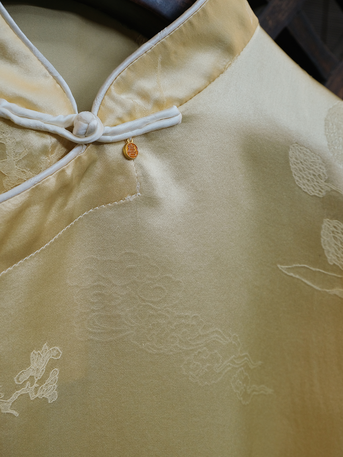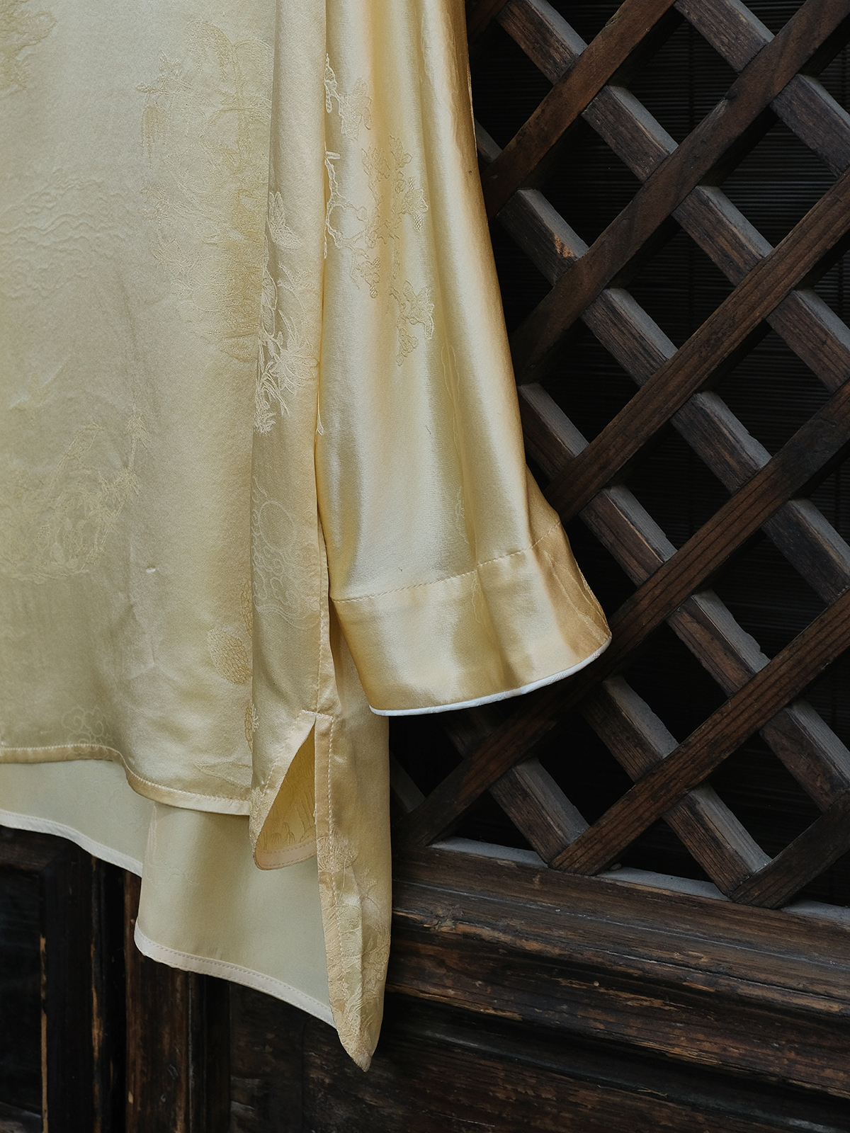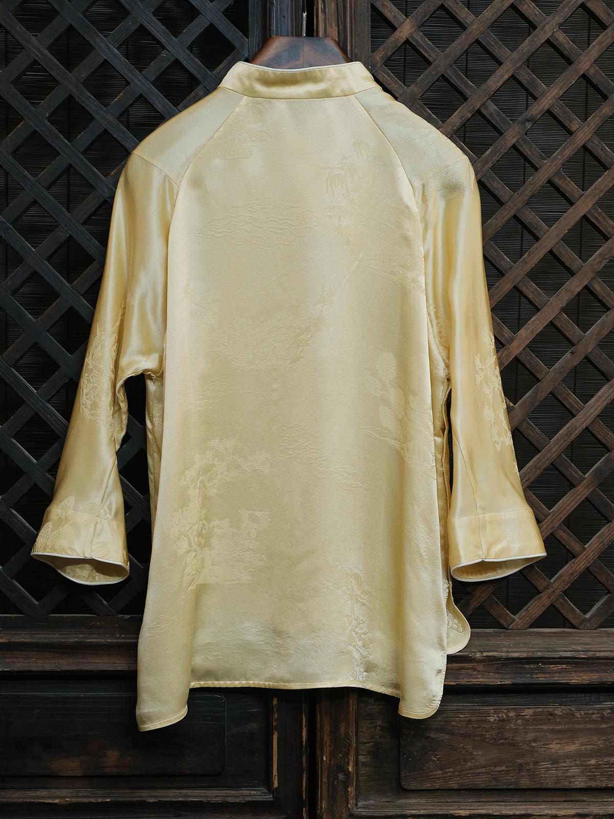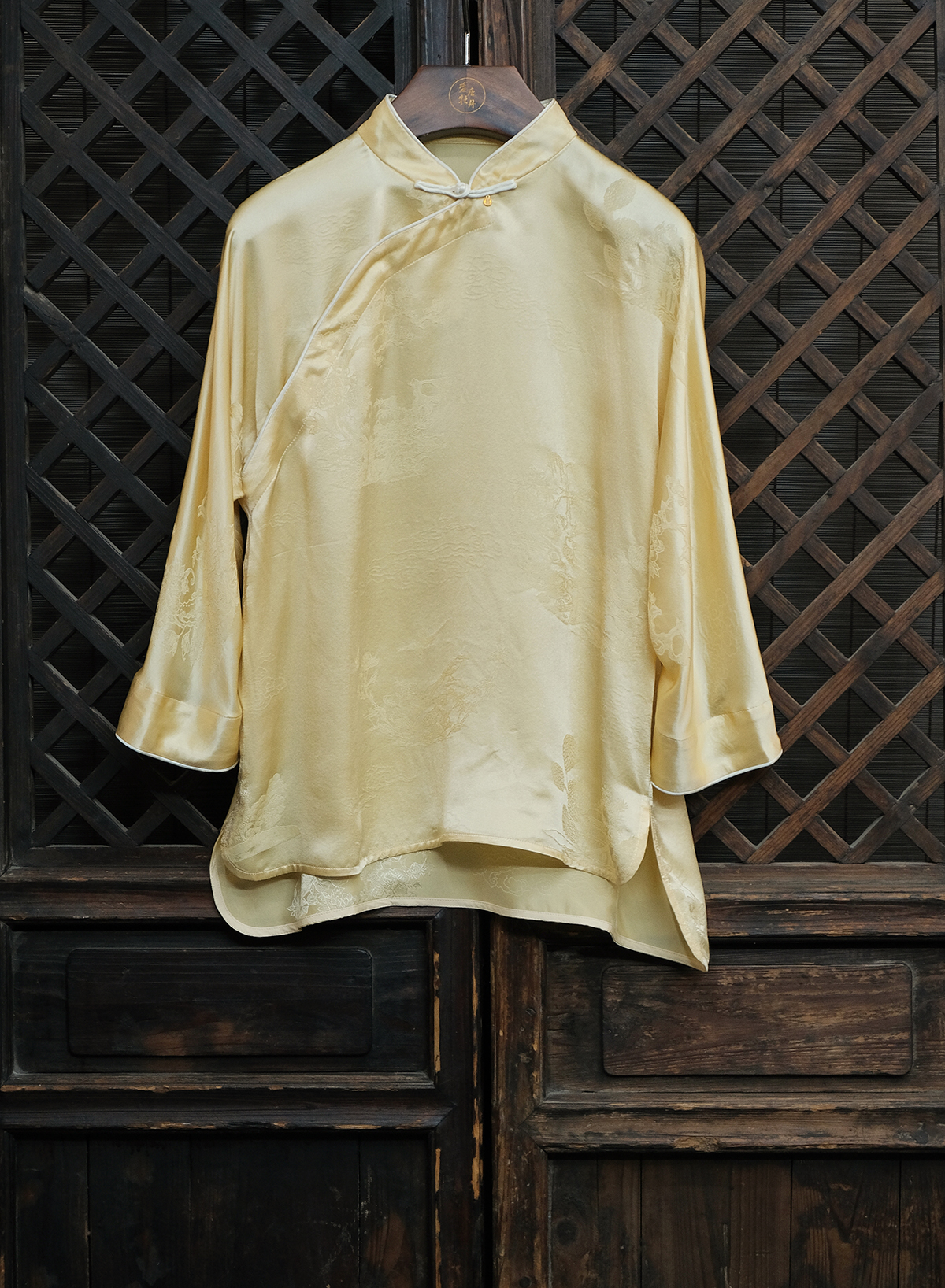 盛唐牡丹| 珍珠白真丝竹子纹偏襟上衣