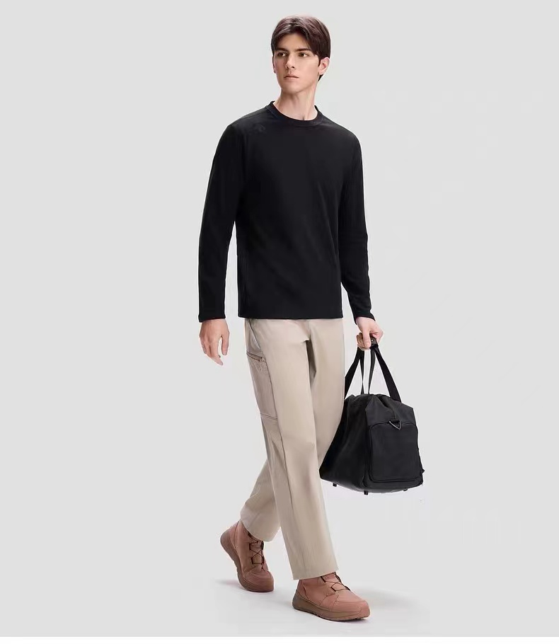 新品多色户外休闲速干运动德绒微拉绒圆领男女同款长袖T恤定制专业运动面料,高密度锦纶+高弹力氨纶,内里微拉绒,更亲肤柔软,面料质感轻盈弹力,并具有专业吸湿排汗性能。 ACTIVE人体工程学运动剪裁,多处拼接勾勒出品牌独有的设计美感的同时,运动剪裁带来的舒适性以及关节的灵活性是别的产品给不到的体验!更贴合人体运动科学,同时更费料,损耗更大 肩部立体品牌logo刺绣,细节质感拉满,简约不挑人穿,谁穿谁好看。 穿上它运动后能快速吸收体表汗液,减少汗湿黏腻 ,肩袖式立体裁剪工艺,提升活动性及运动感 , 弹力又是可圈可点,柔软舒适回弹性满分!上身cj无敌棒!没有束缚感,轻松自在!上身逼格腔调再次提升一个档次! 薄厚适中,初秋单穿很有型,过渡到深冬可作内搭,简约好穿不挑人,非常实用
