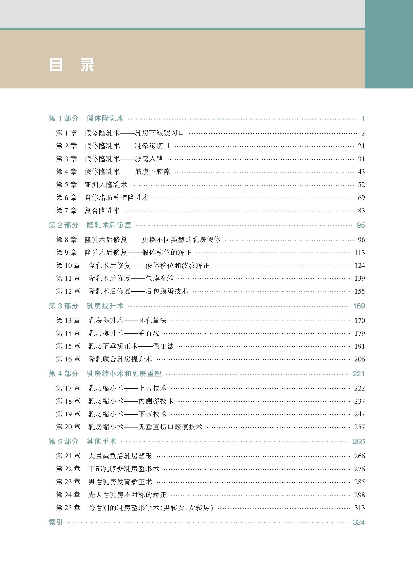 《现代乳房美容外科图谱》是一本专注于乳房美容手术技术的专业书籍,内容涵盖乳房美容手术的各个方面。全书共25章,包括假体隆乳术、隆乳术后修复、乳房提升术、乳房缩小术和乳房重塑及其他手术5个部分。重点讨论乳房美容手术的术前评估、适应证和禁忌证、手术方法、术后护理、并发症处理及二次手术等内容。旨在通过详细的图文描述和案例分析,为整形美容外科医生及相关医疗人员提供全面、实用的技术指导和参考。