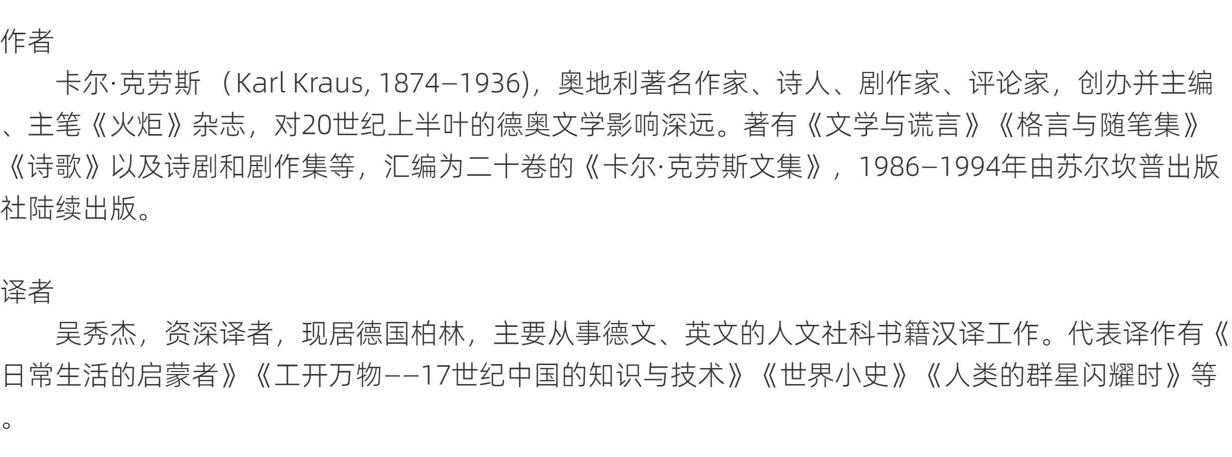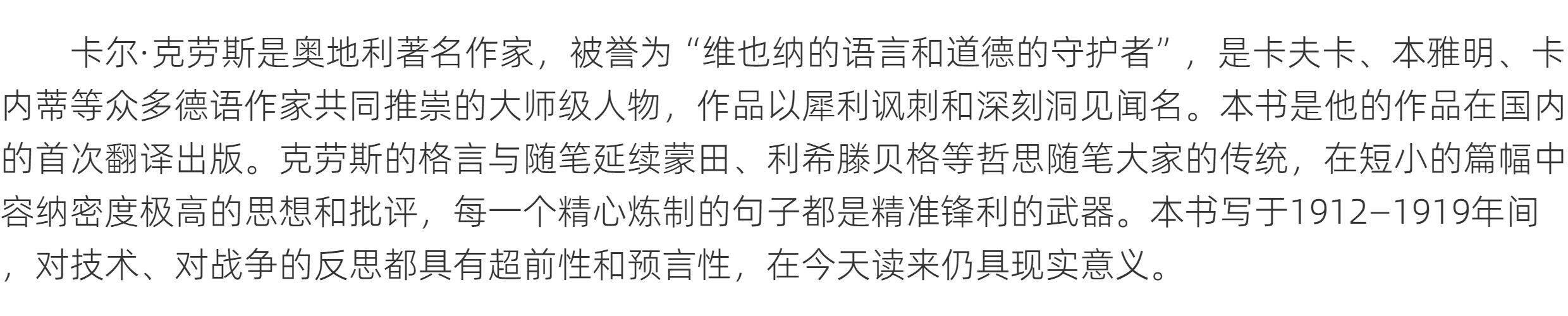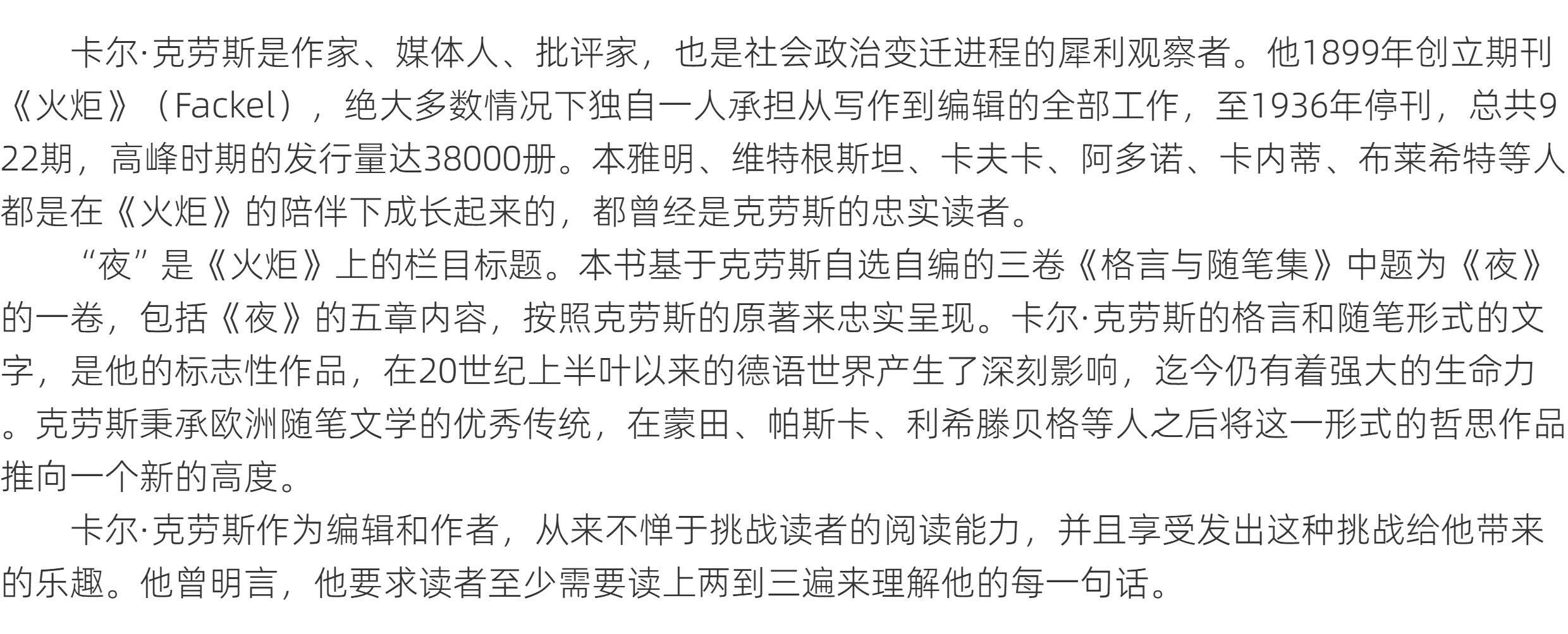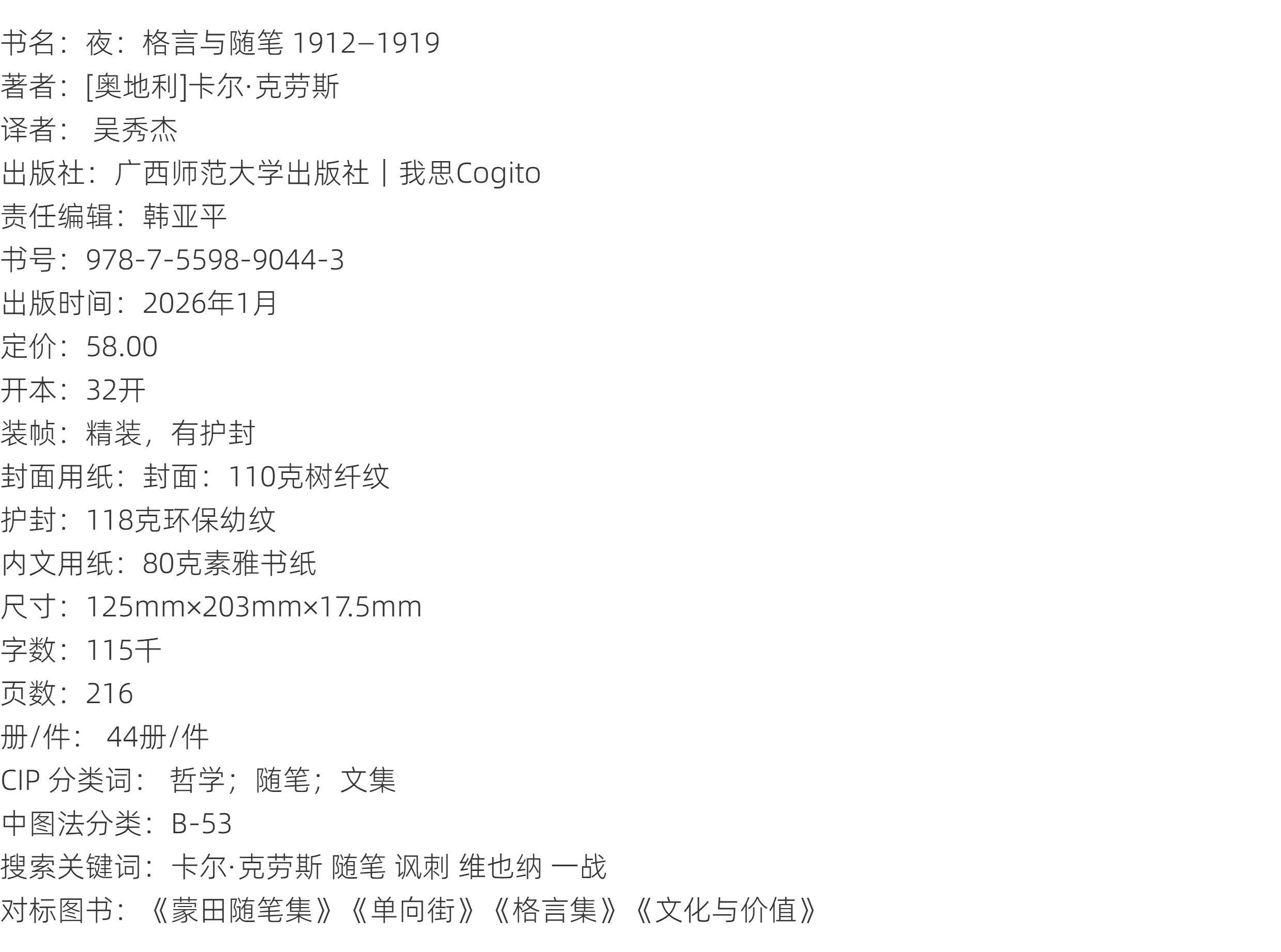 夜:格言与随笔 1912—1919 [奥地利]卡尔·克劳斯/著 吴秀杰/译 北贝 讽刺 维也纳 一战