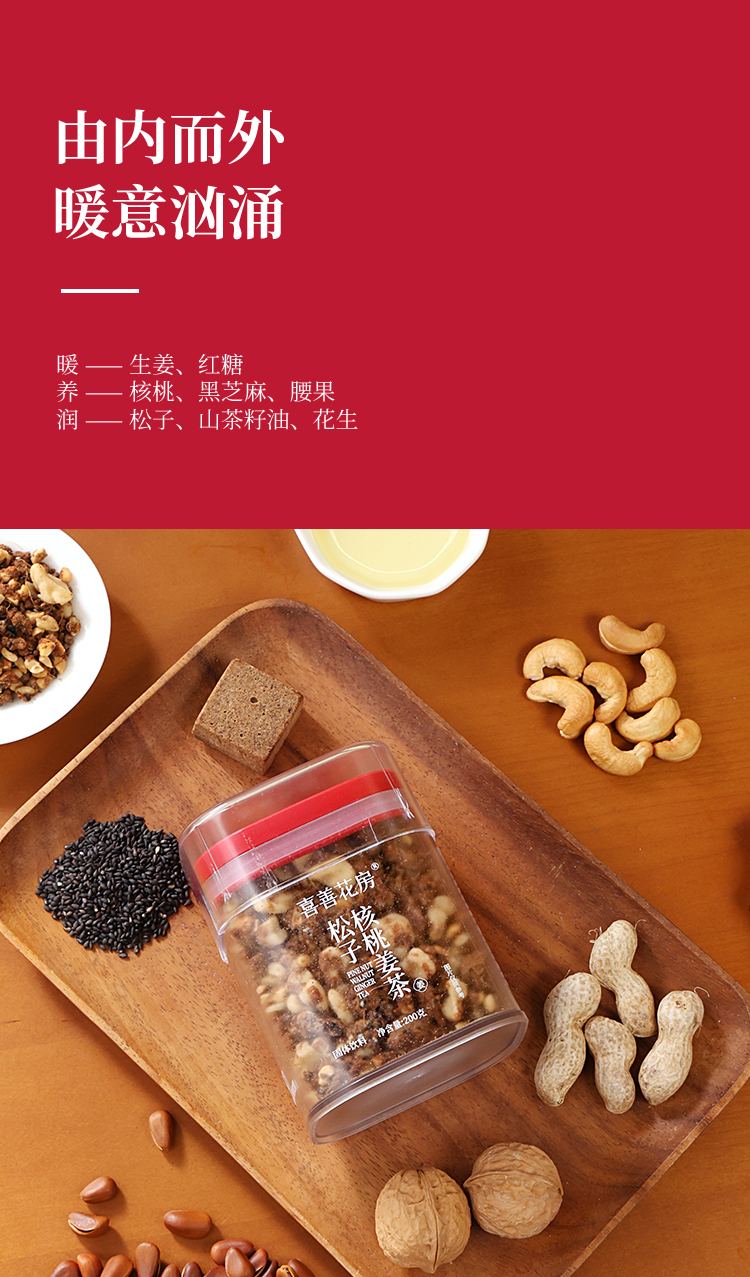 【肖老师推荐】喜善花房 松子核桃姜茶 滋补 暖宫 养生 无添加剂 煮泡牛奶 泡茶 直接吃均可