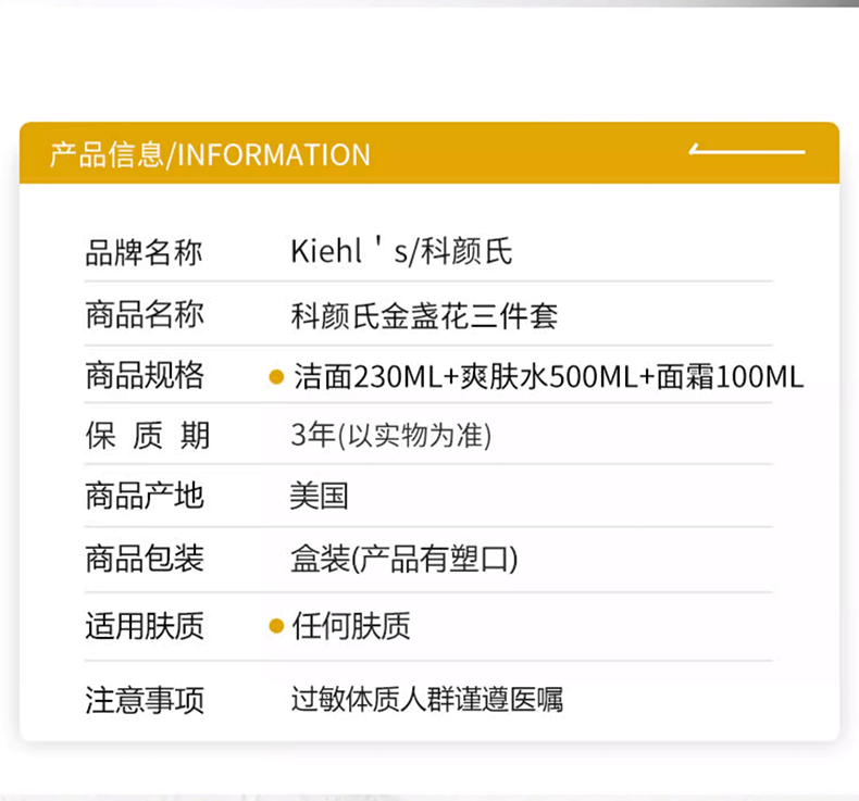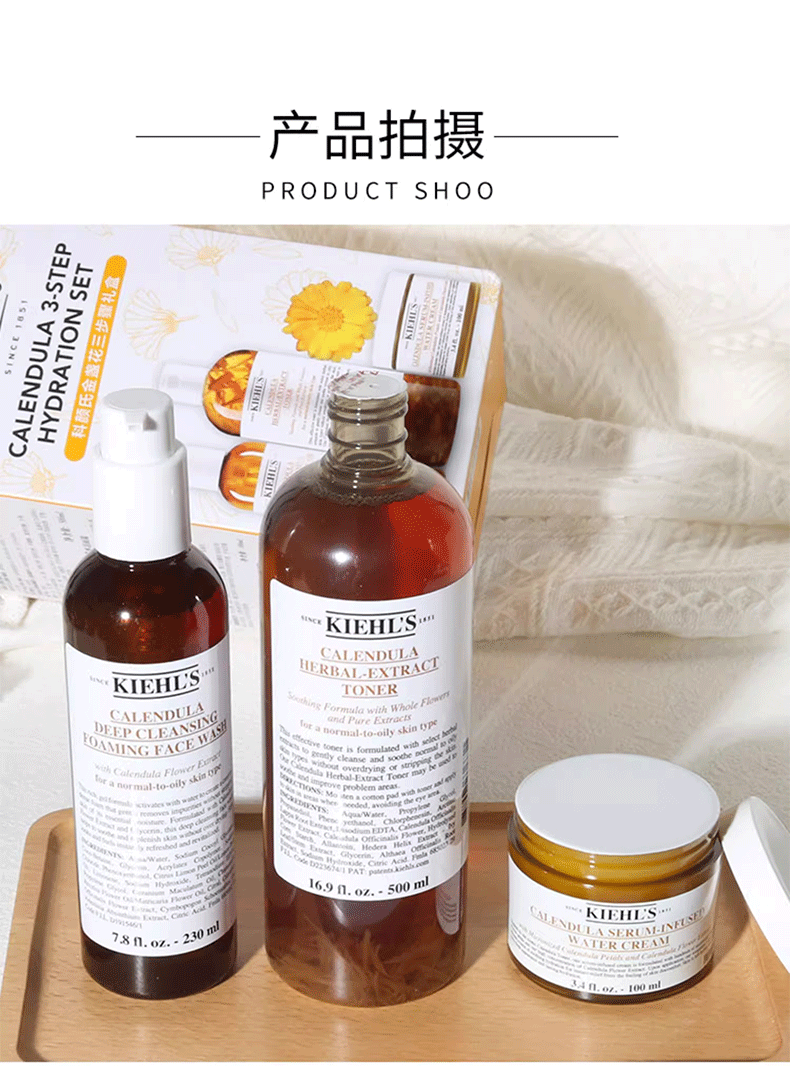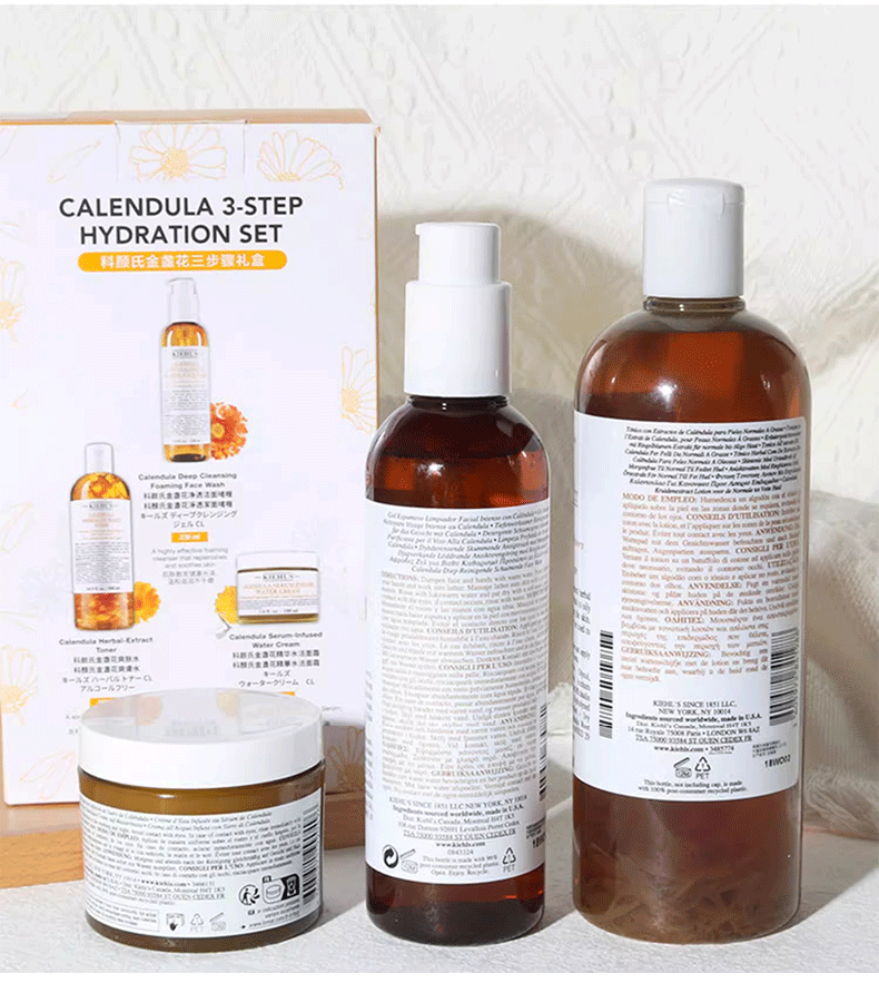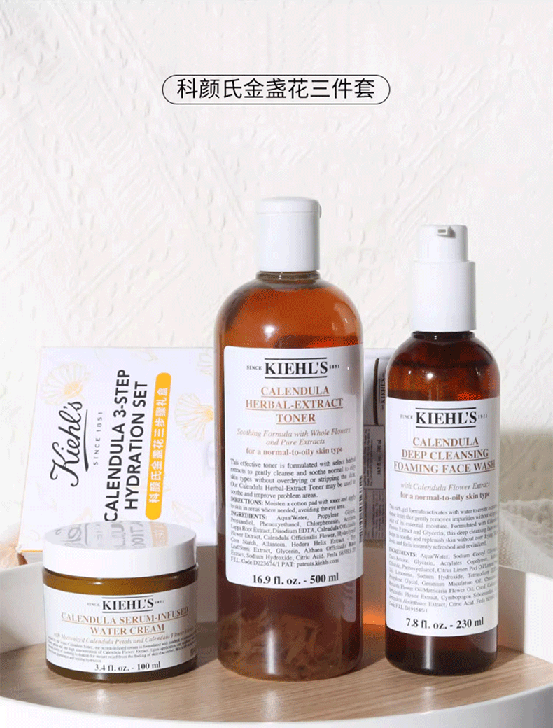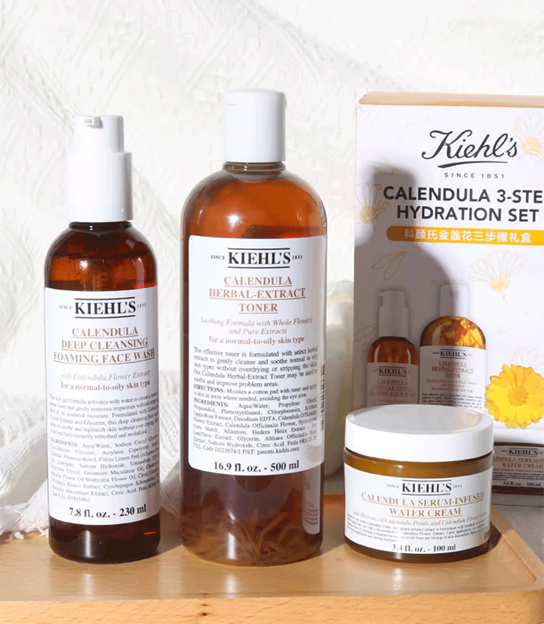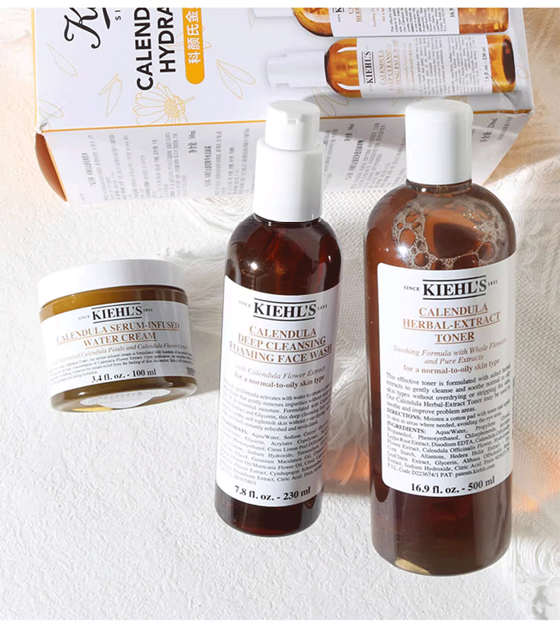 【金盏花三步骤礼盒】Kiehl's/科颜氏金盏花三件套盒面霜100ml+洁面230ml+爽肤水500ml 香港直邮C