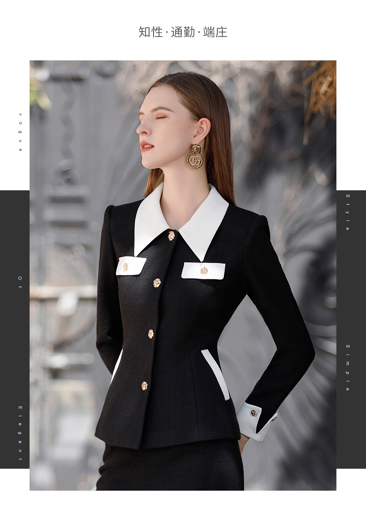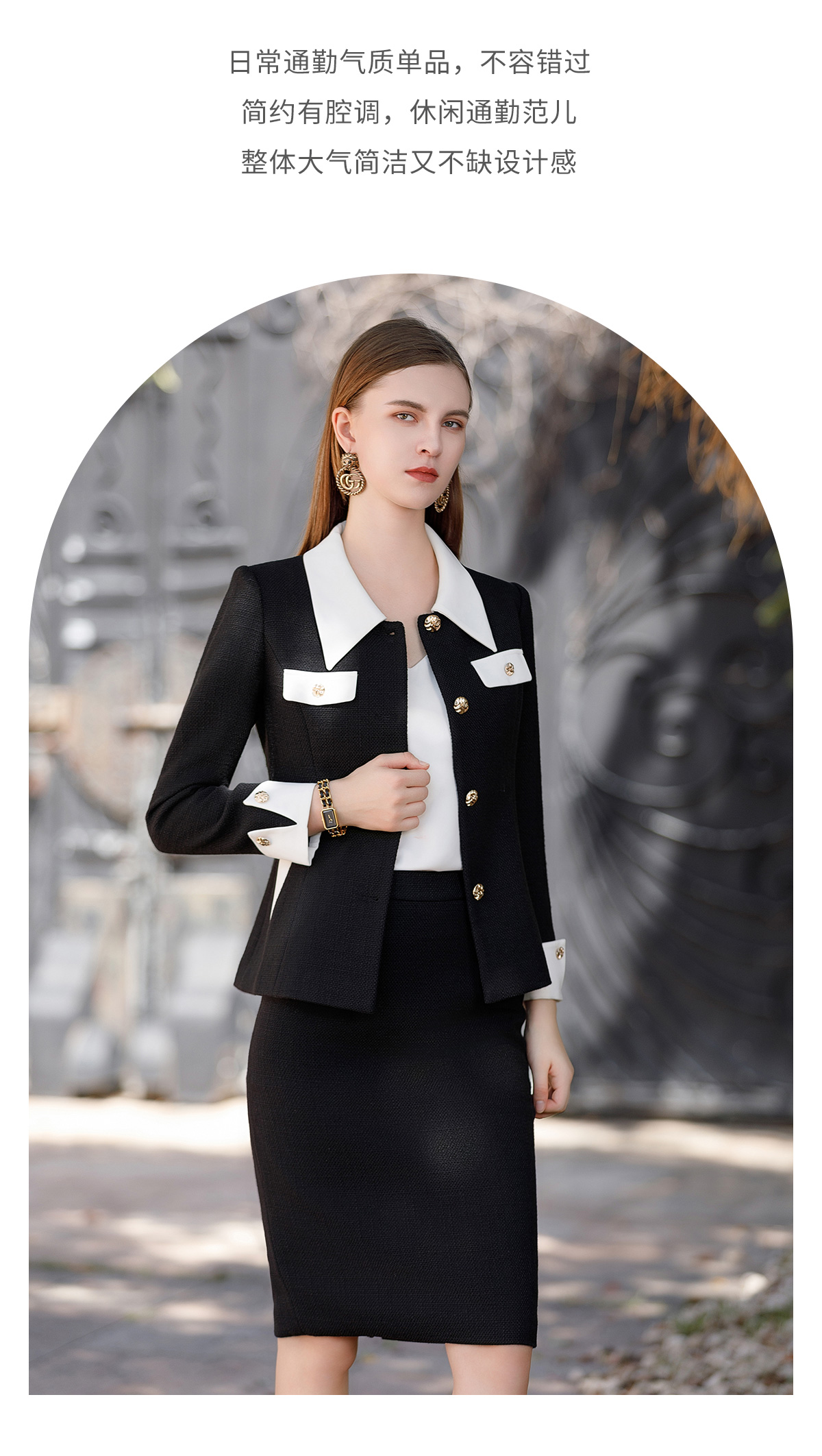 AD秋冬新款翻领拼接粗花呢外套小香风气质女士毛呢套装名媛正装