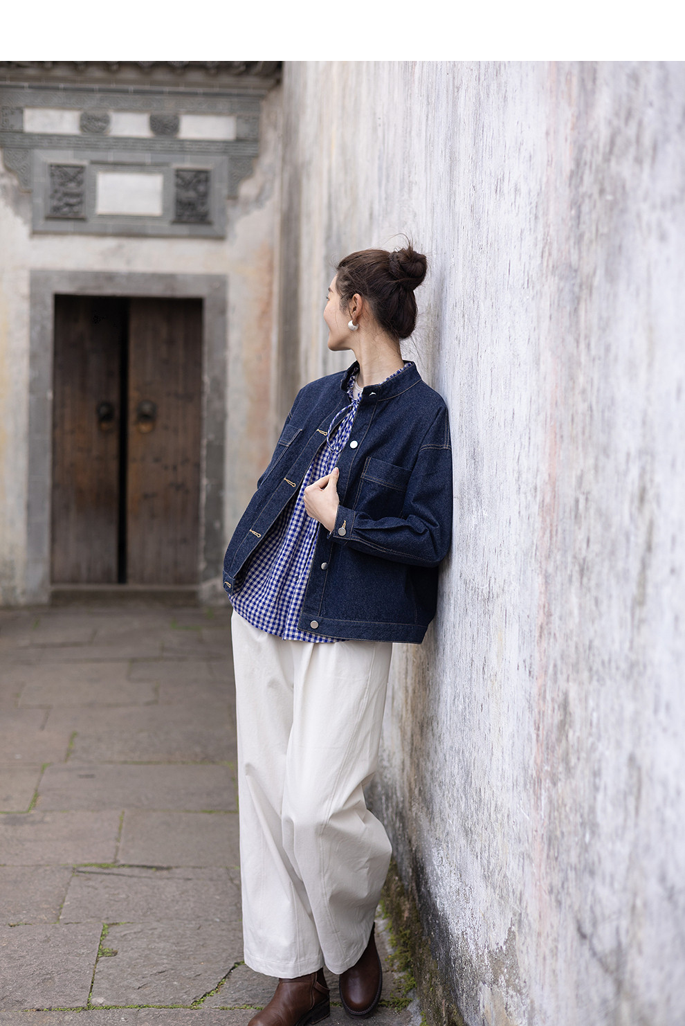 绽放065朵/ 春野牛仔短外套·纯棉色织牛仔夹克2026新款休闲外套
