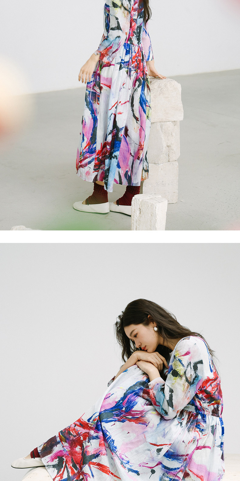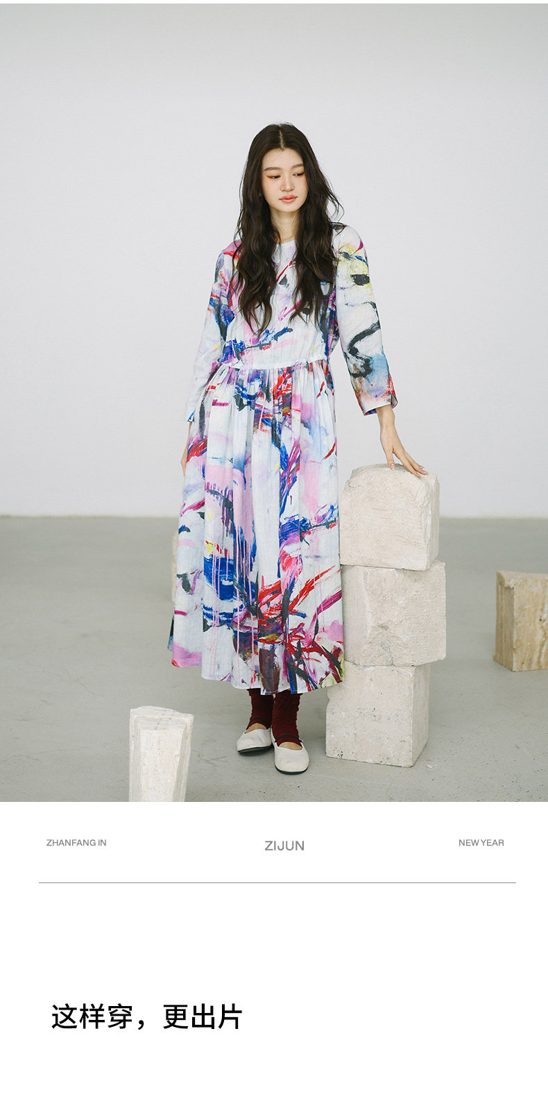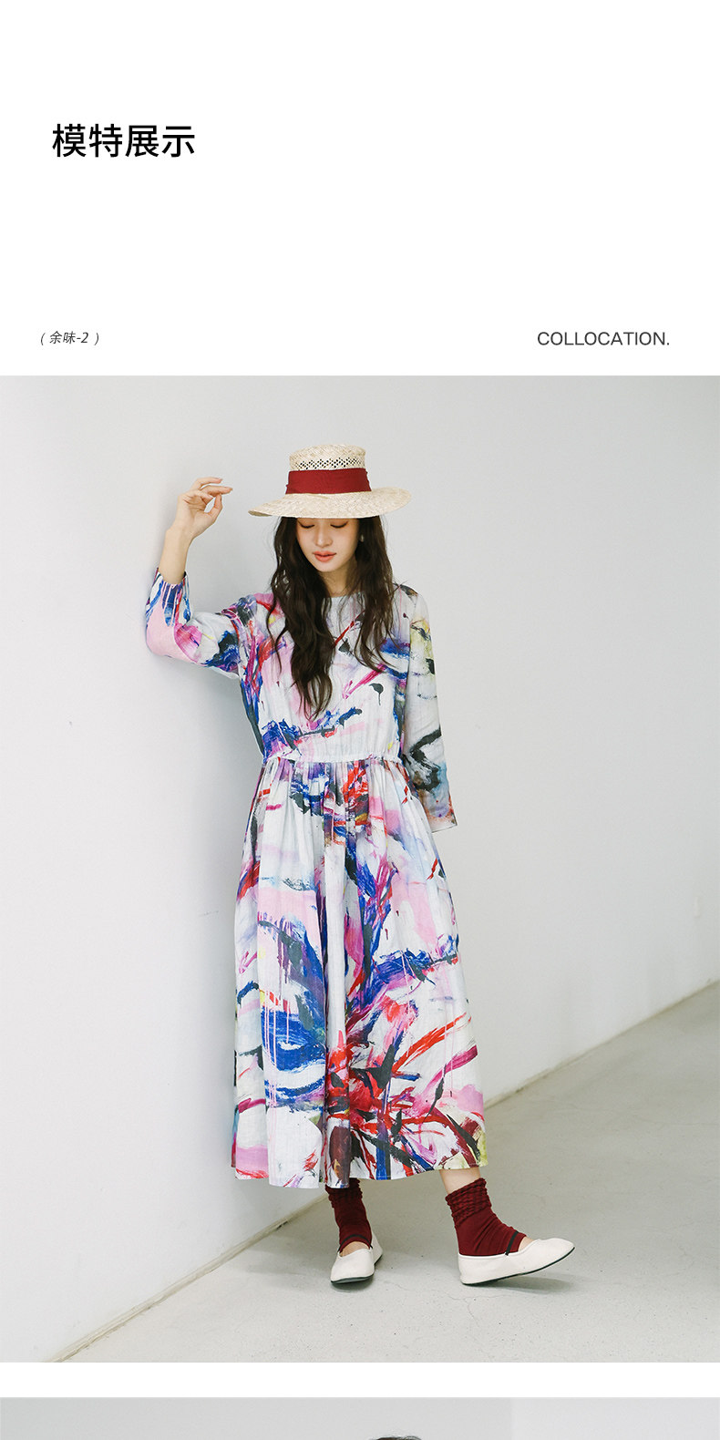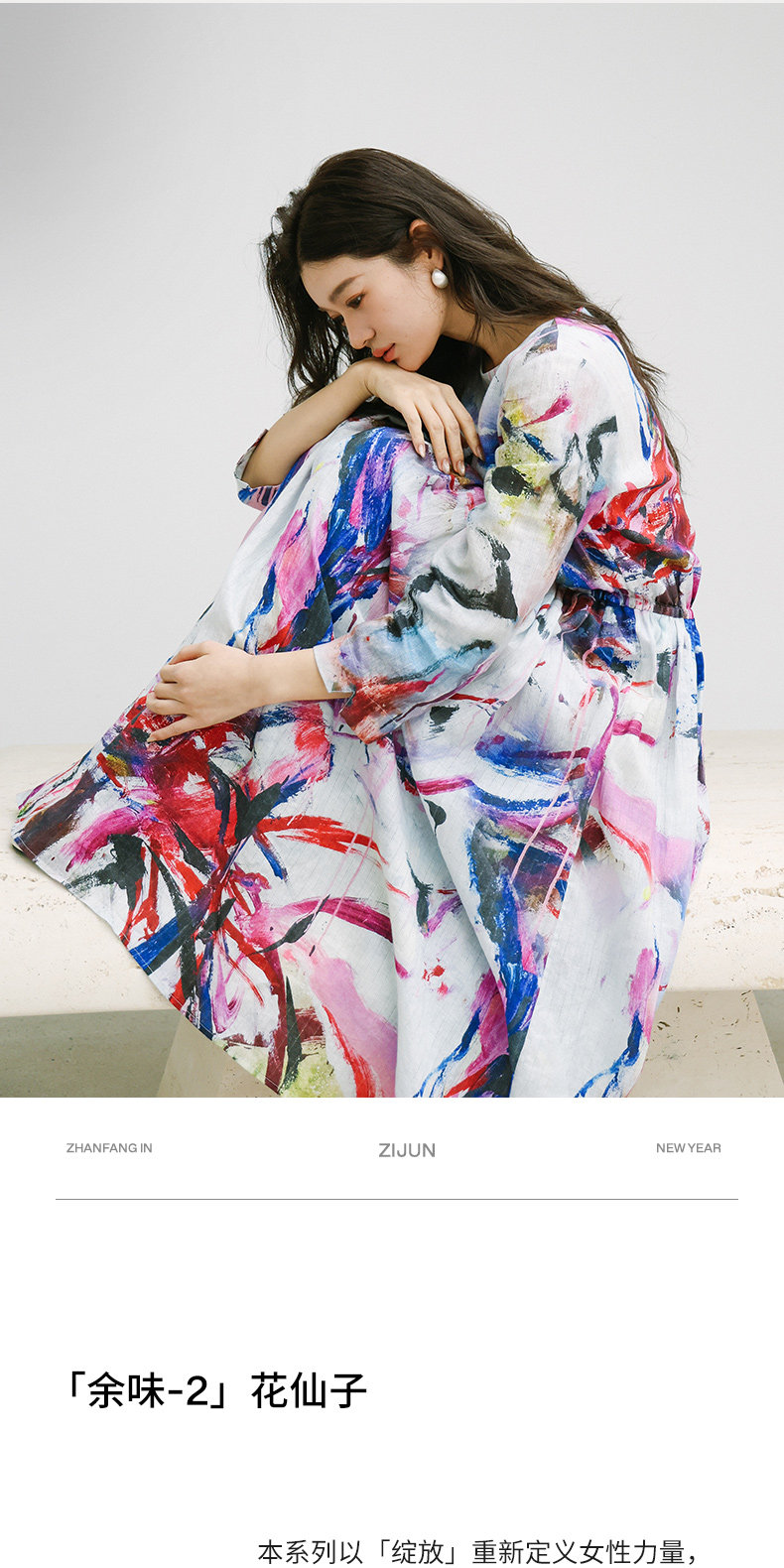 绽放172朵/「余味-2」花仙子*zijun联名系列亚麻印花松紧腰连衣裙