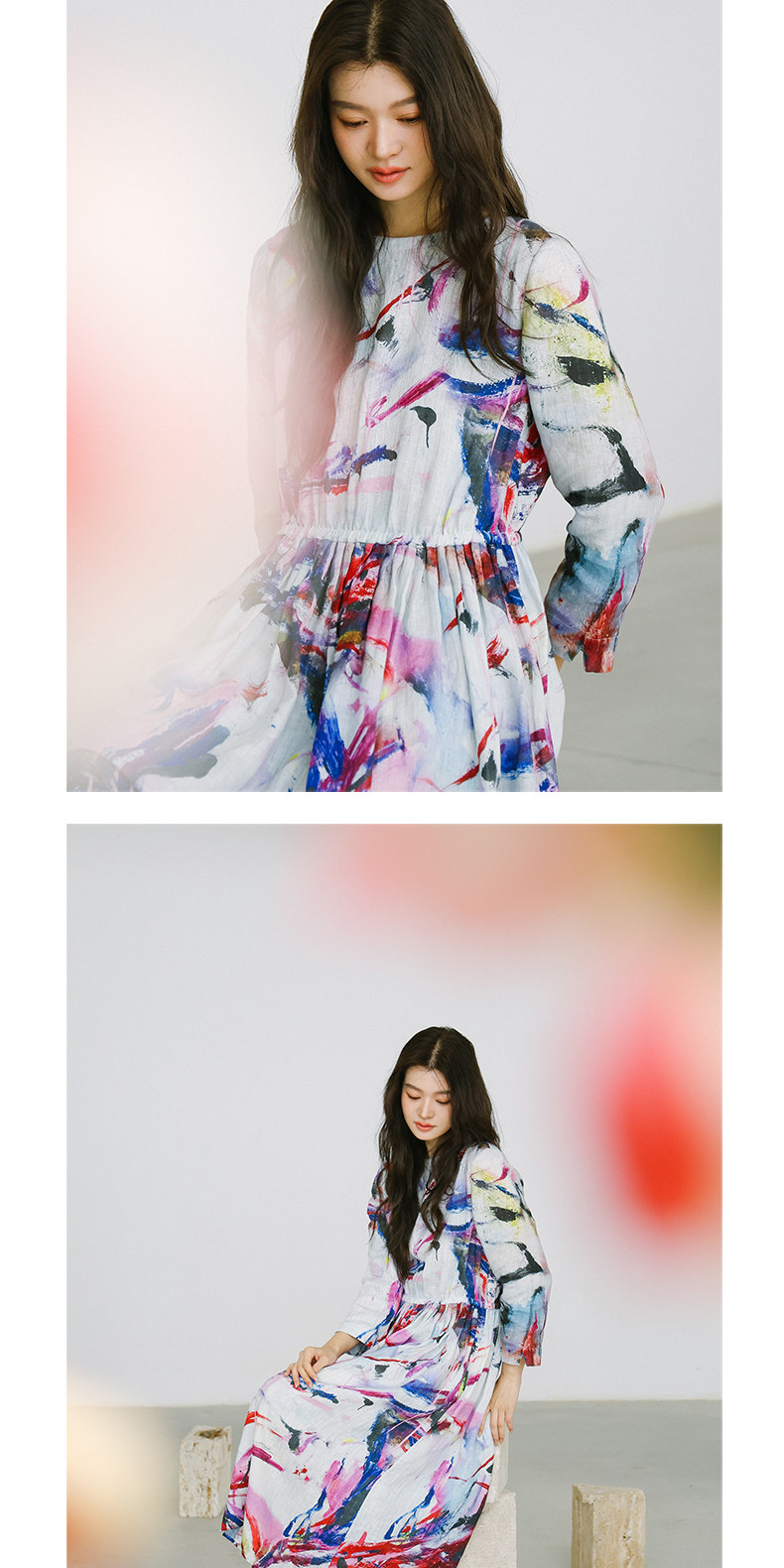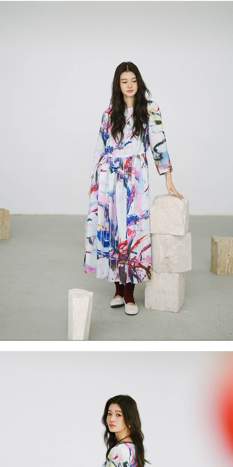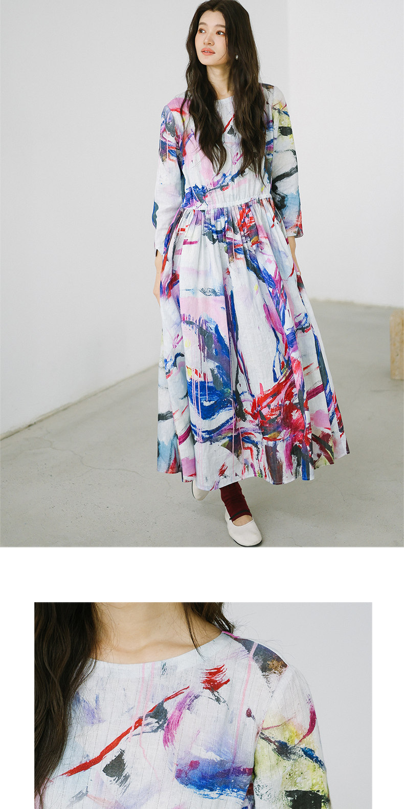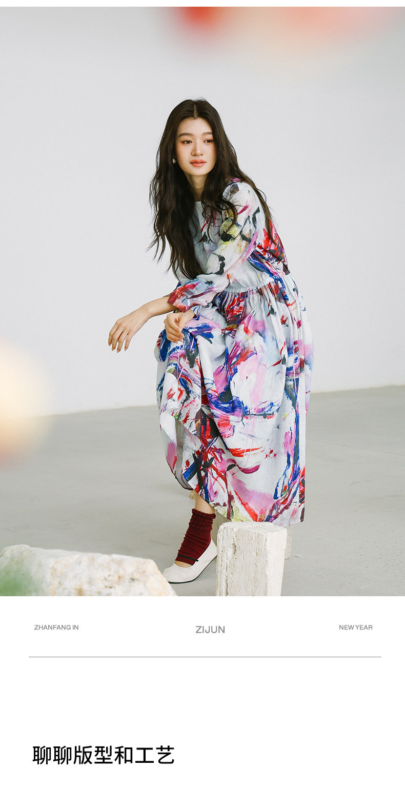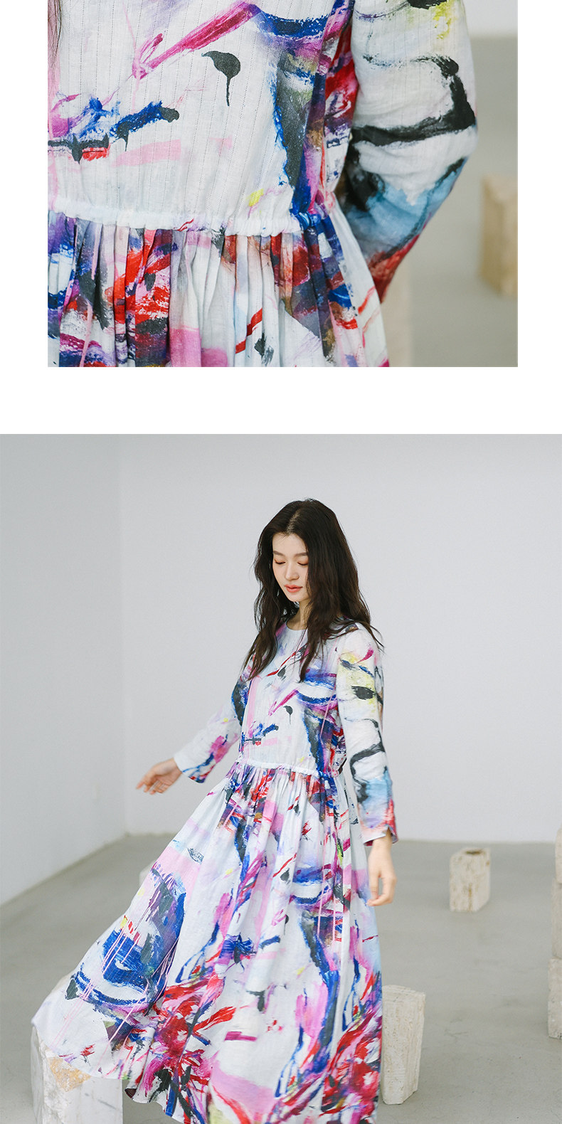绽放172朵/「余味-2」花仙子*zijun联名系列亚麻印花松紧腰连衣裙
