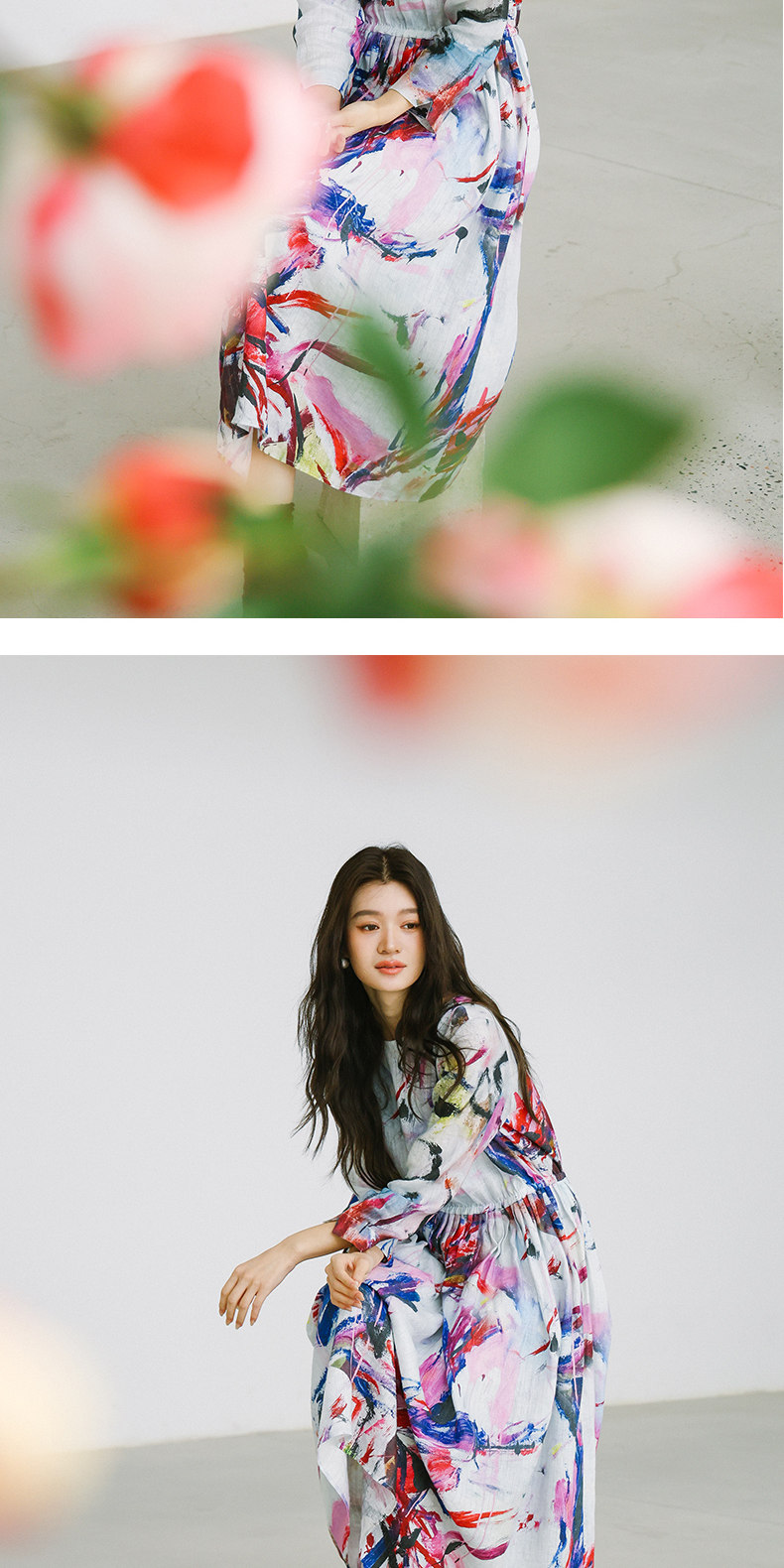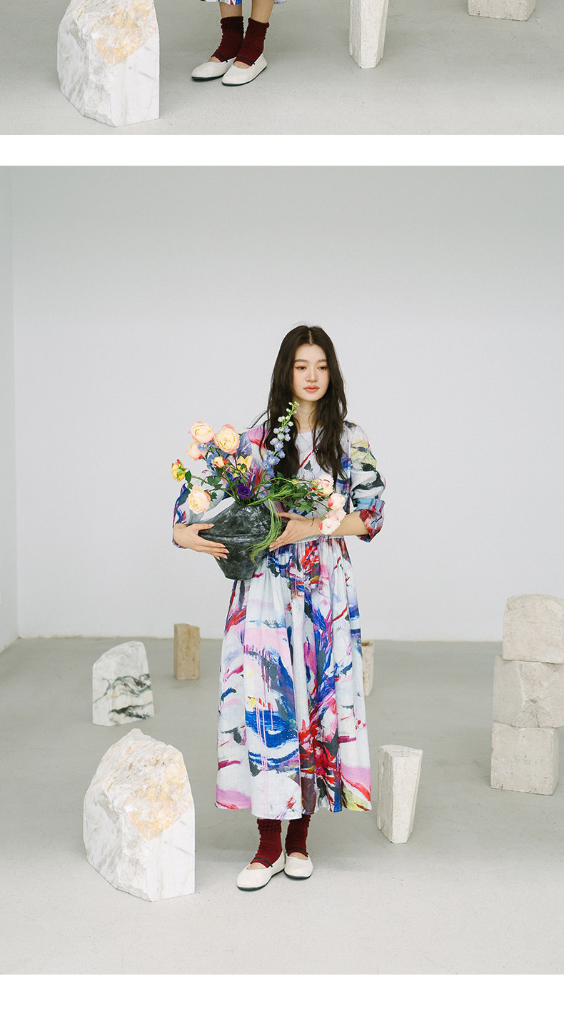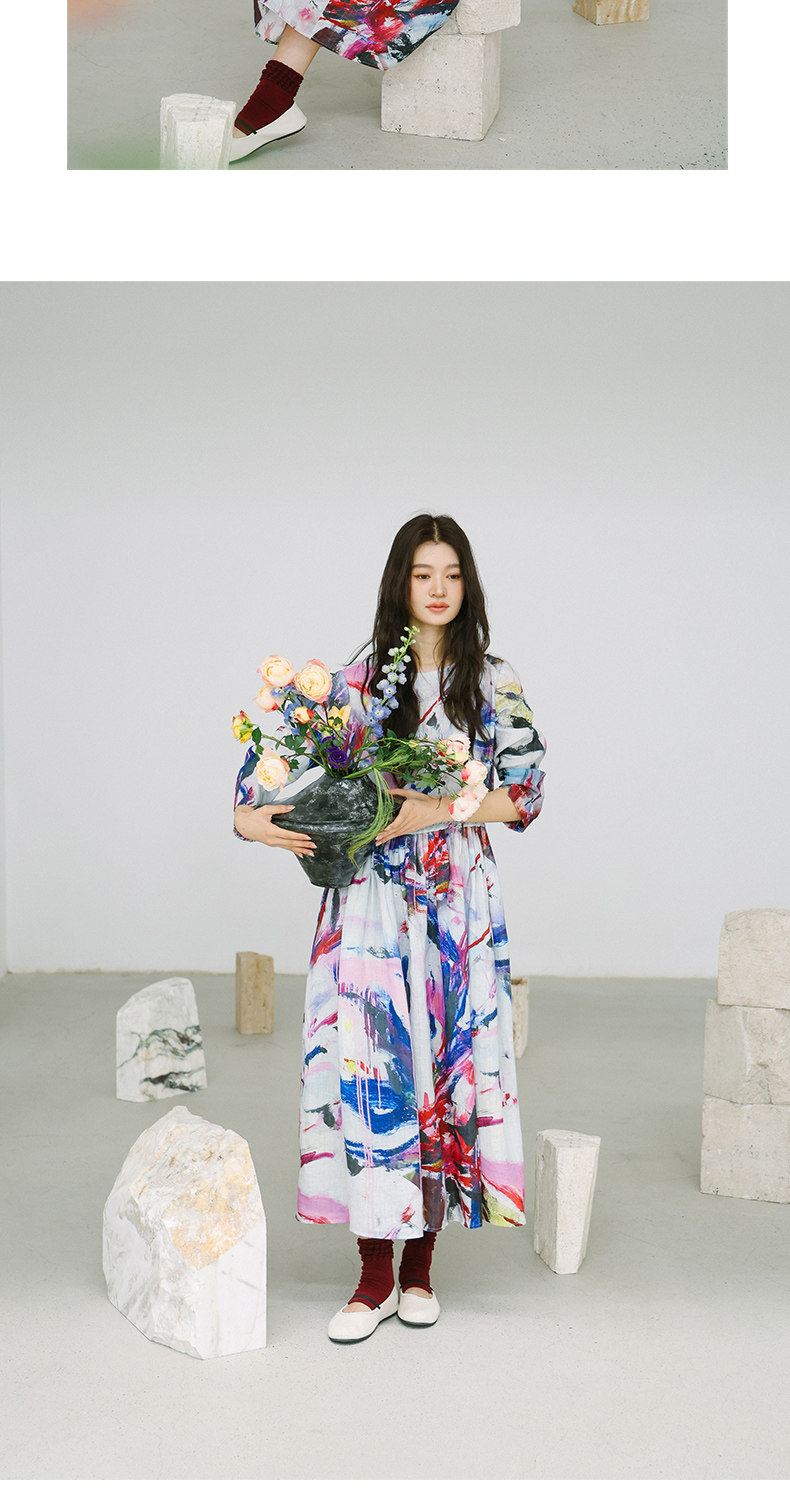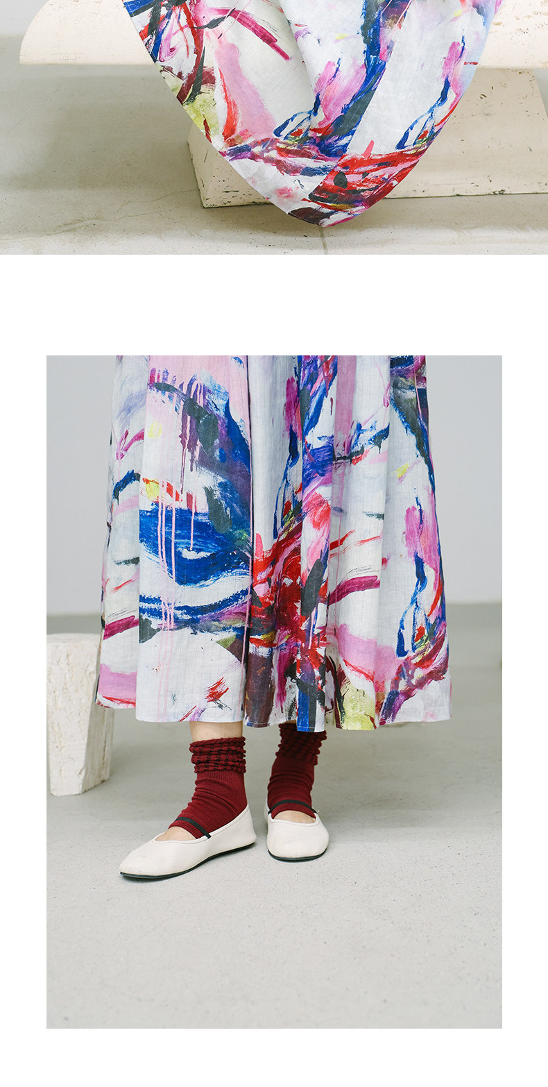 绽放172朵/「余味-2」花仙子*zijun联名系列亚麻印花松紧腰连衣裙