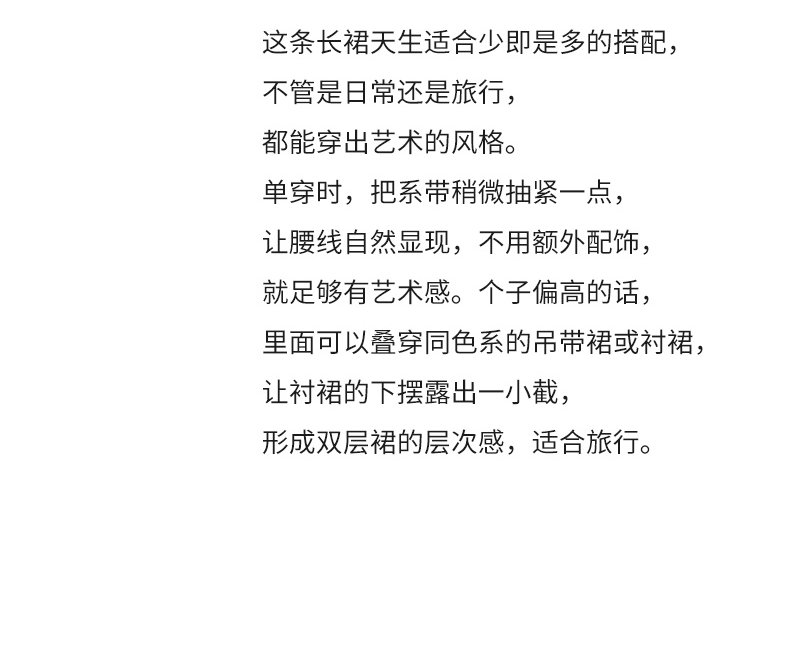 以天然亚麻为载体,融合热烈色彩与自在剪裁为身在城市、心怀远方的女性提供兼具美学与舒适的旅行着装