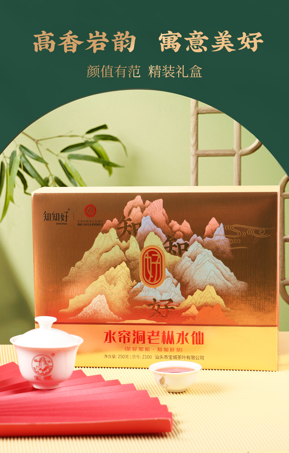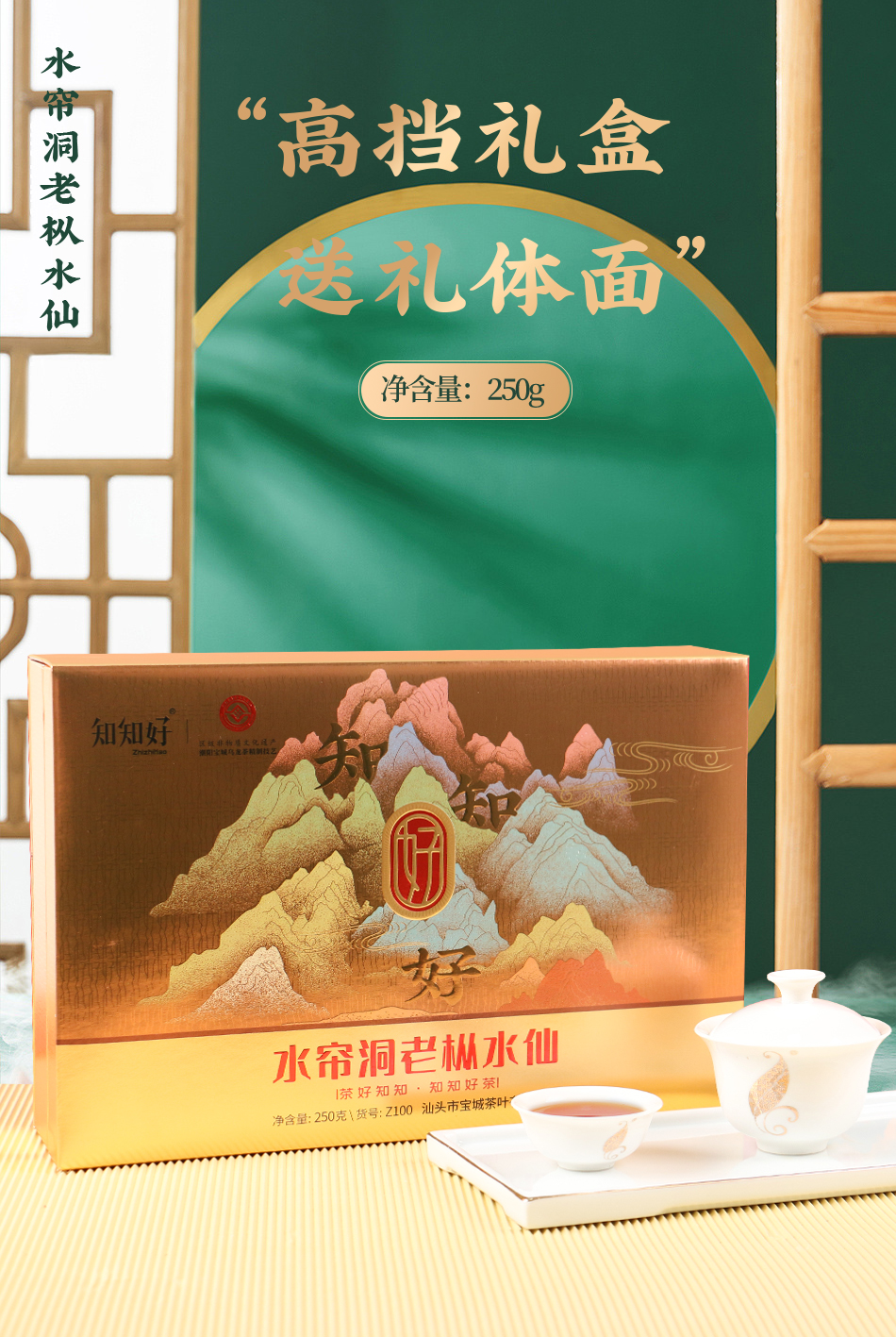 【新品上市,欢迎尝鲜】知知好Z100 水帘洞老枞水仙250克乌龙茶岩茶礼盒装