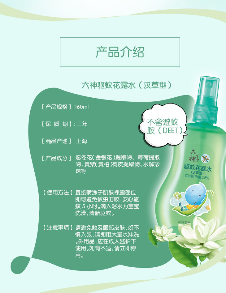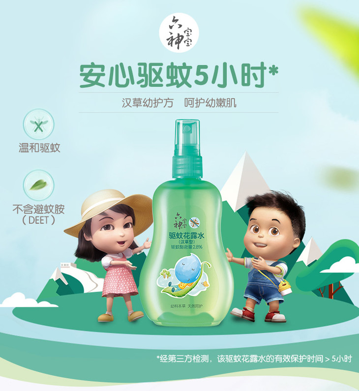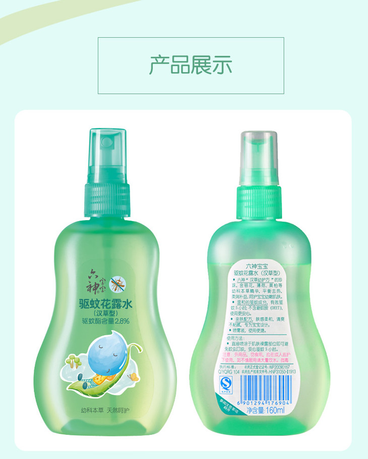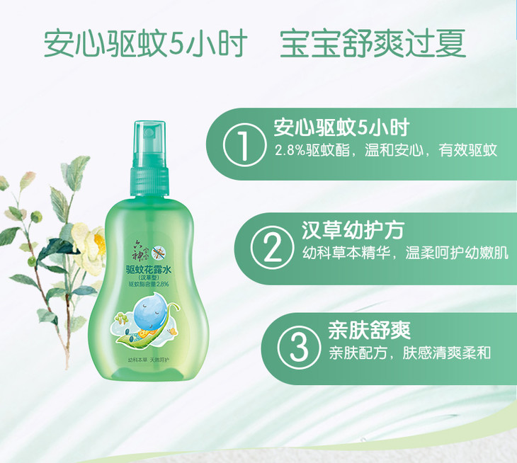 六神宝宝花露水汉草型驱蚊止痒儿童婴儿驱蚊液防蚊水160ml/瓶